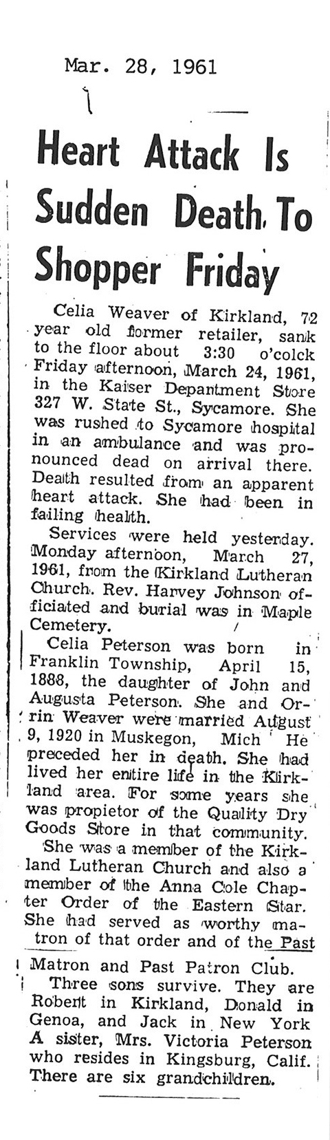 Deceased March 26, 1961