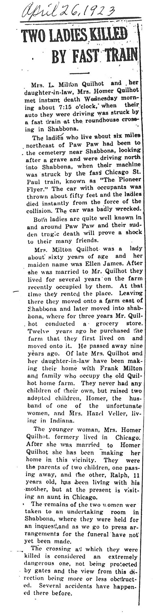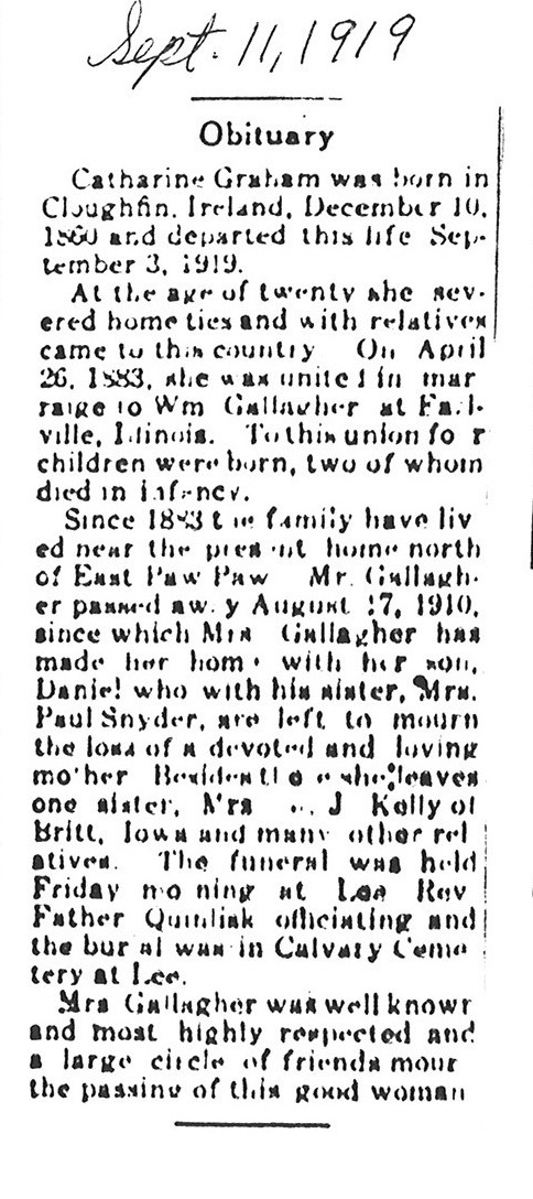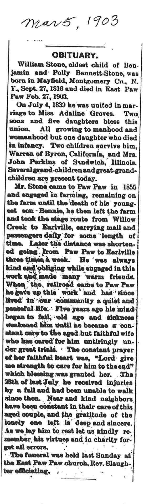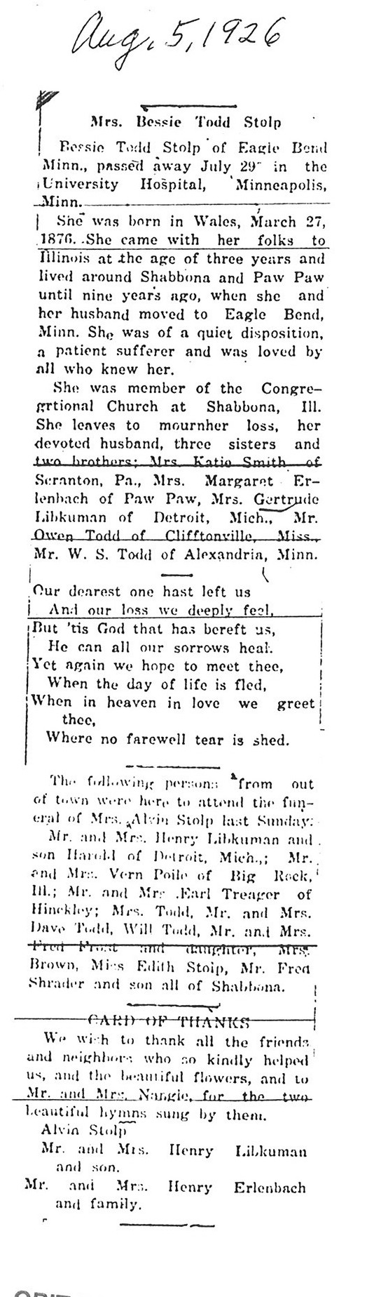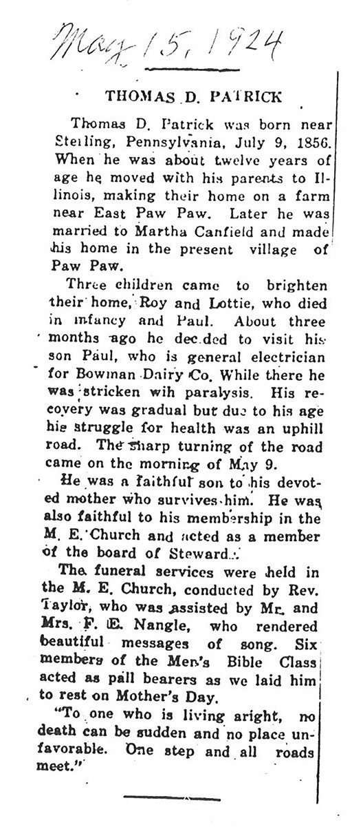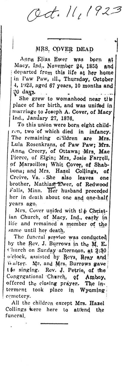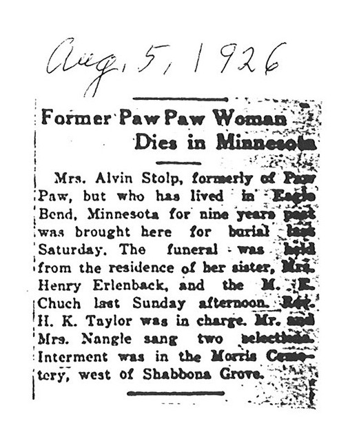 Buried in Wyoming Cemetery, Paw Paw, IL