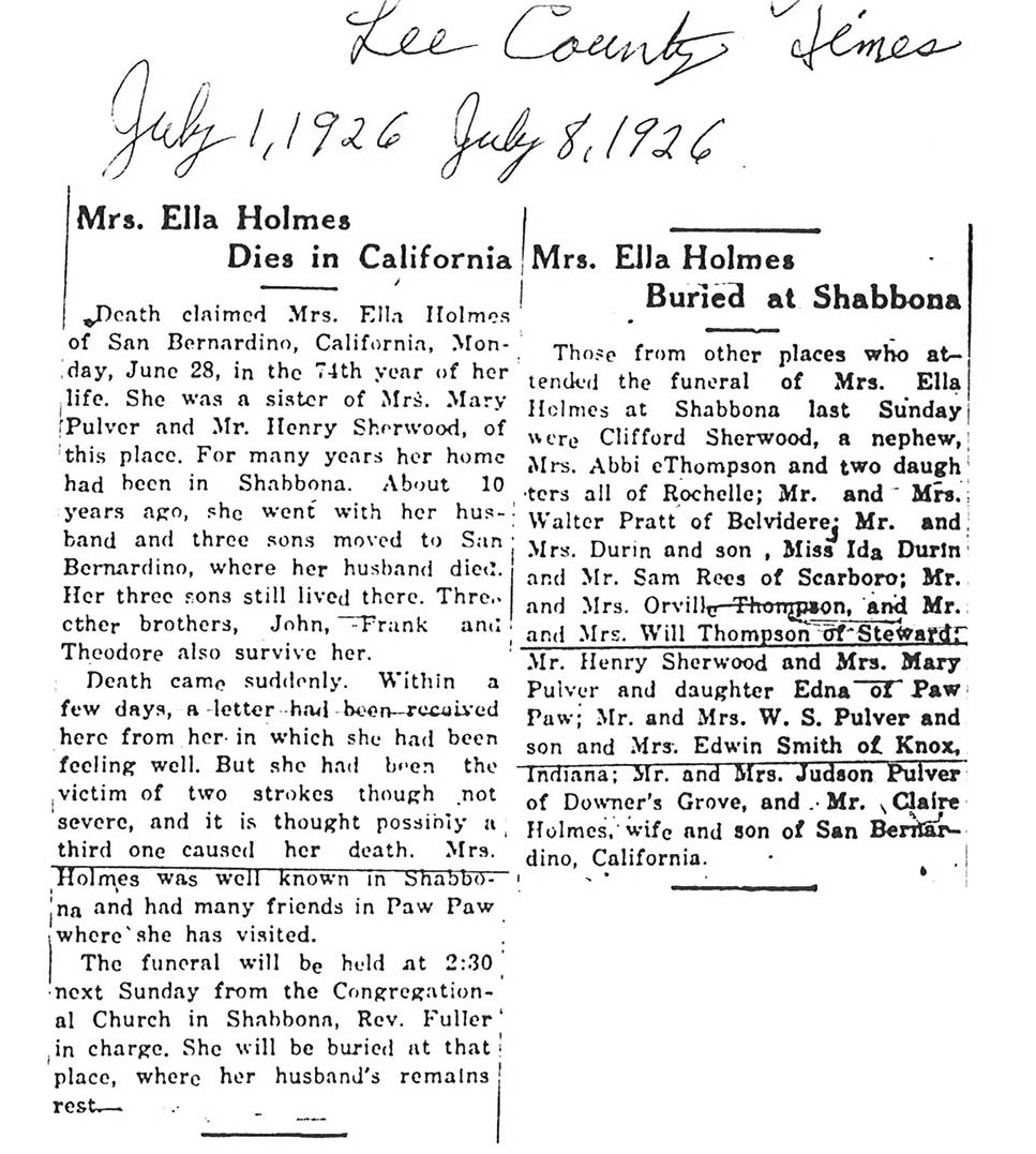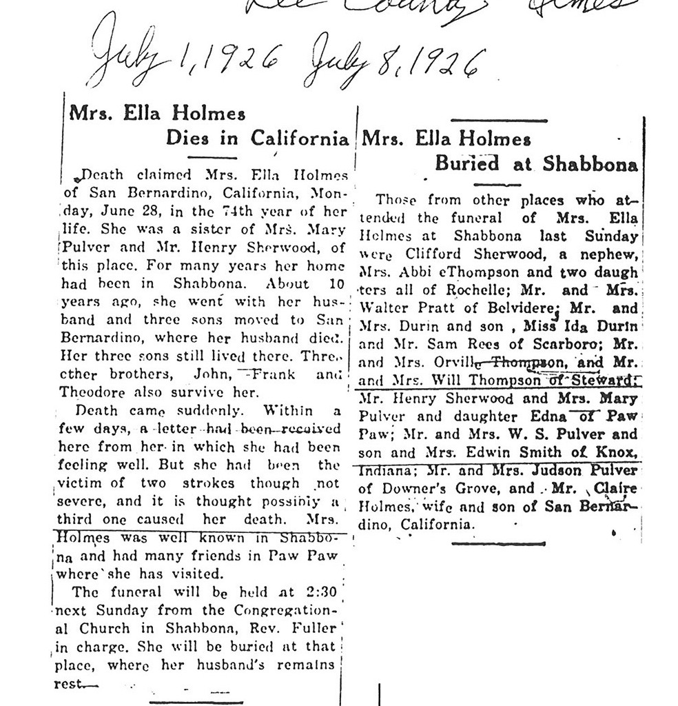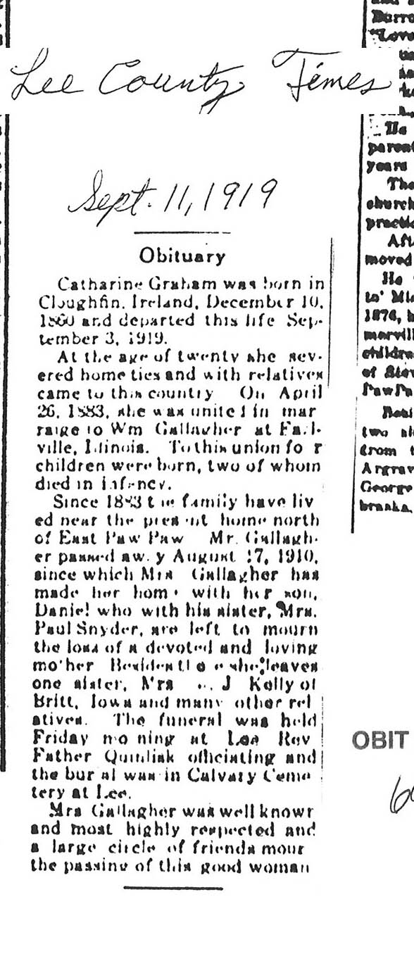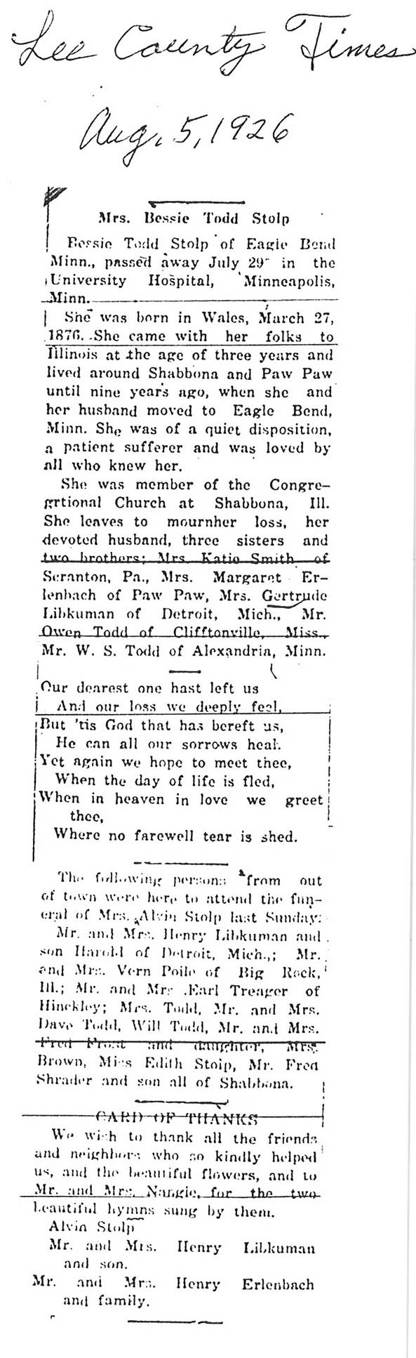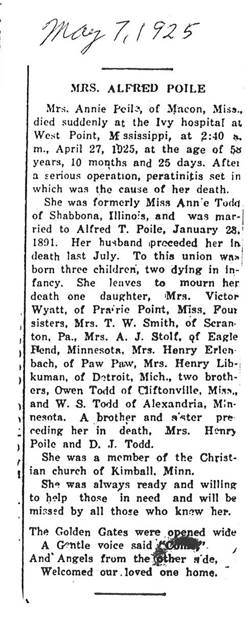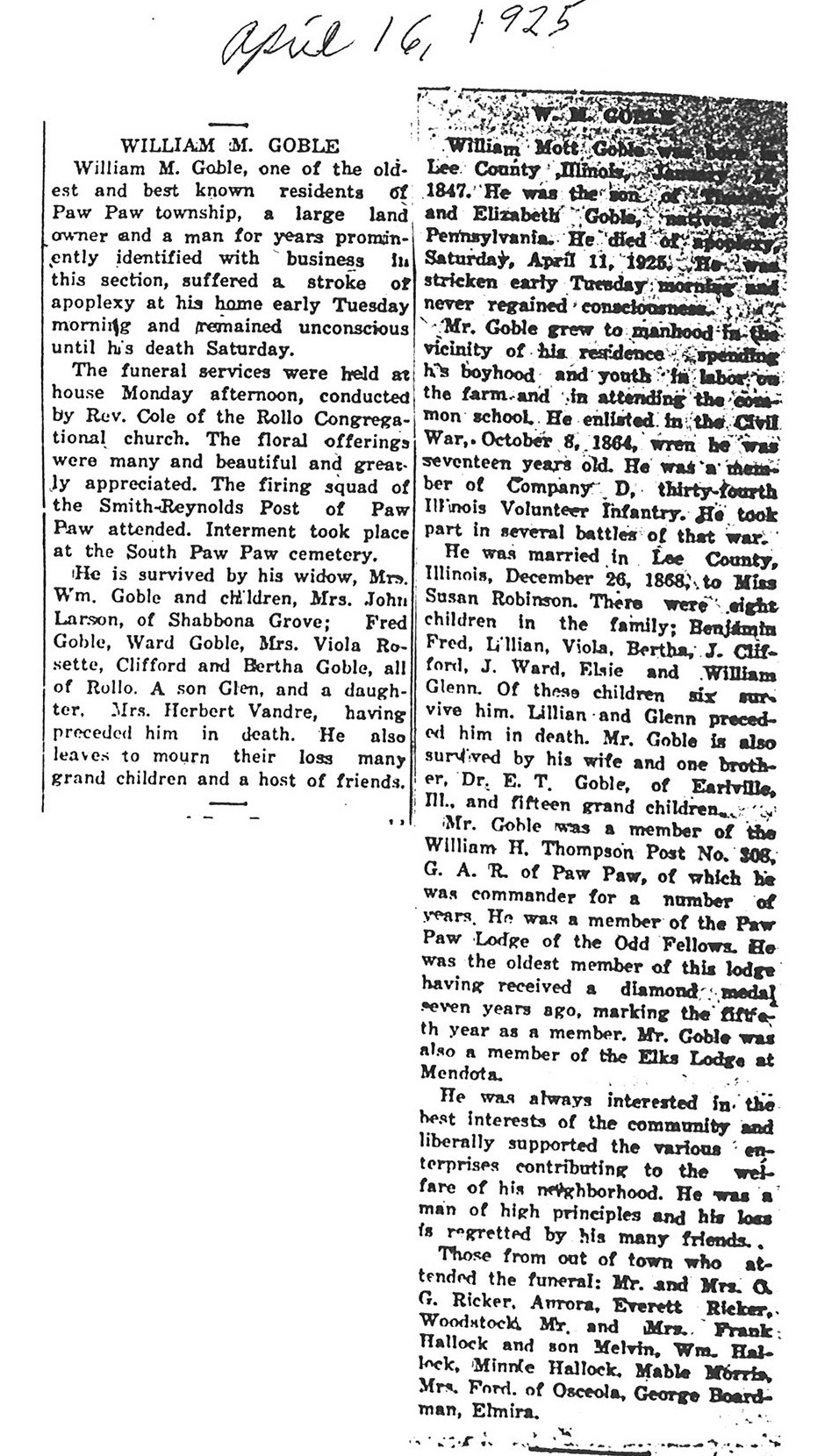 Buried in Wyoming Cemetery, Paw Paw, IL
