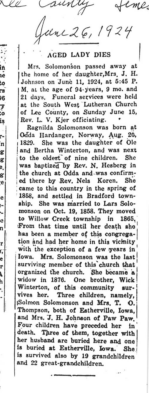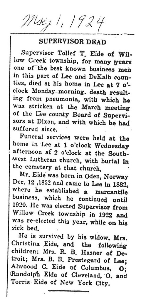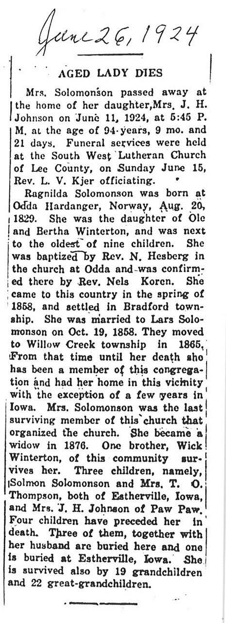 Buried in Southwest Luthern Cemetery - Lee, IL