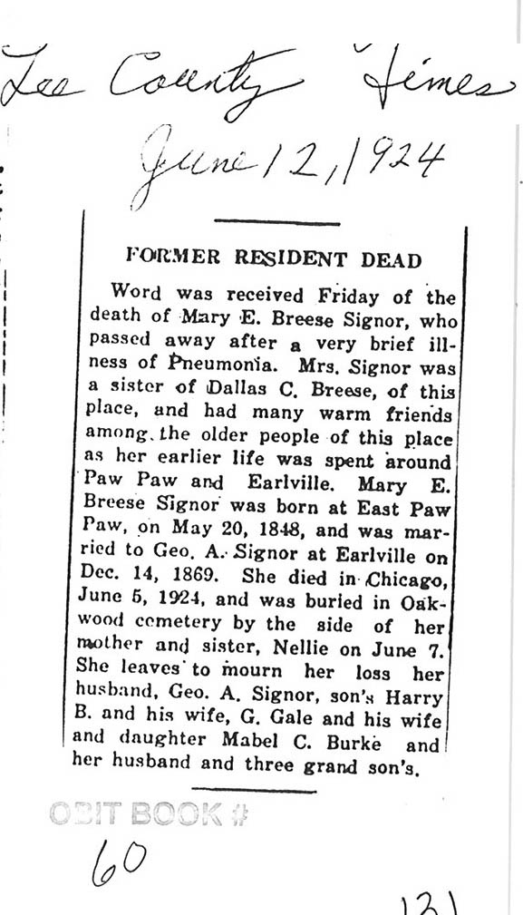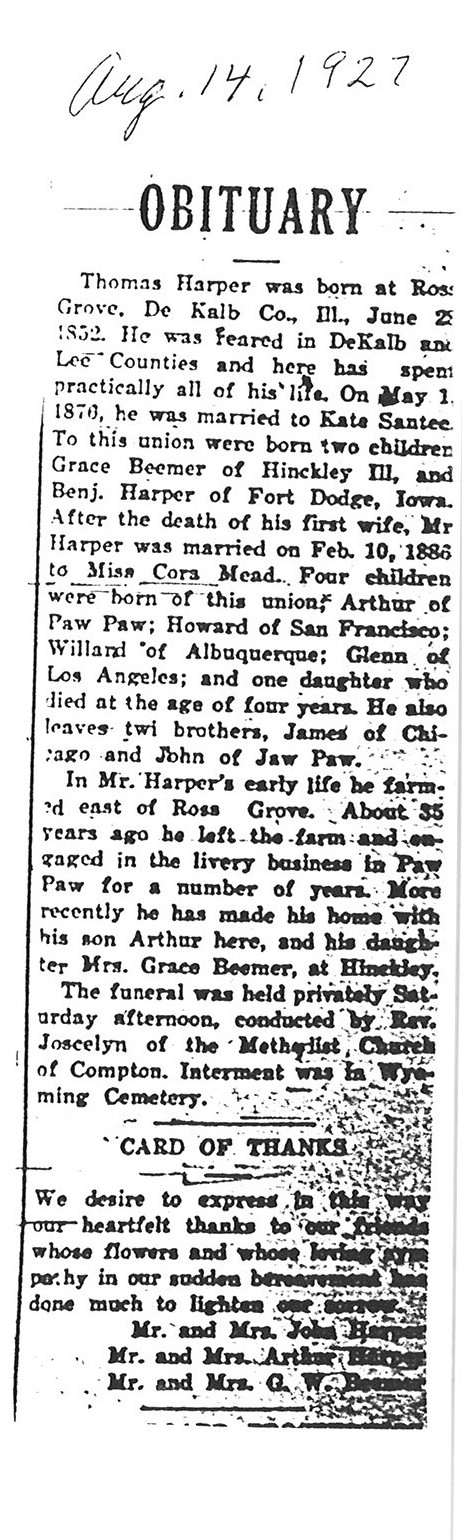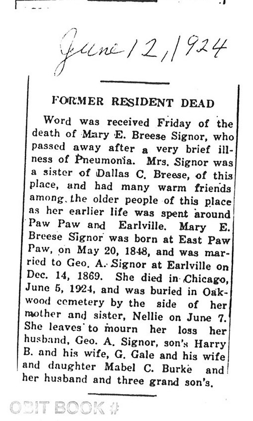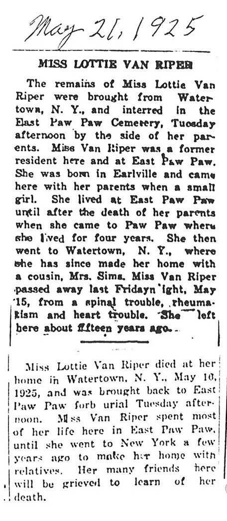 Buried in Wyoming Cemetery - Paw Paw, IL