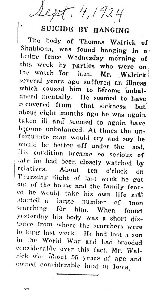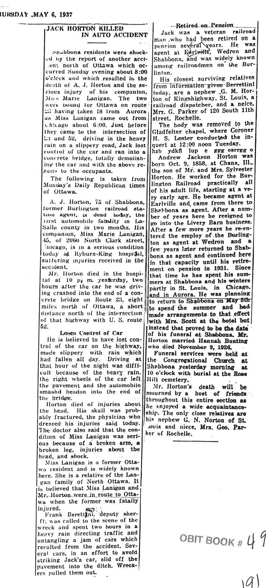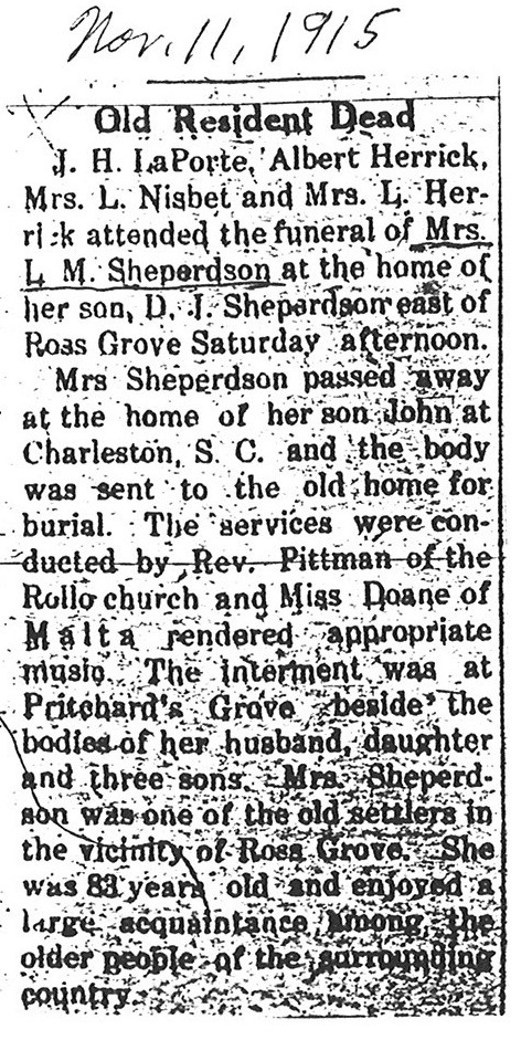 Buried in Morris Cemetery - Shabbona Grove, IL