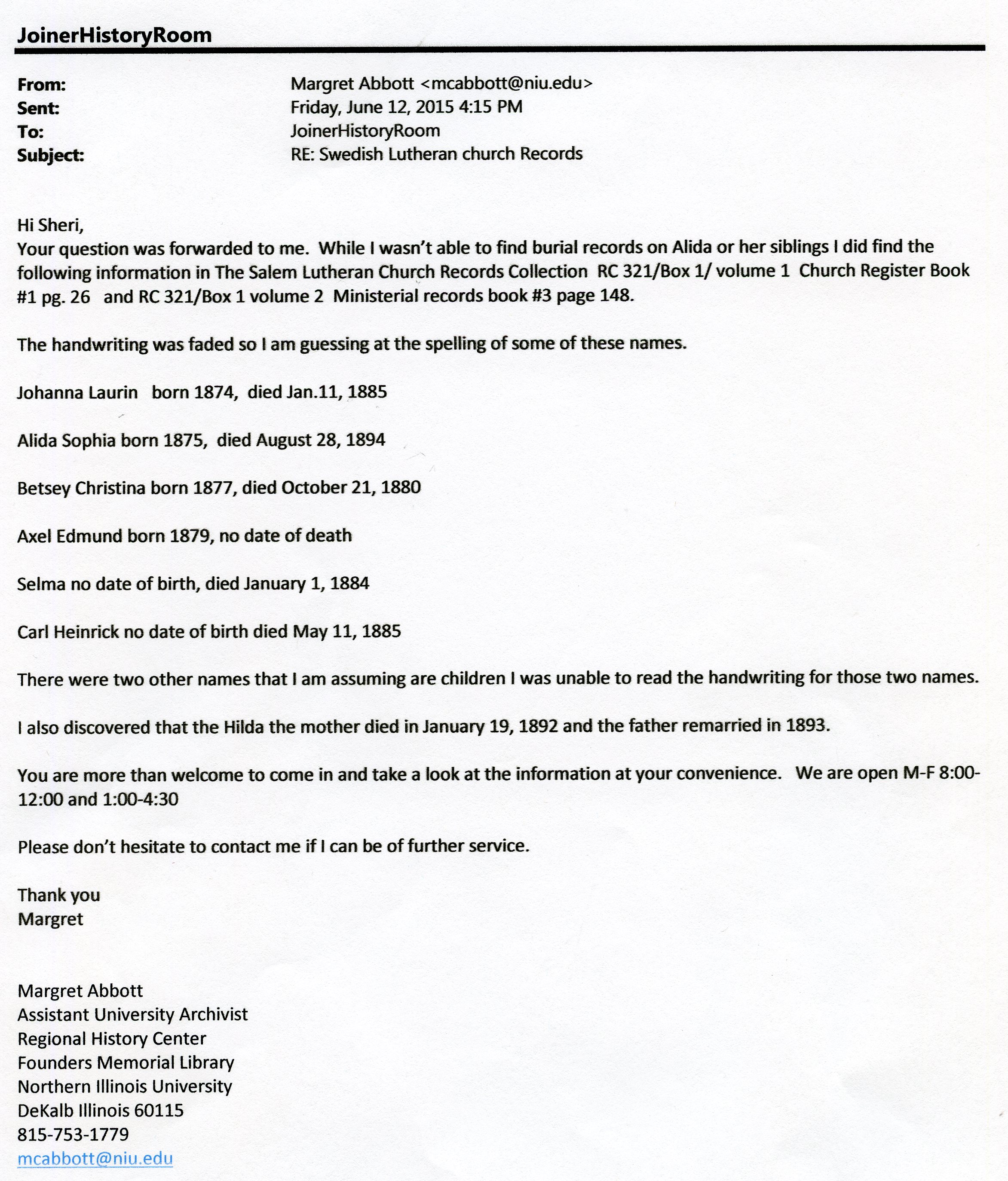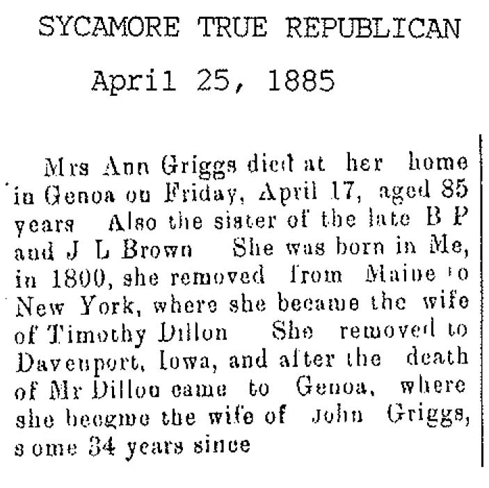 No date of birth Buried in Sycamore, IL