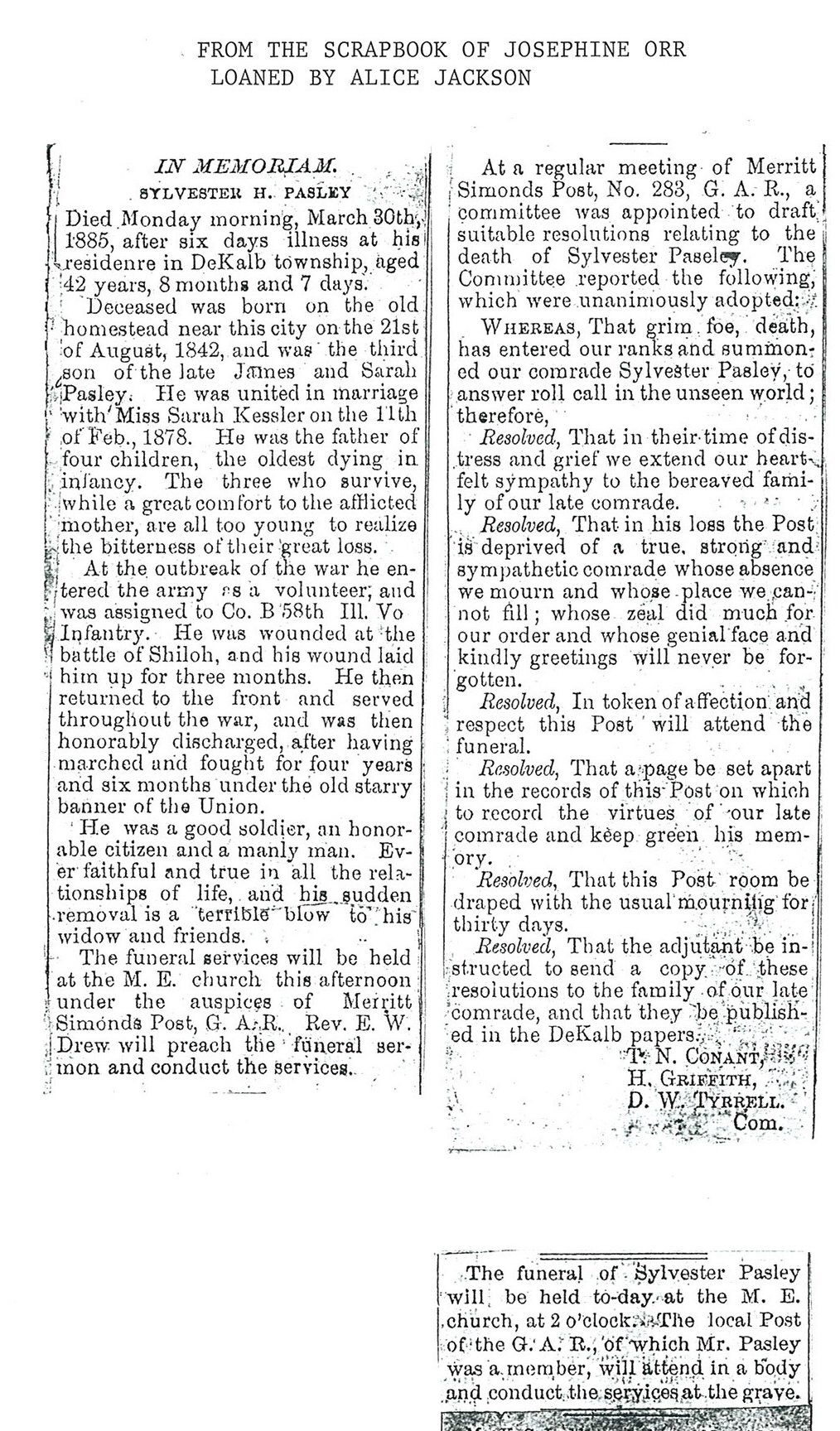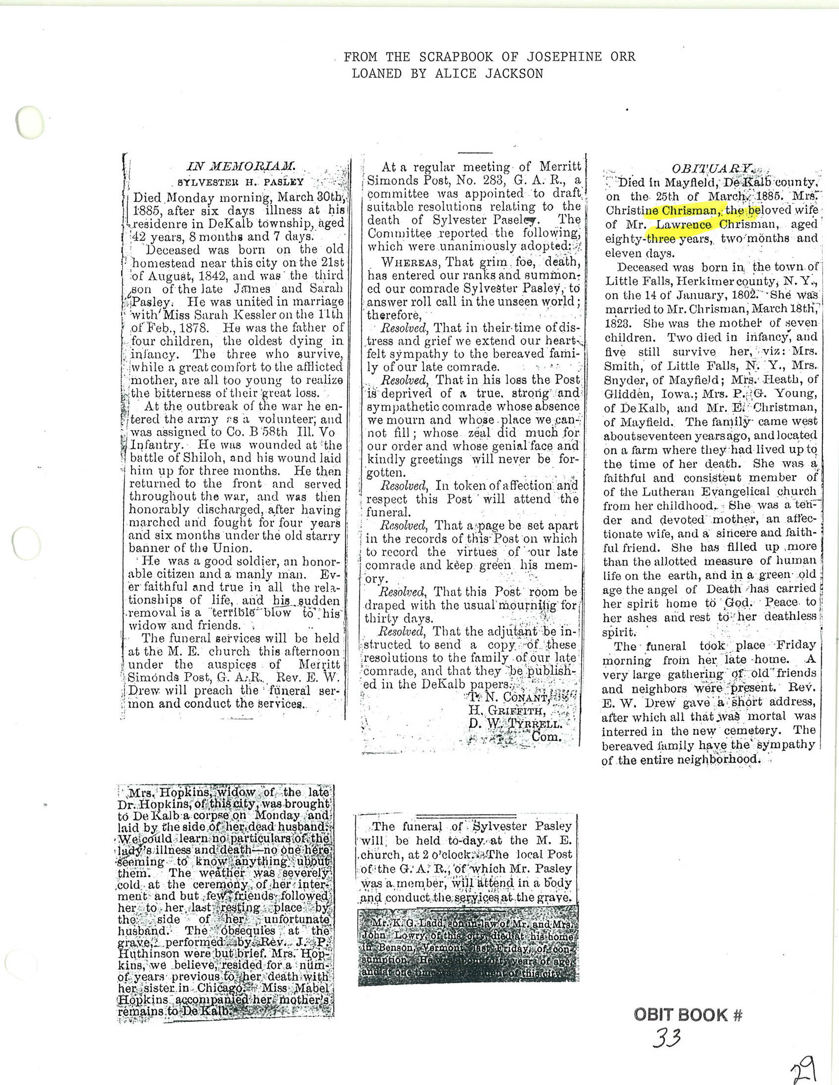 Last name spelled differnt in obit = Chrisman