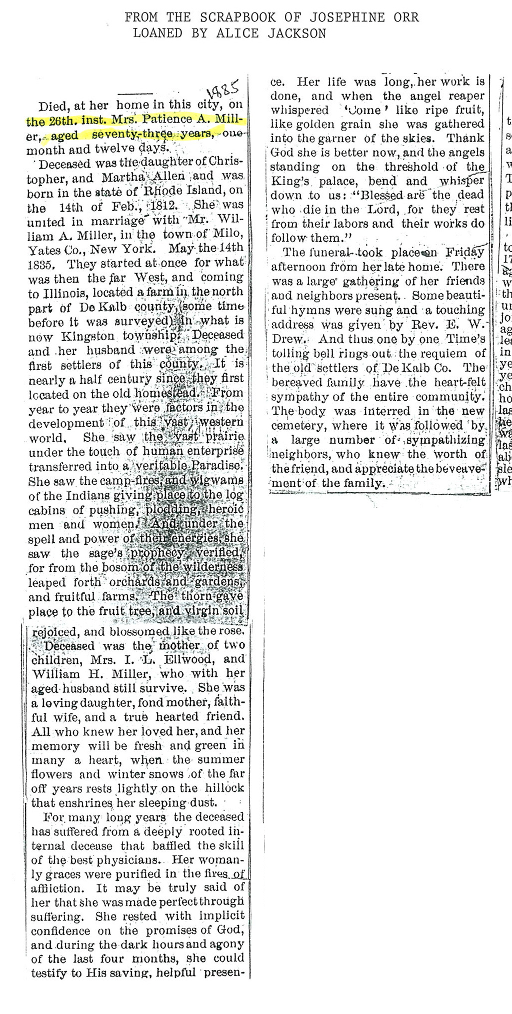 DOB given in obit does not compute with other life event dates born 1885-married 1841?