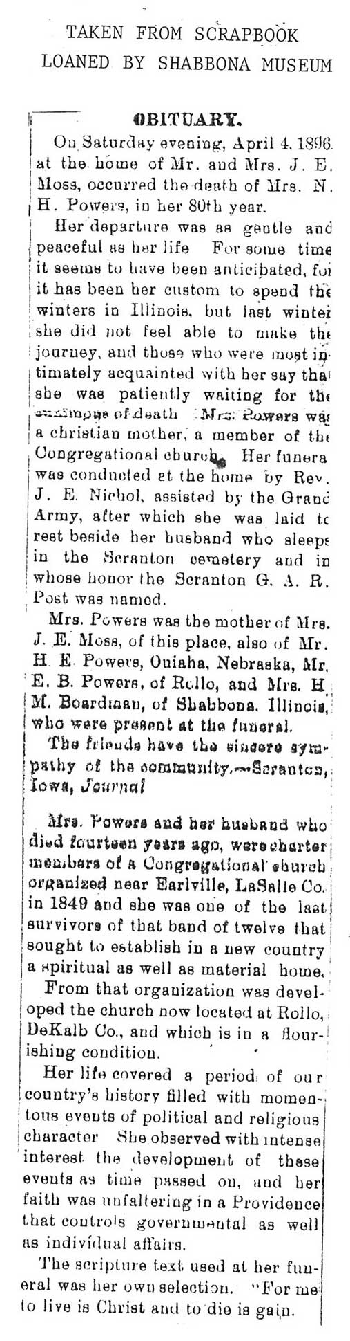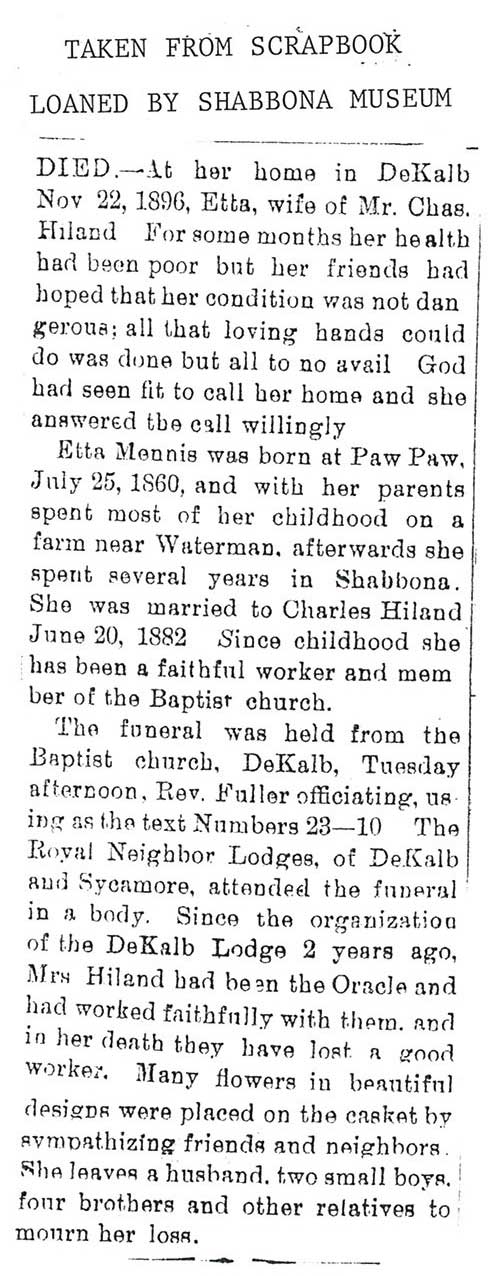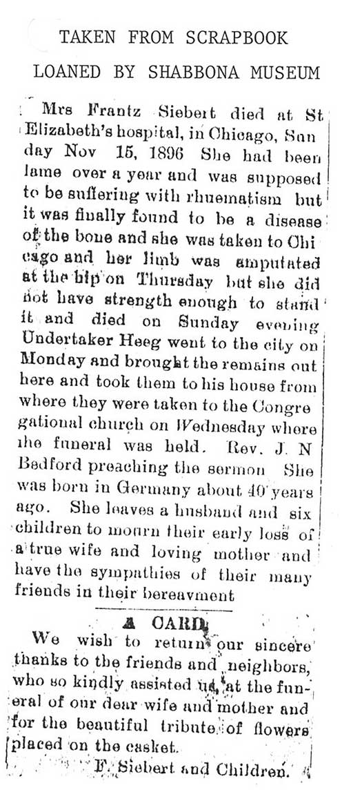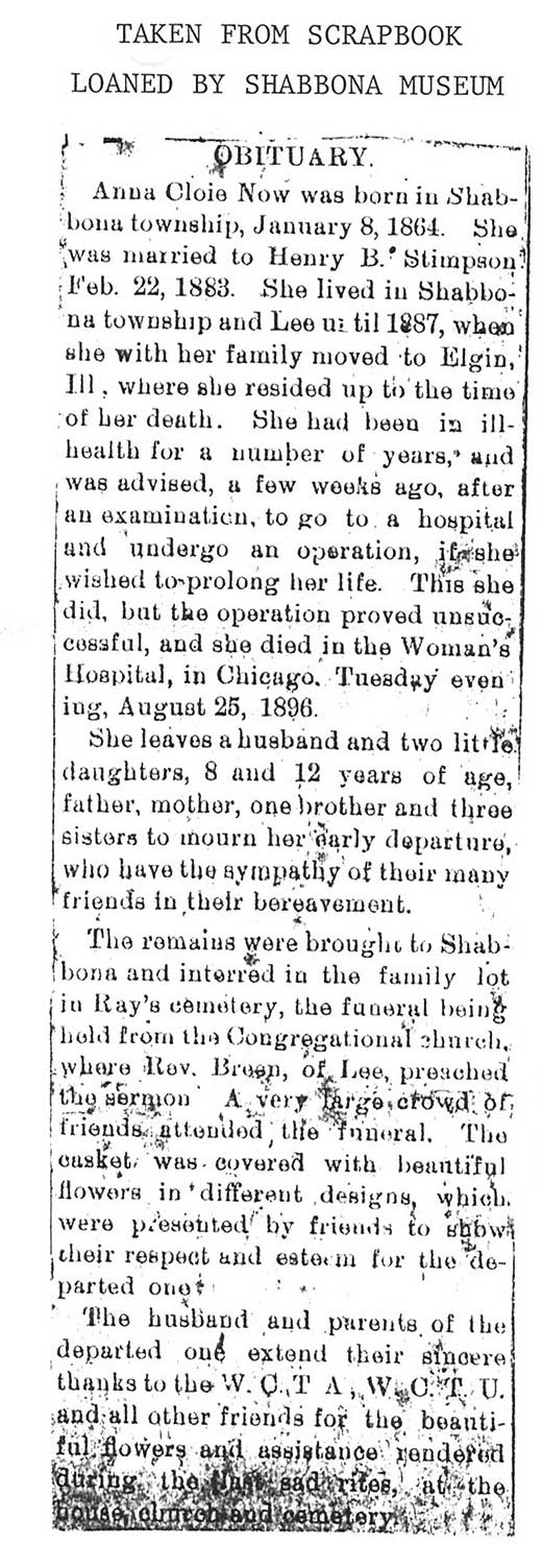 Maiden name - Cloie Buried in Shabbona, IL