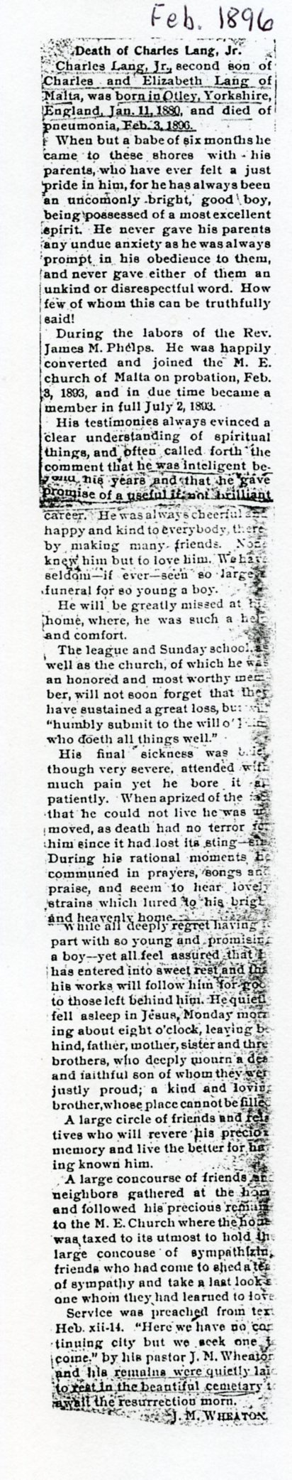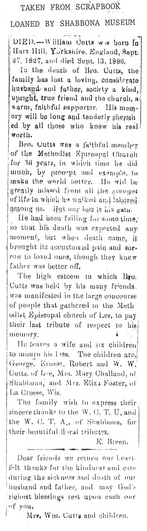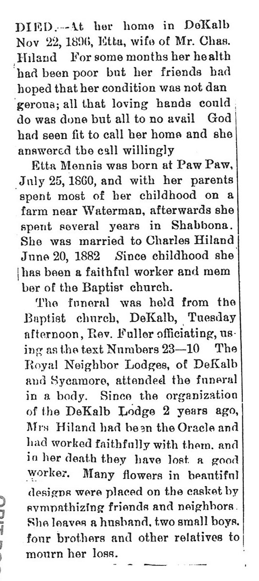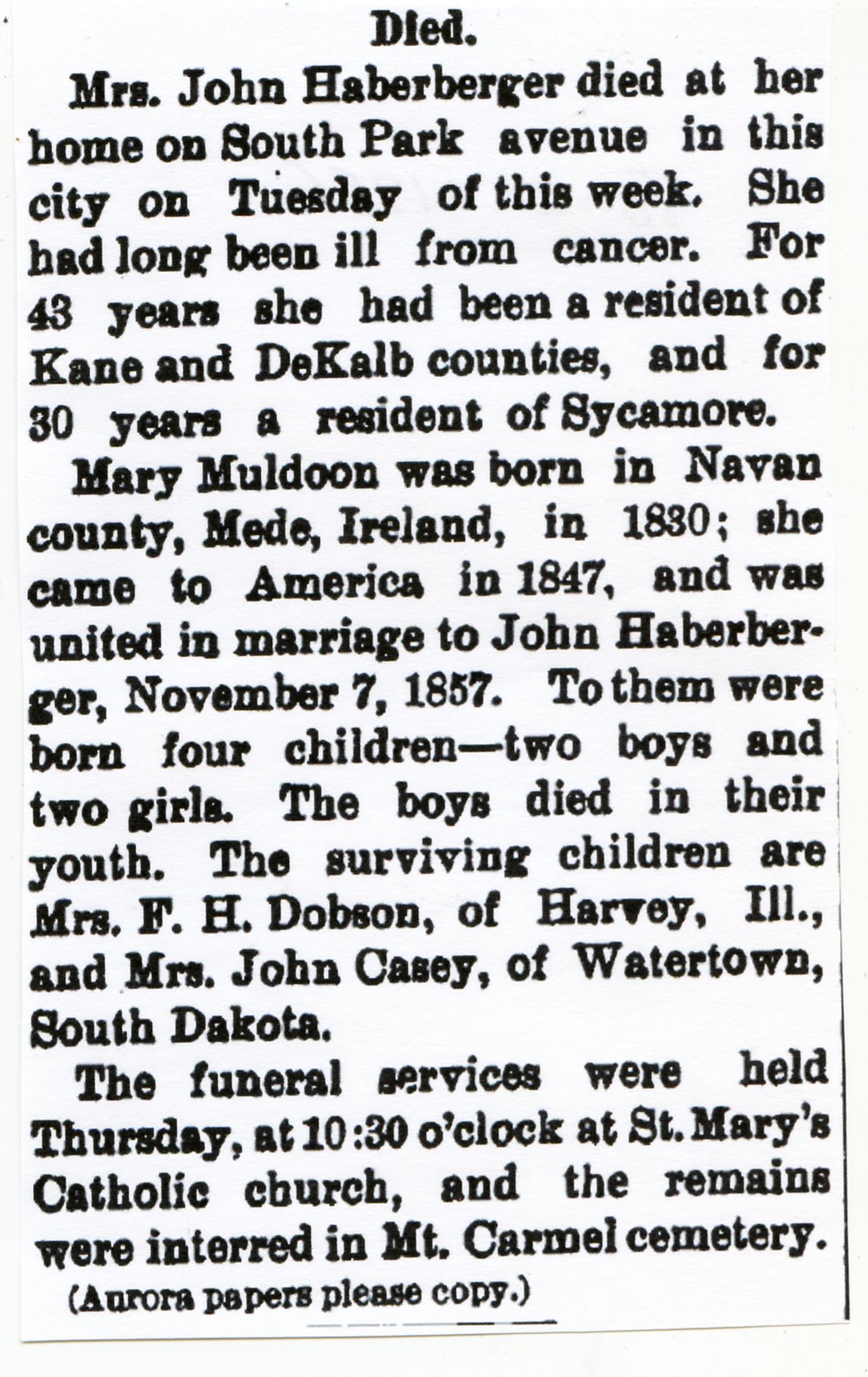 No date of birth Buried in St. James Calvary Cemetery - Lee, IL