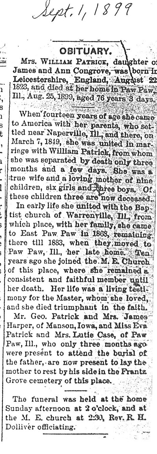 Maiden name Congrove Buried in Frantz Grove Cemetery