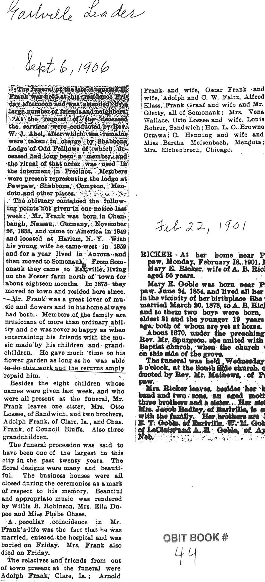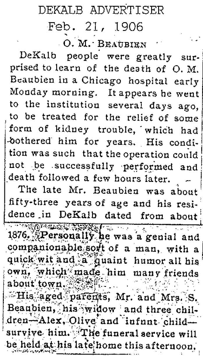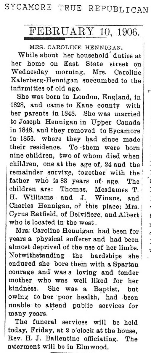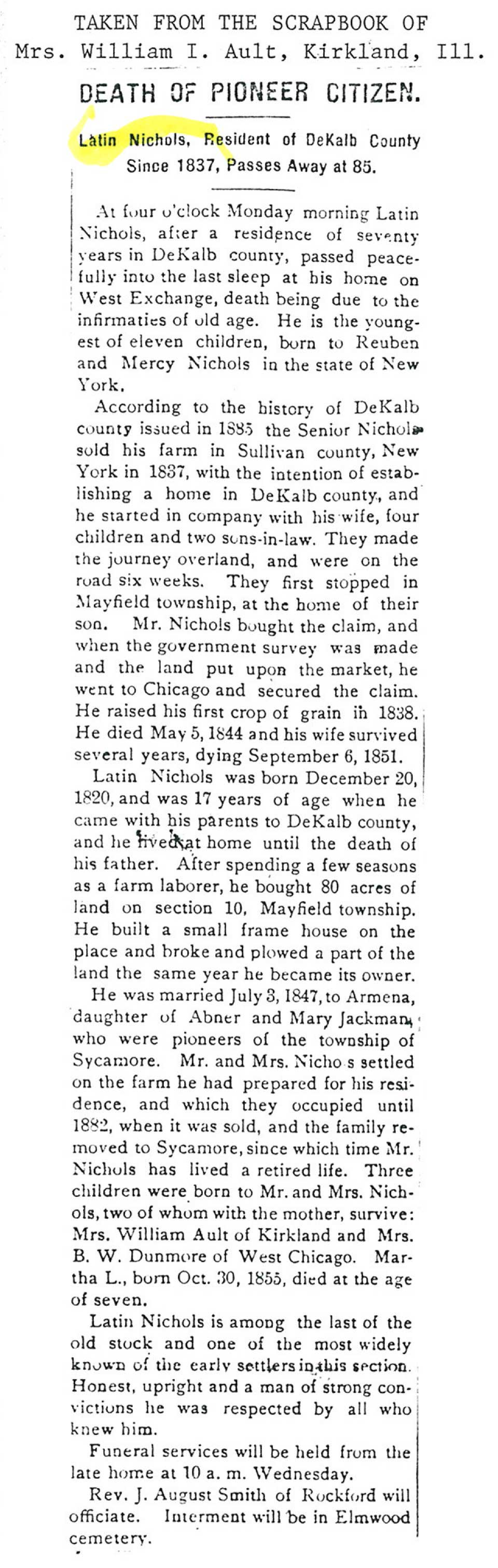 DOB 20 December 1820 One obit = Latin One obit = Elmwood Cemetery