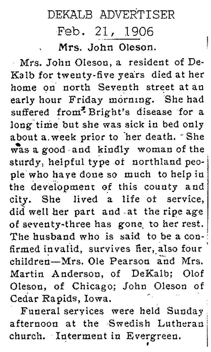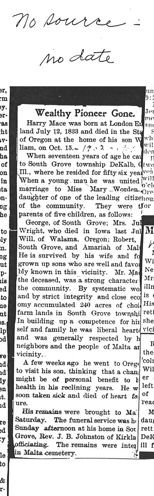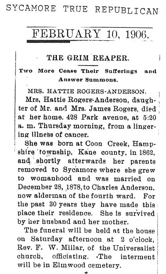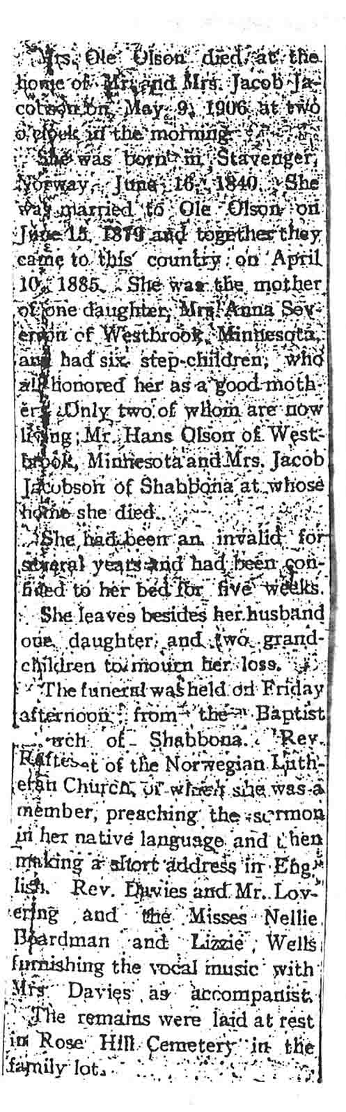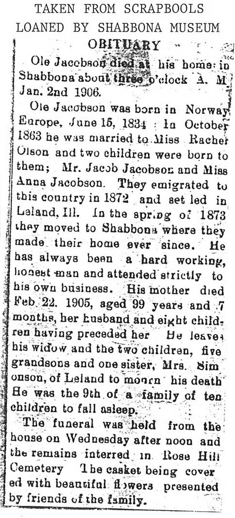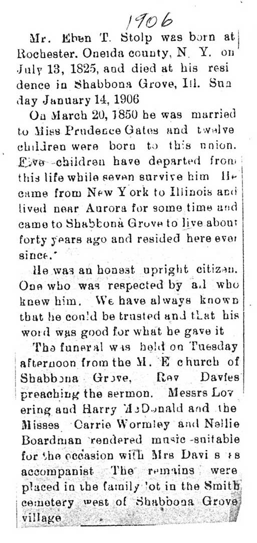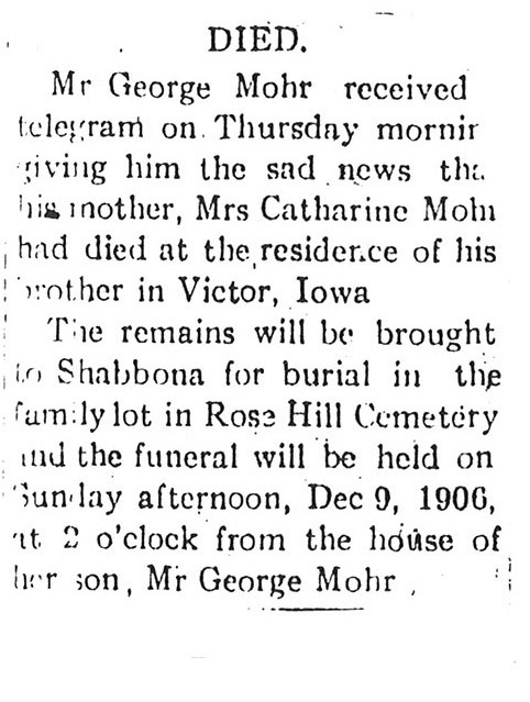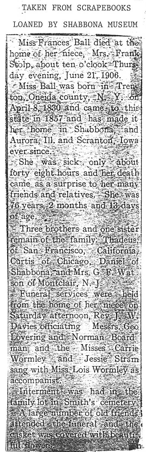 Buried in Smith Cemetery - Shabbona Grove, IL