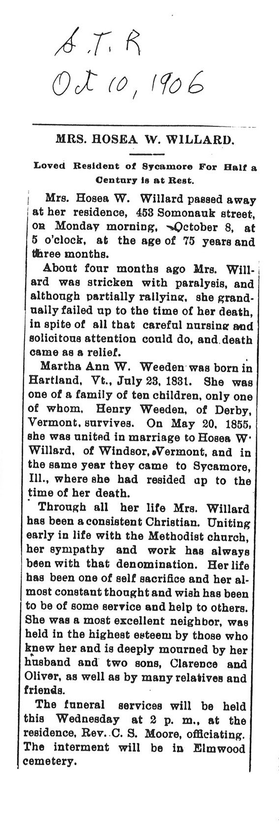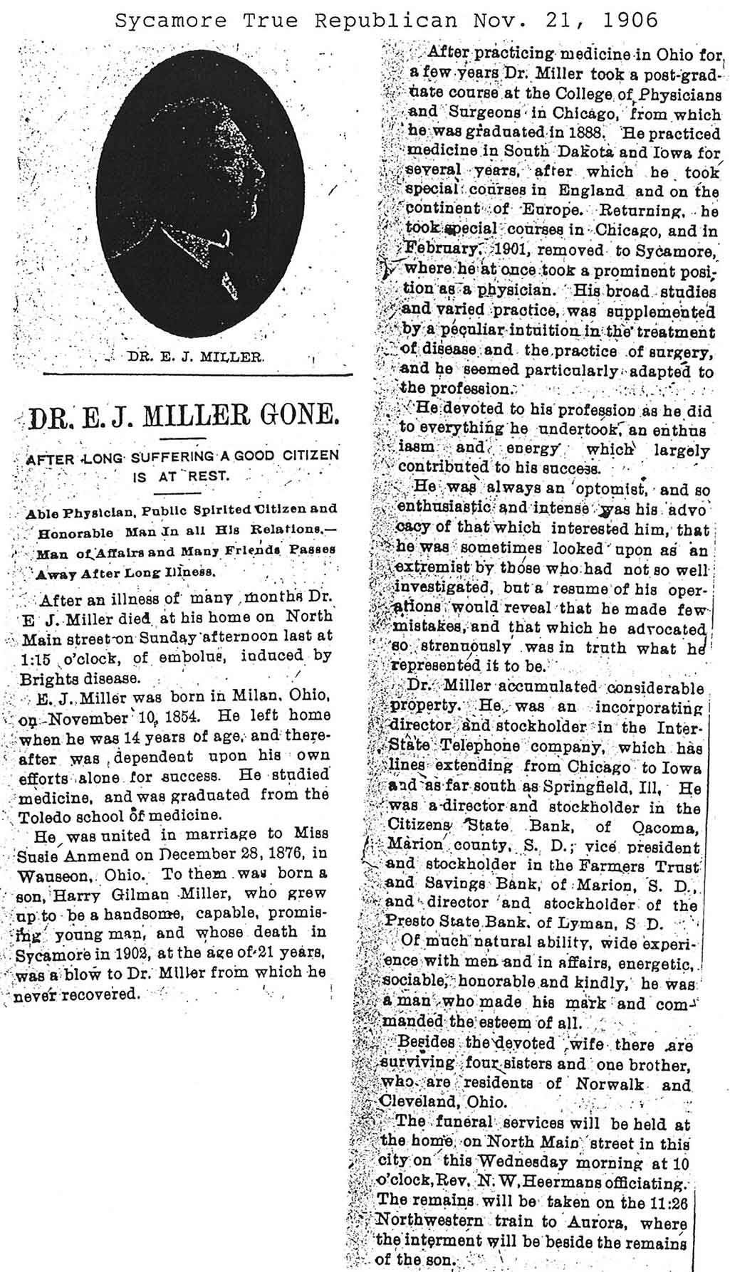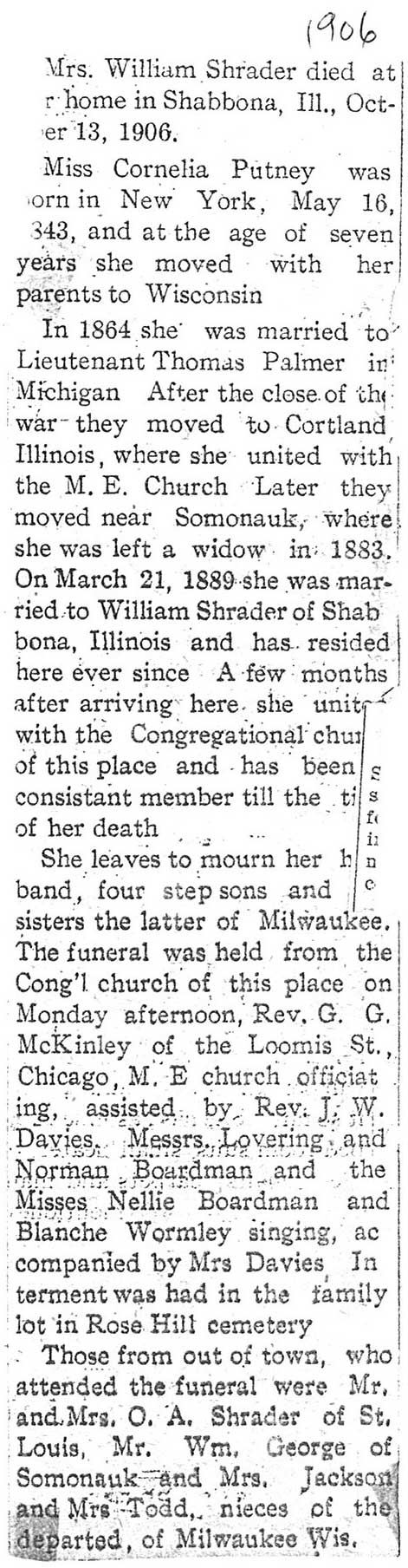 There is a handwritten date above the obituary that says the paper was from 12/01/1906 if this is the correct date of the paper the obit does not give a date of death so seeing he passed away on the Thursday before that would make it 11/29/1906. The obit also only gives the year and month of his birth.