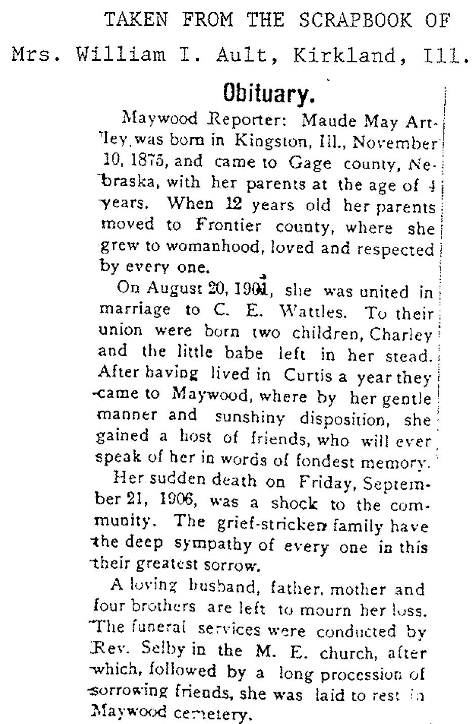 Buried in Wyoming Cemetery, IL