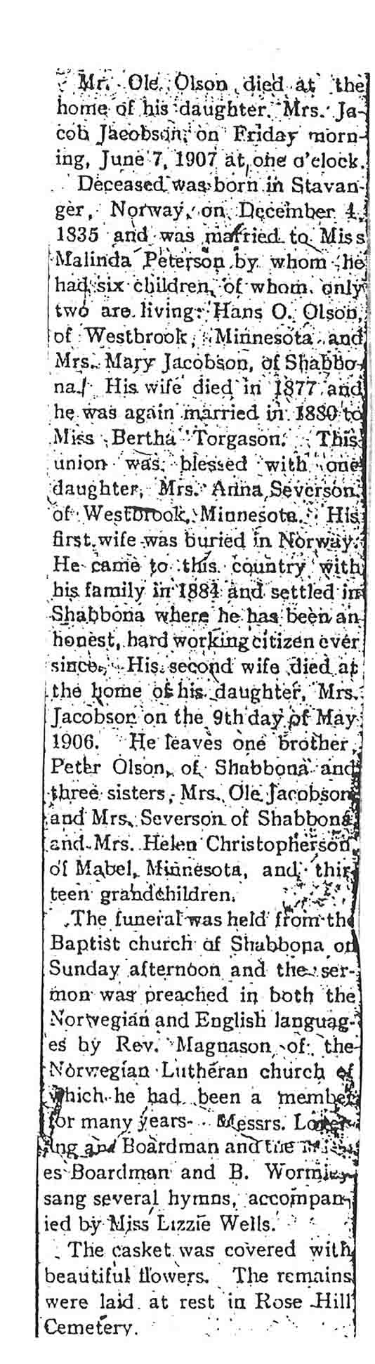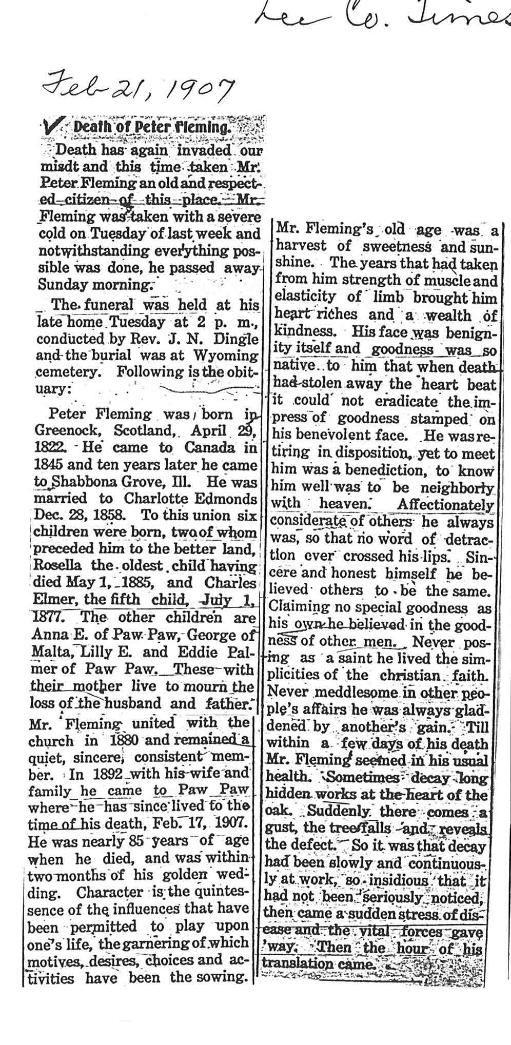 Buried in Wyoming Cemetery - Paw Paw, IL