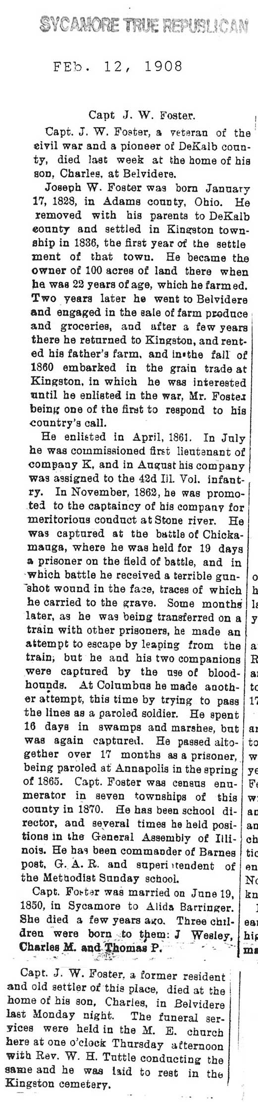 Civil War, 8th Illinois Cavalry, 1861-62. Discharged on account of inflammatory rheumatism.
