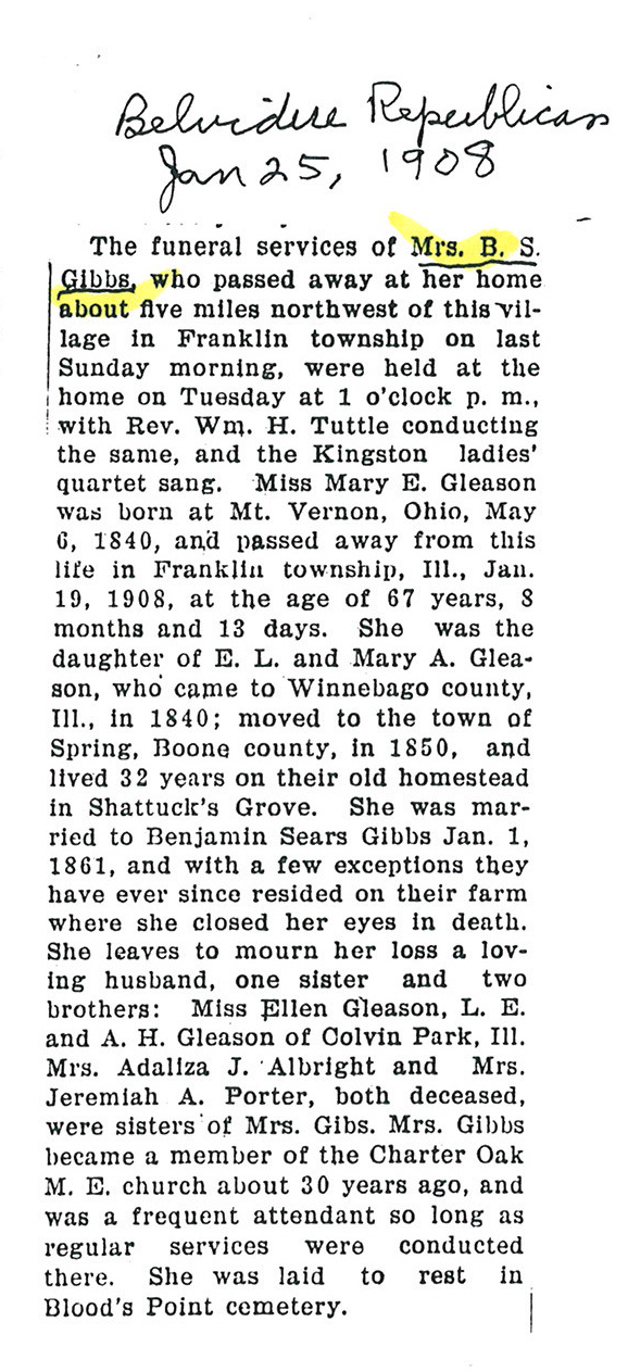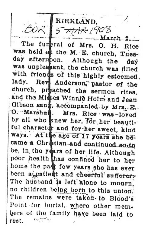 buried in Blood's Point Cemetery
