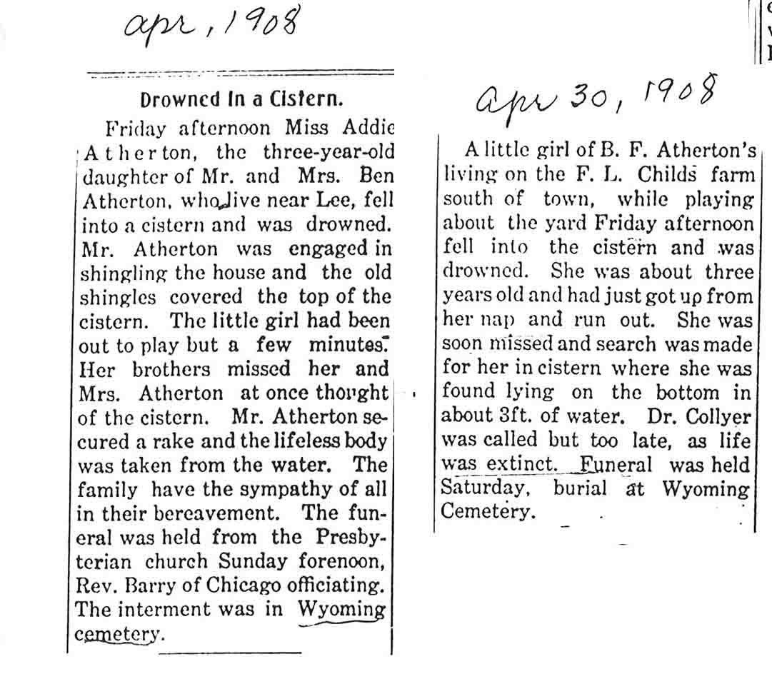 3 y.o. buried in Wyoming Cemetery, IL
