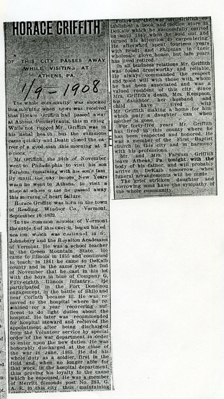 Civil War, 105th Illinois Volunteer Infantry, 1862-?. Discharged at Gallatin, TN.