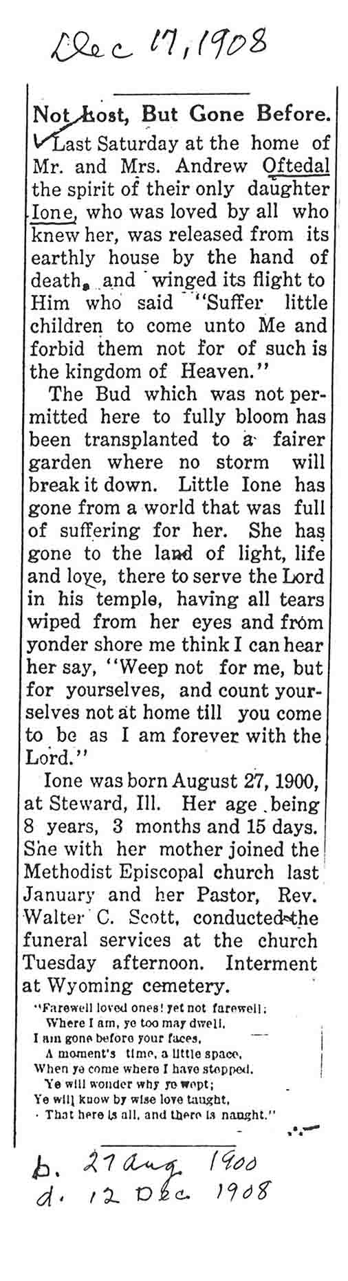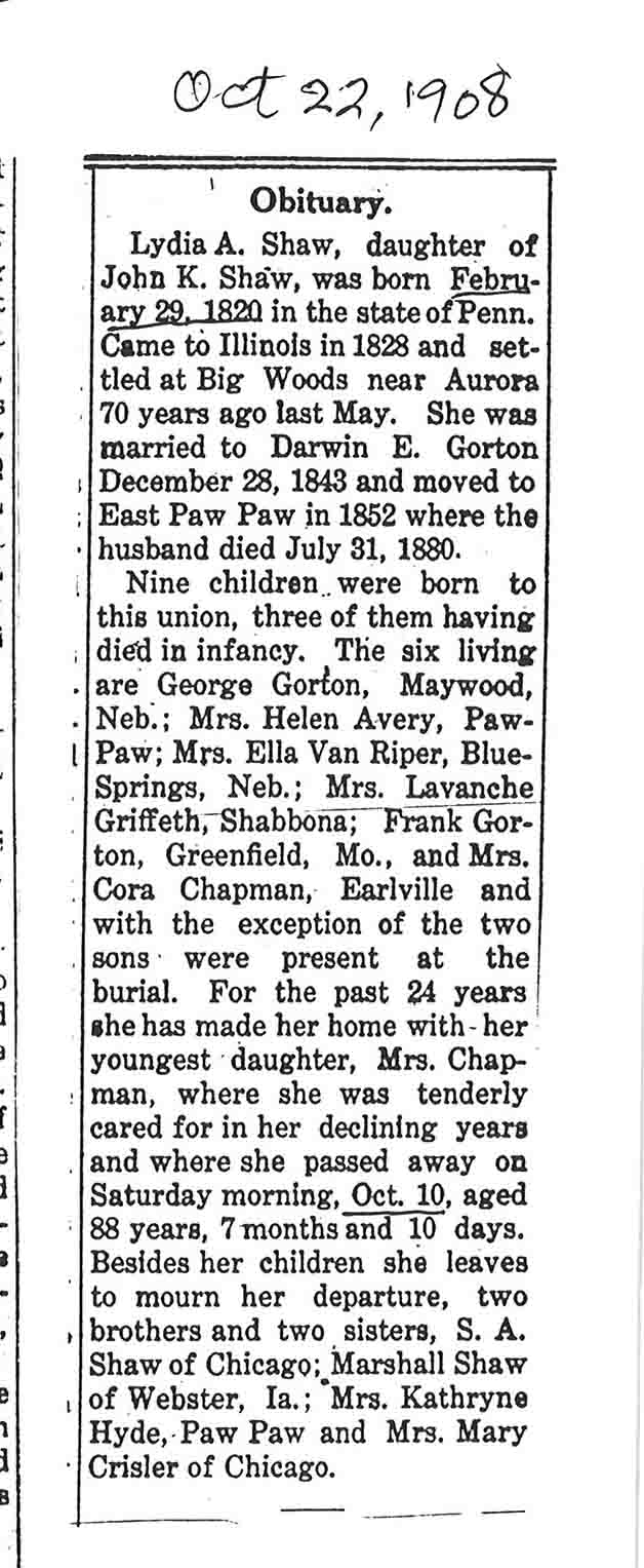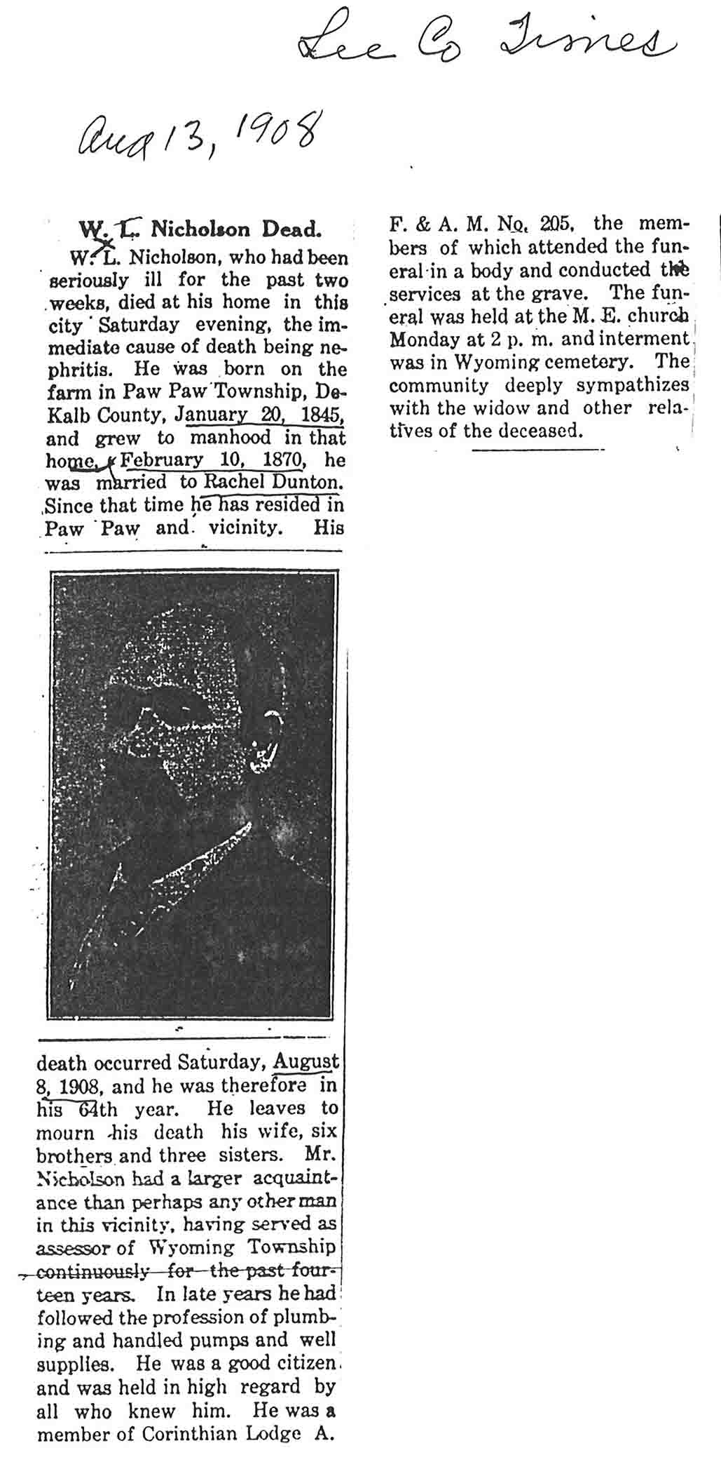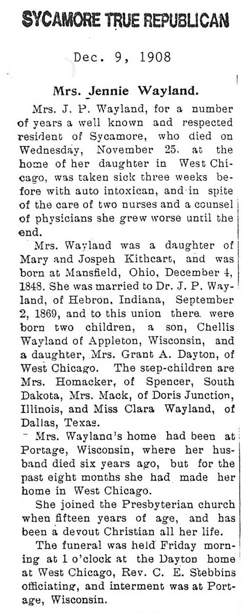 Buried in Wyoming Cemetery - Paw Paw, IL