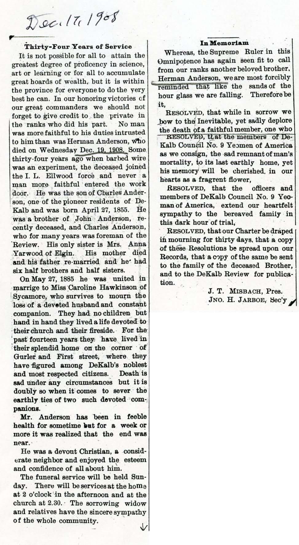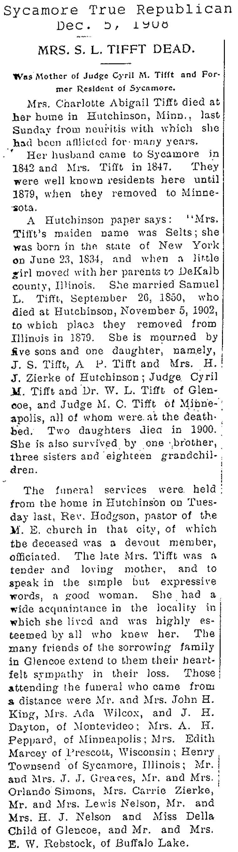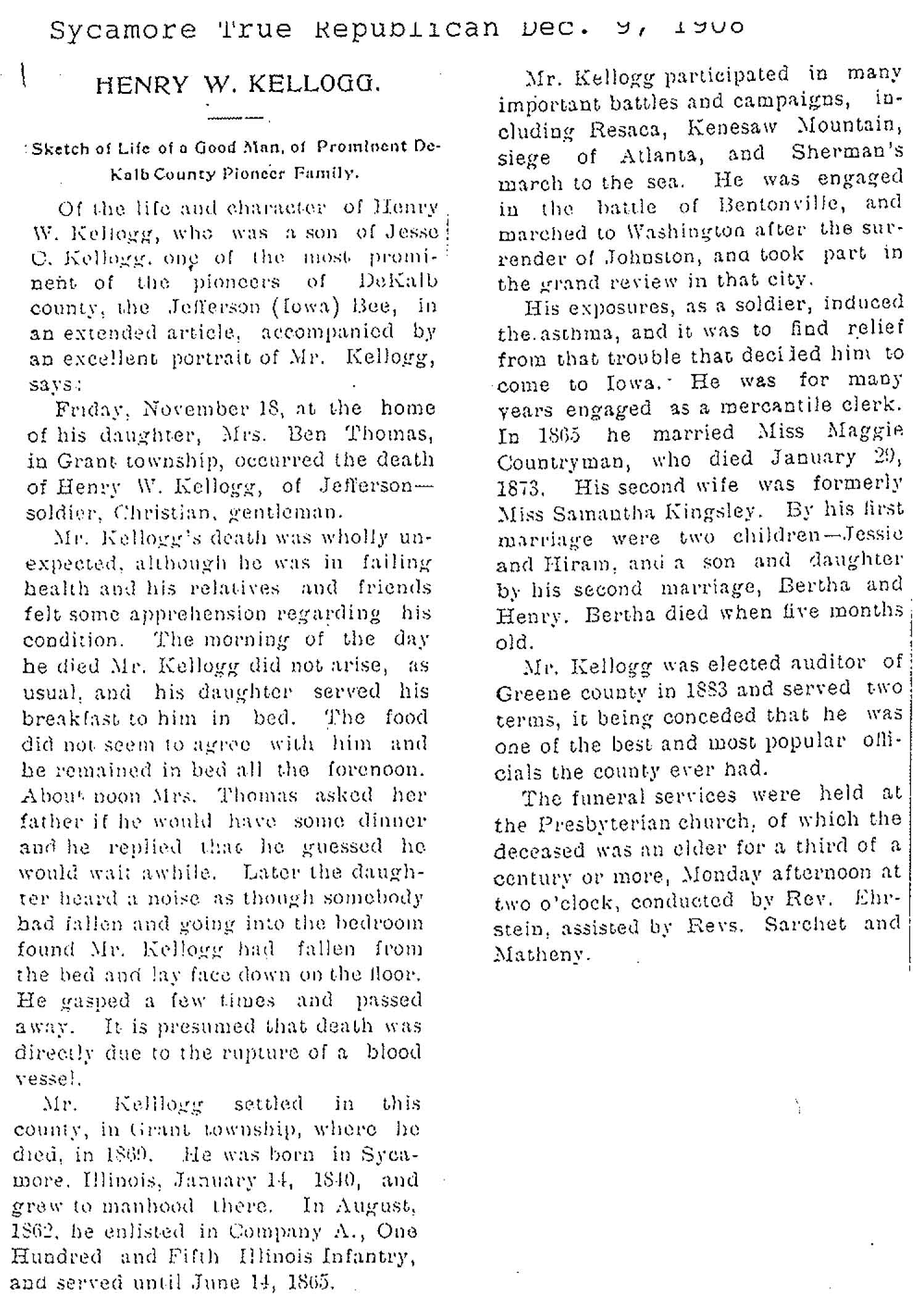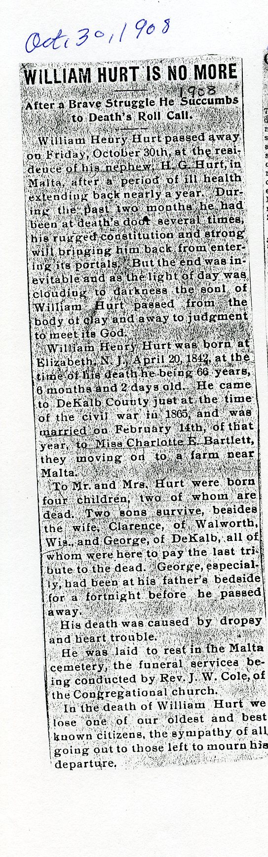 Buried in Wyoming Cemetery - Paw Paw, IL