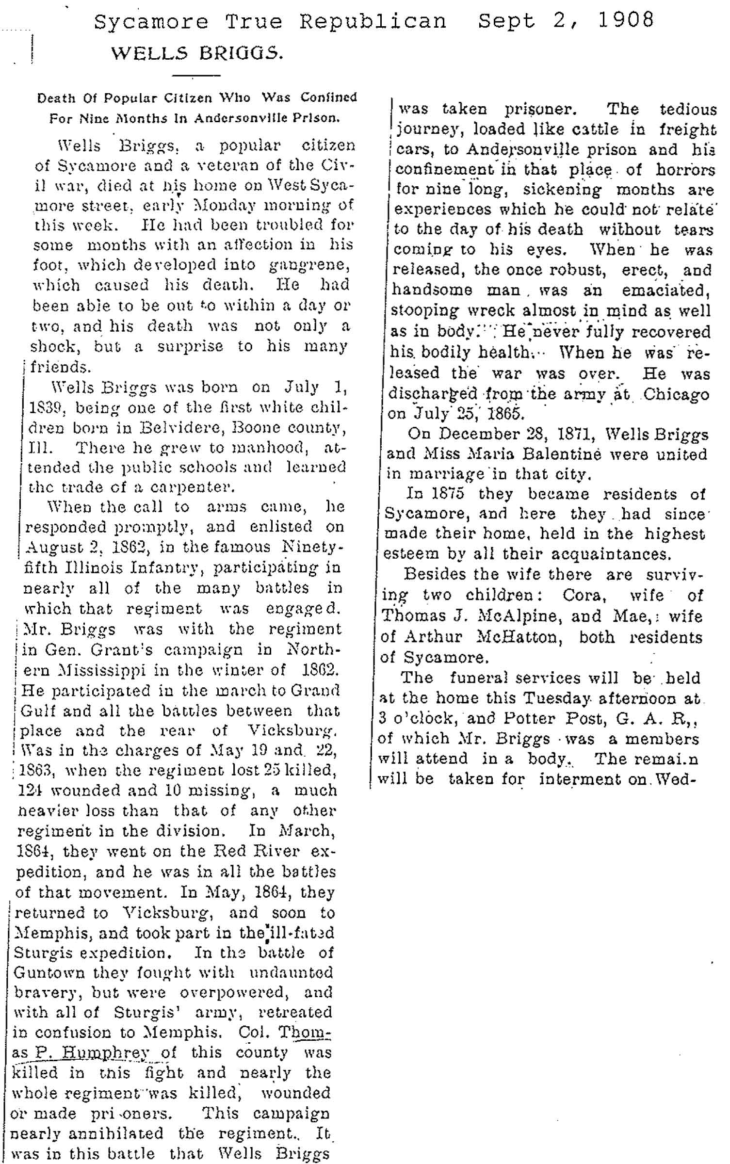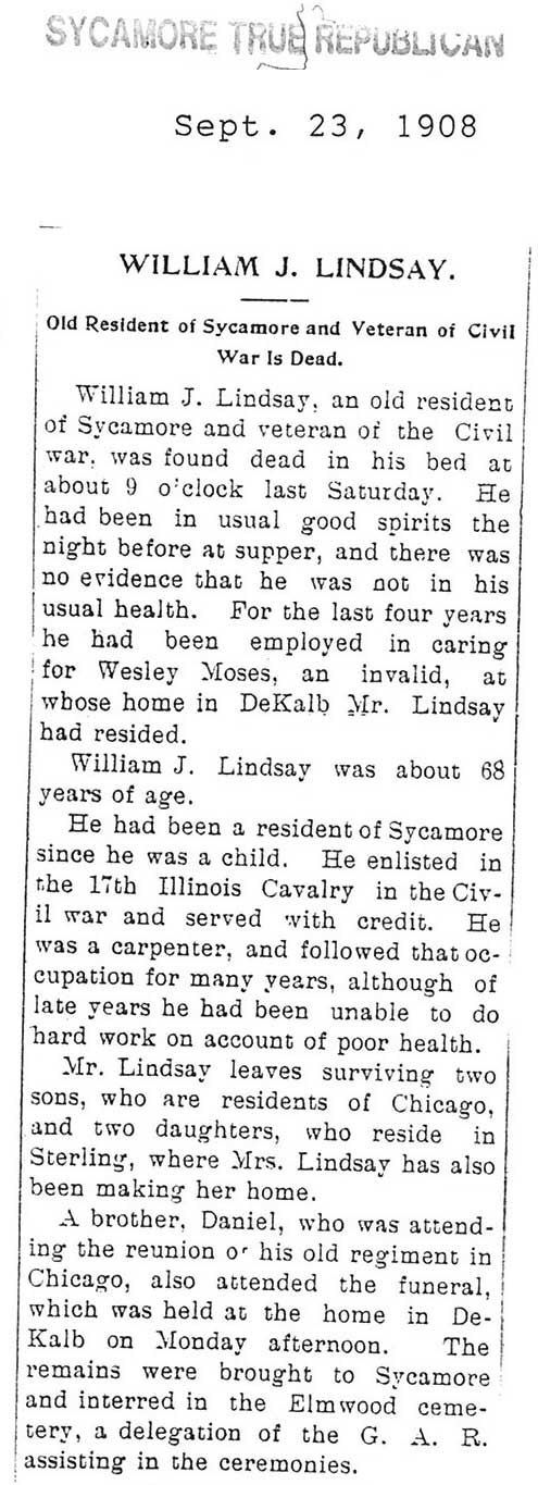 Civil War, 1862-1865, 95th Illinois Infantry. Obit has more; Book 2, p. 64