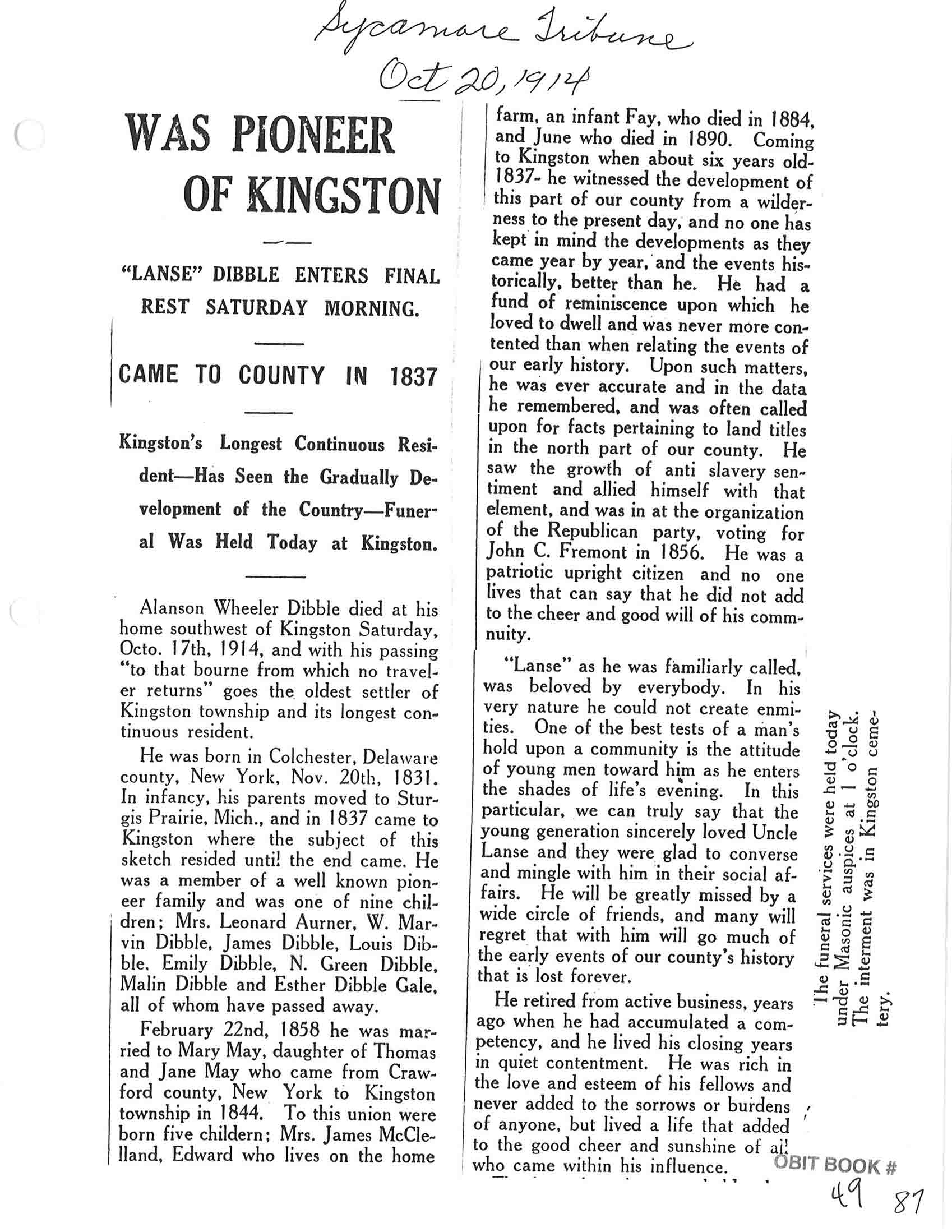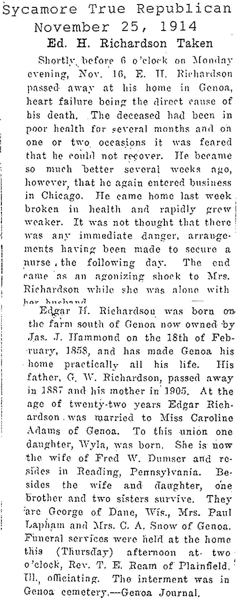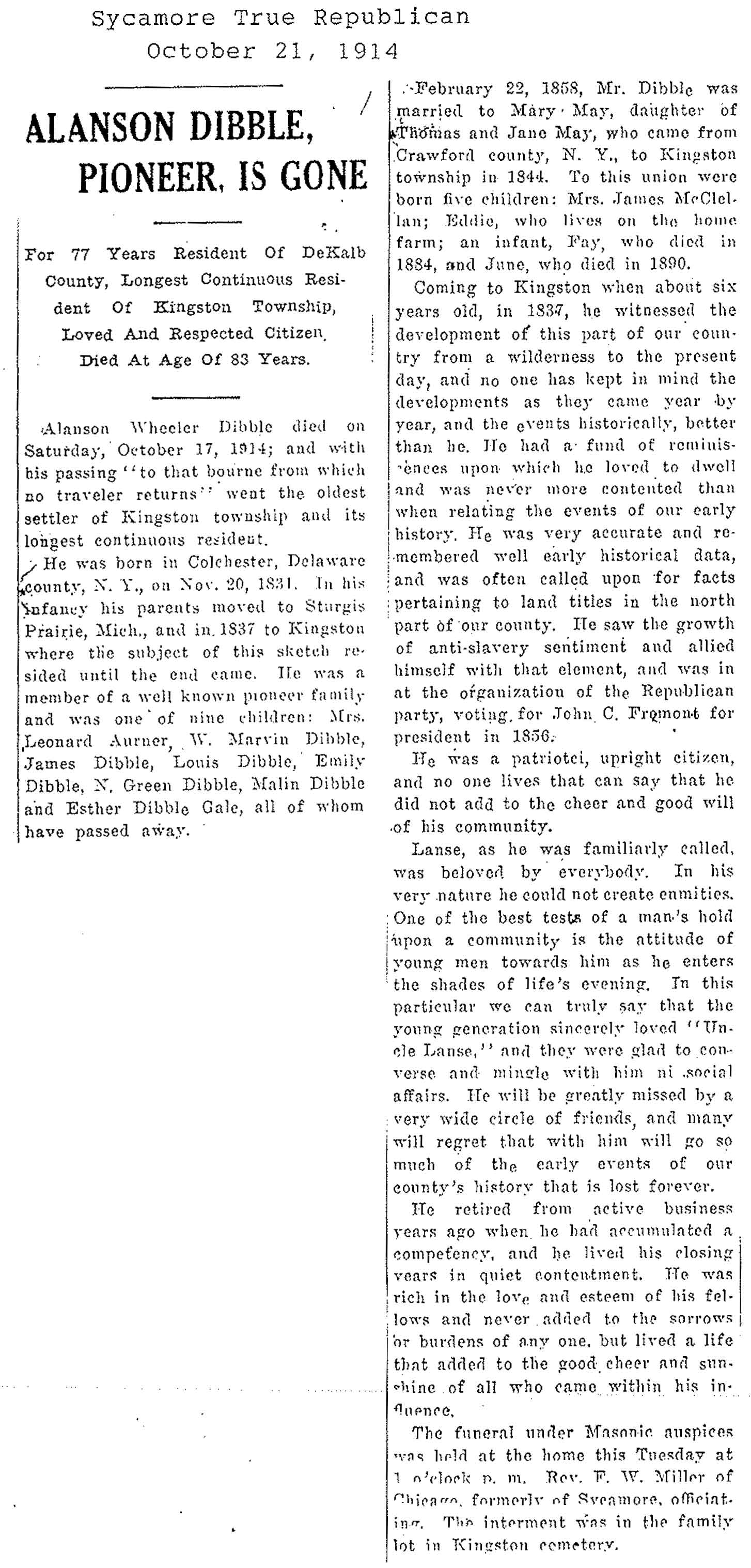Buried in Tampico, IL