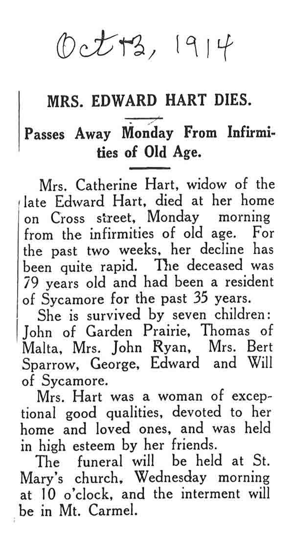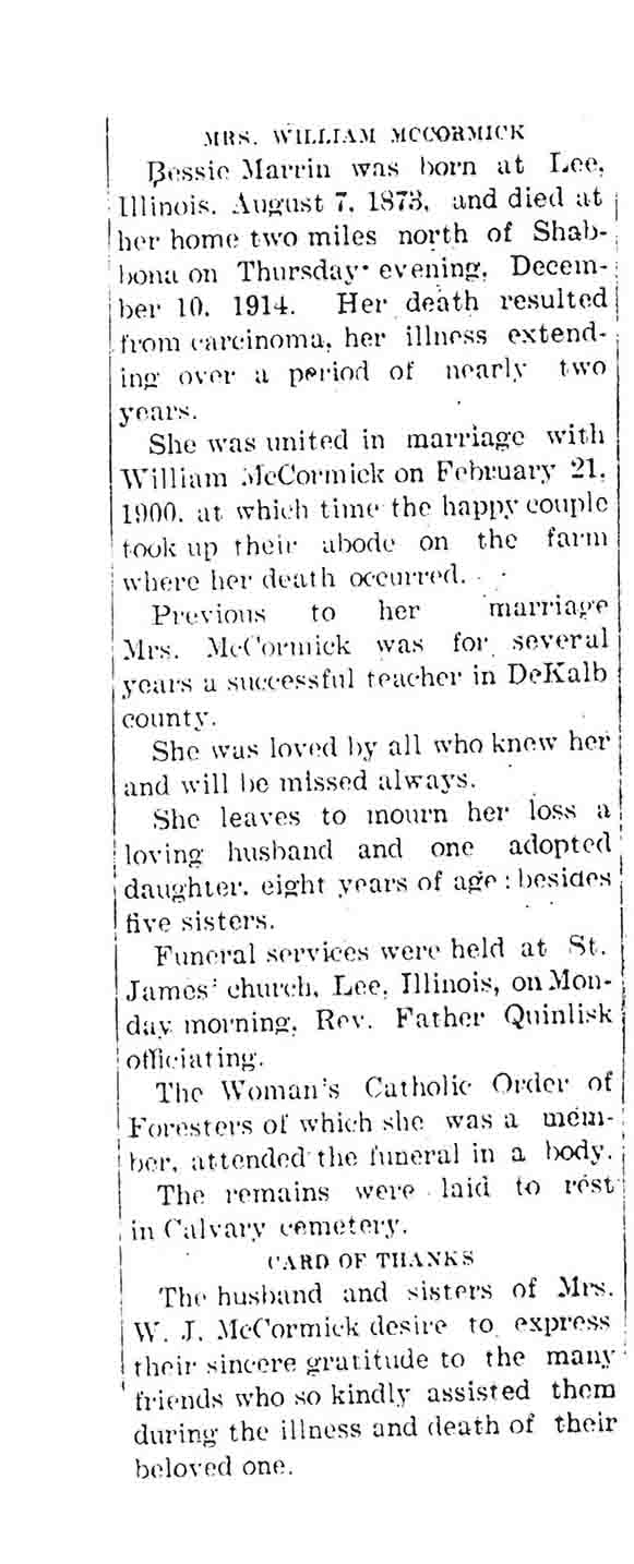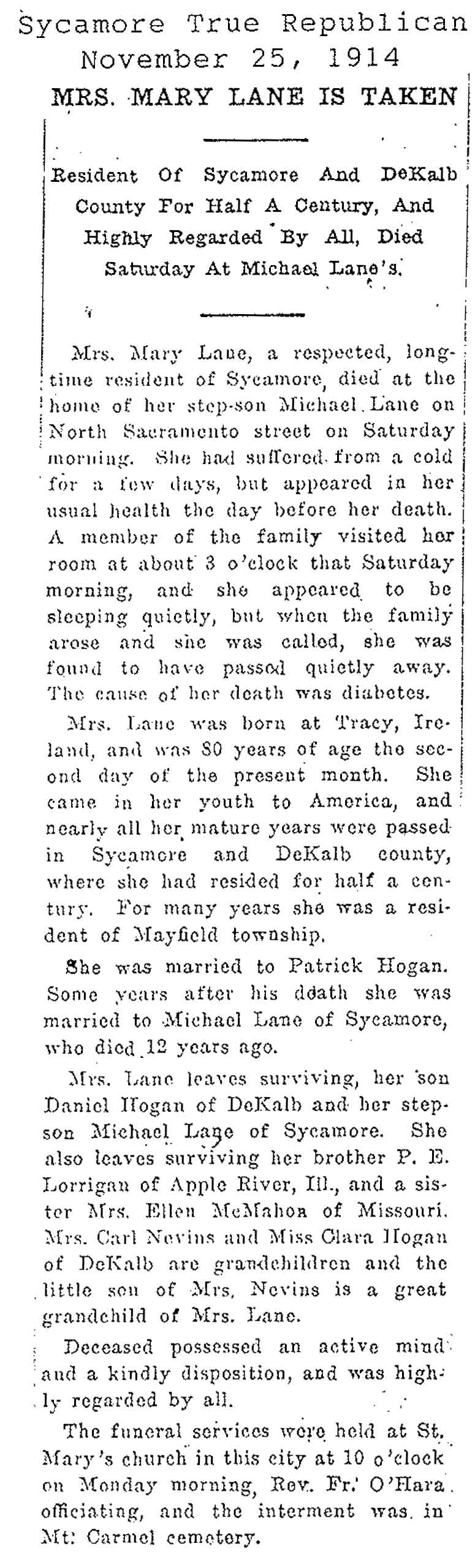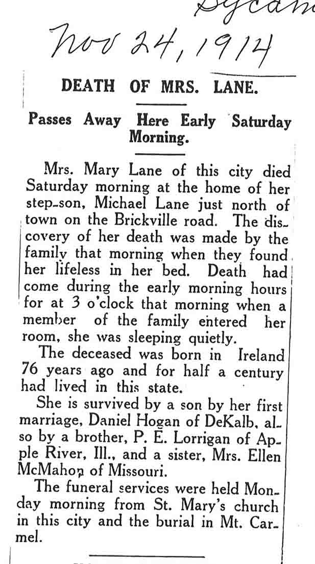 Buried in St. Mary Twin Grove Cemetery - Scarboro, IL