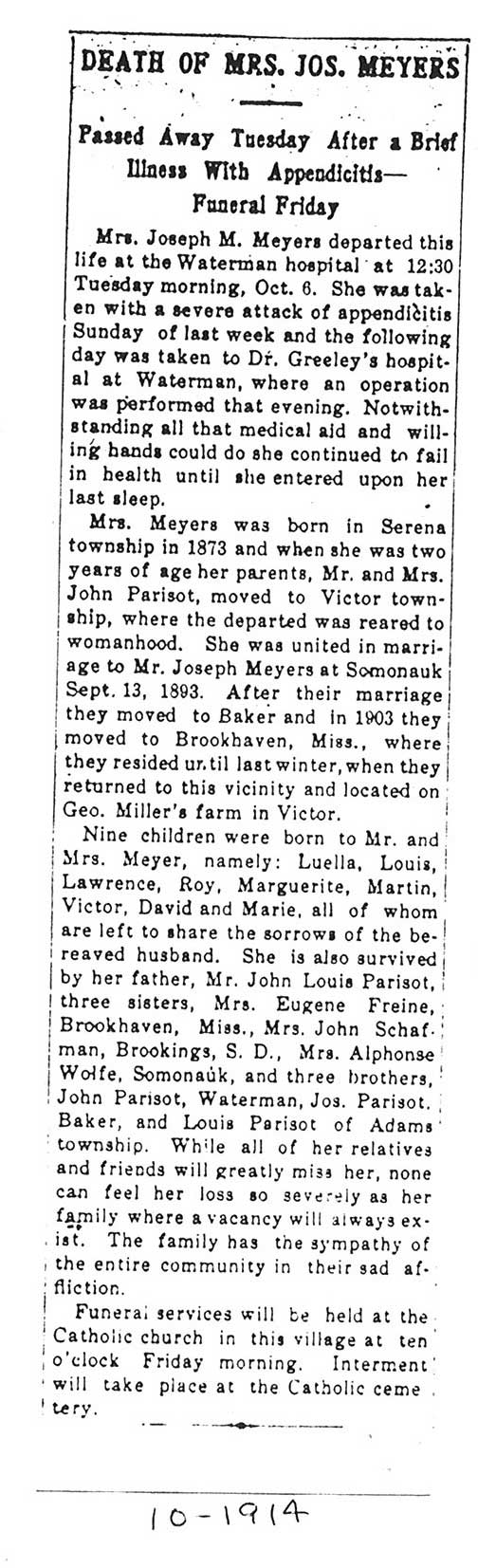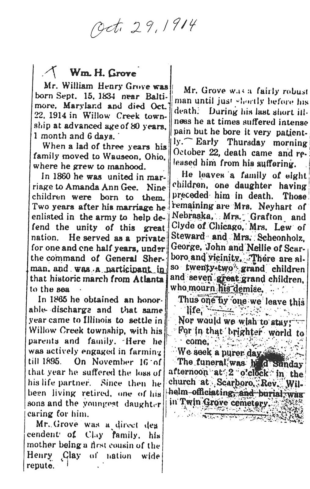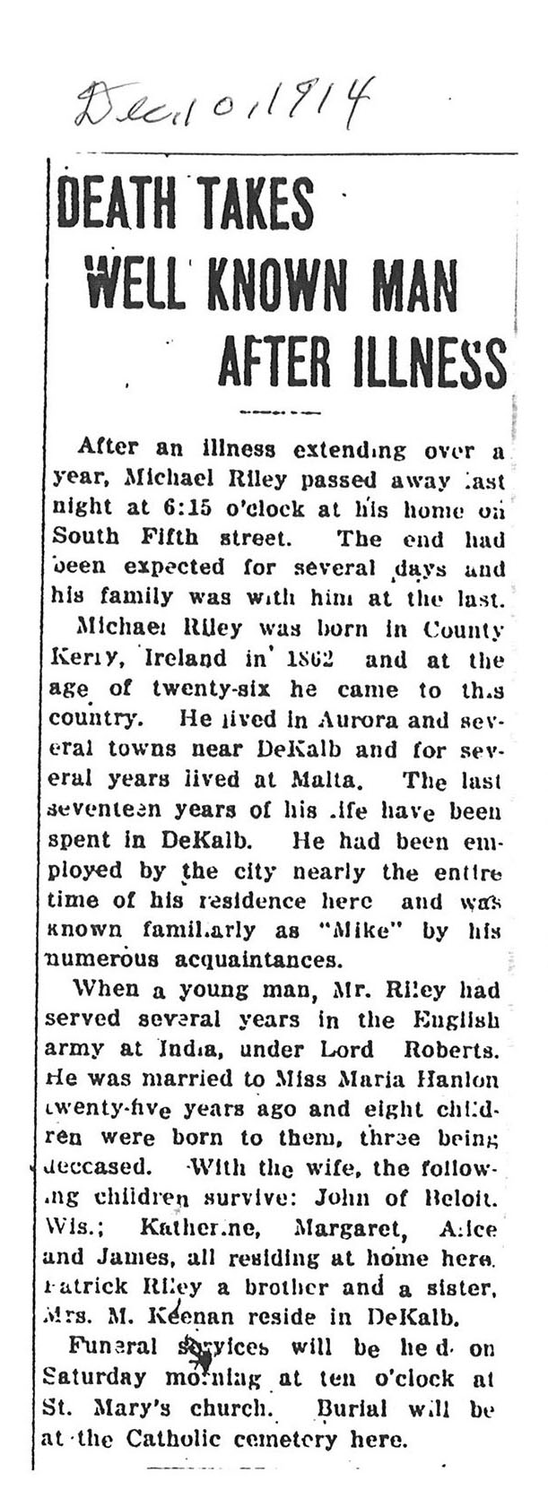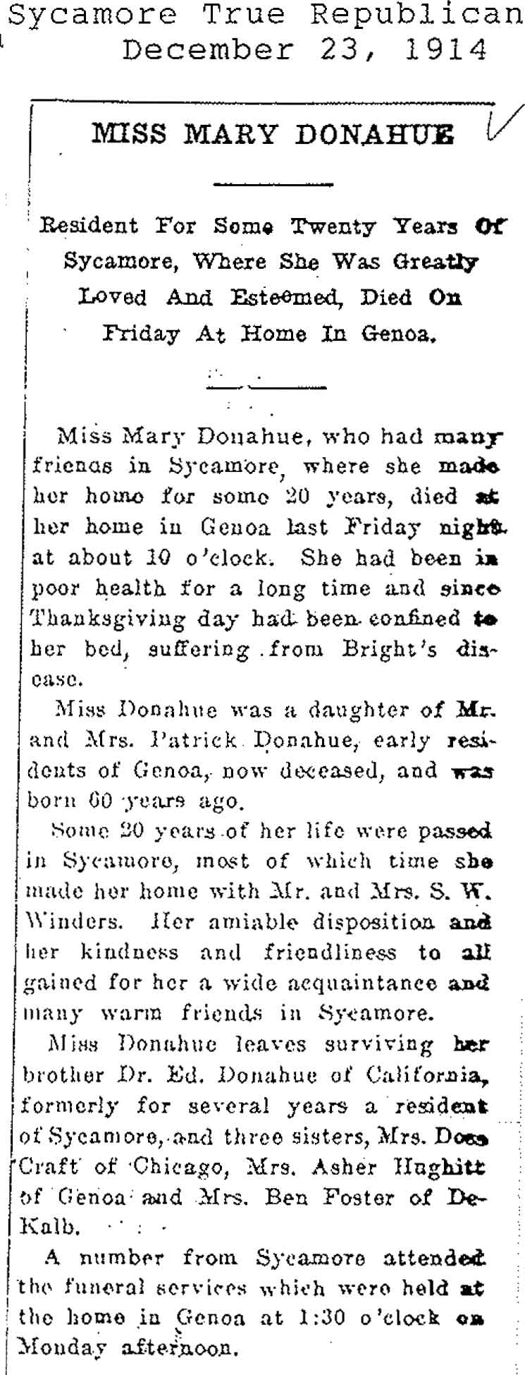 Buried in St. Mary Twin Grove Cemetery - Scarboro, IL