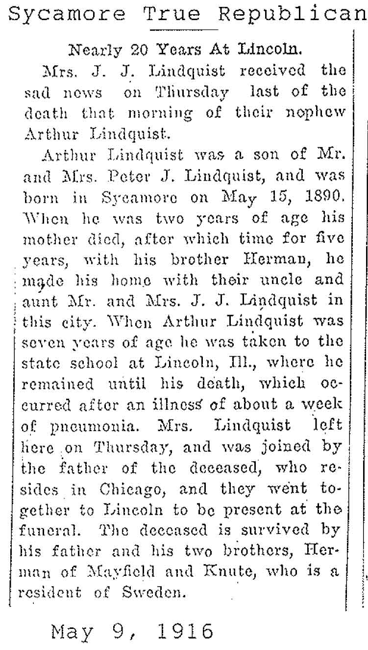 Lived at the State School in Lincoln, IL for 20 years