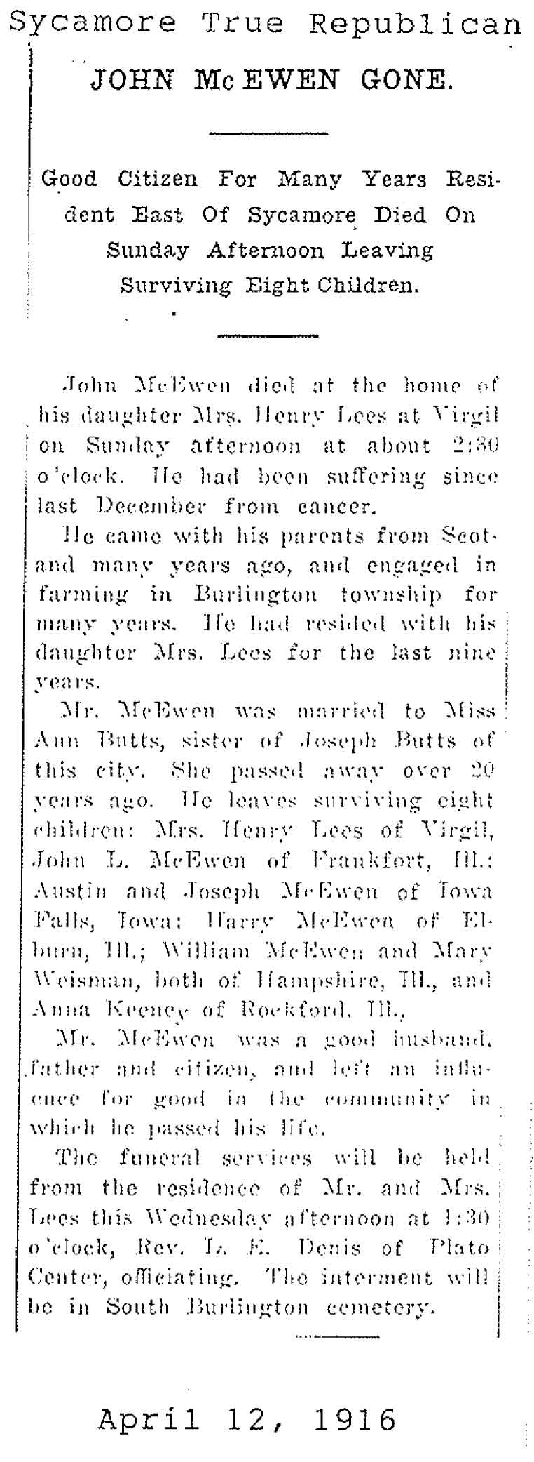 Deceased April 21, 1916