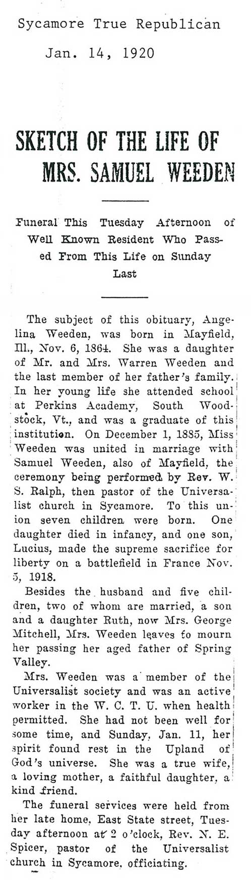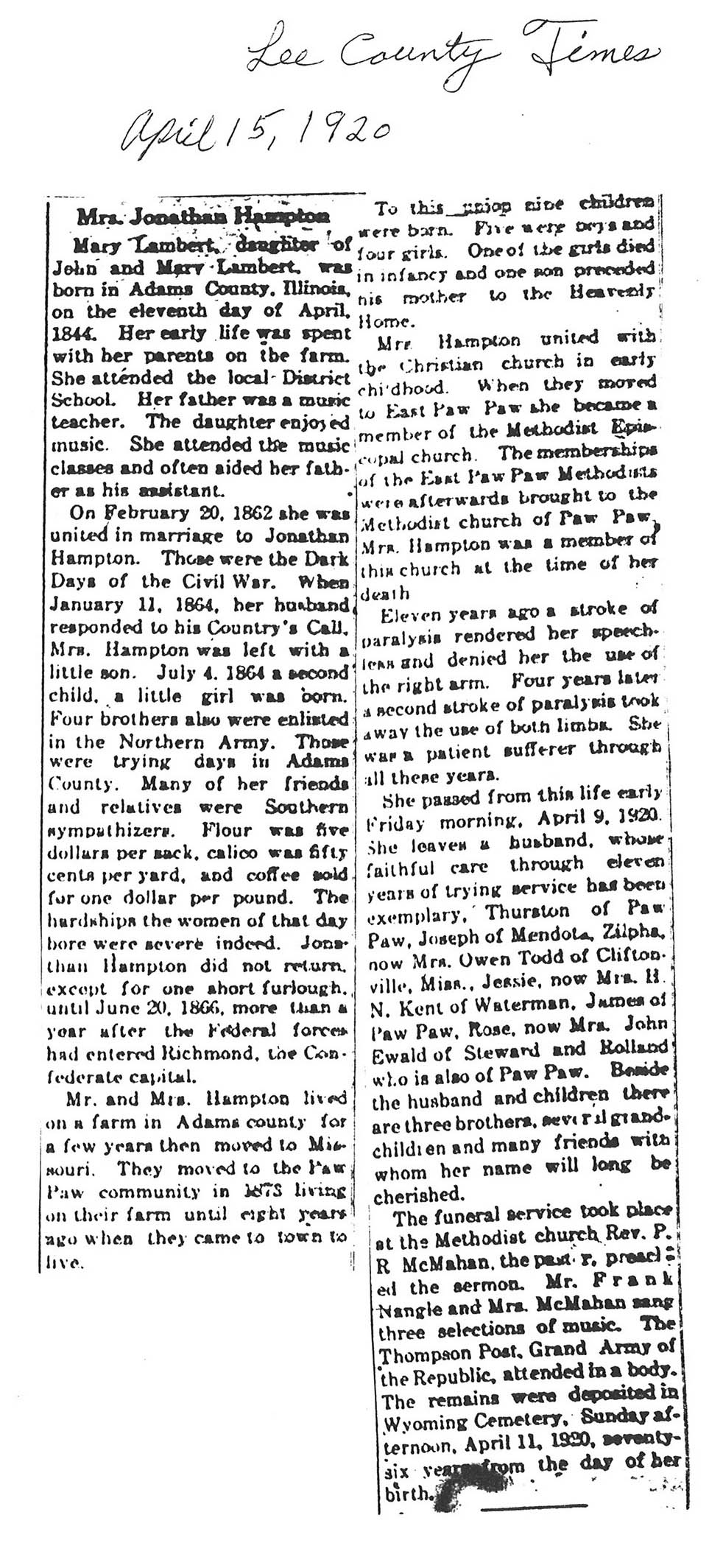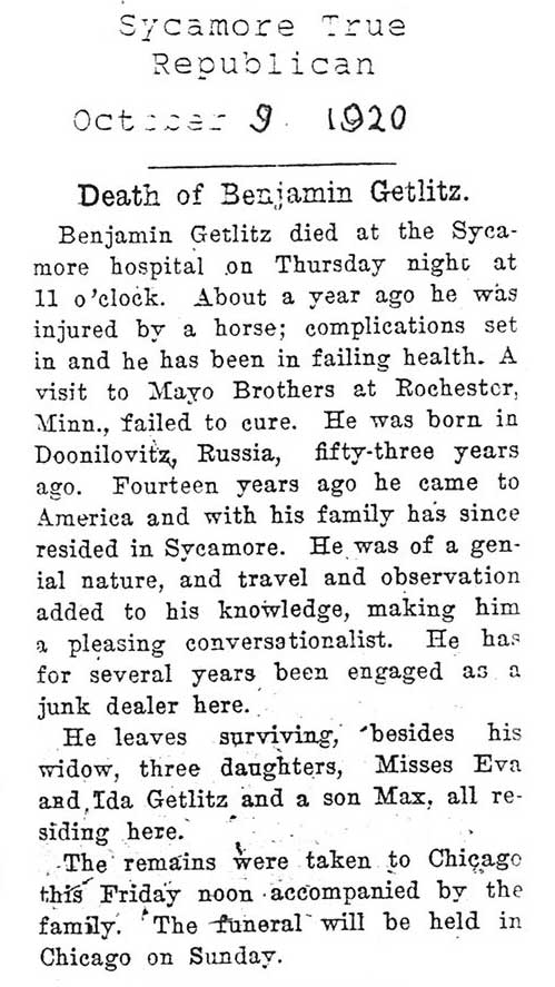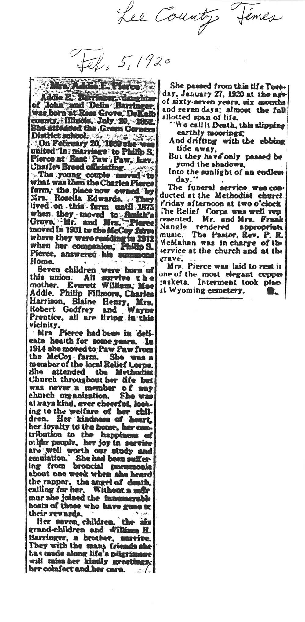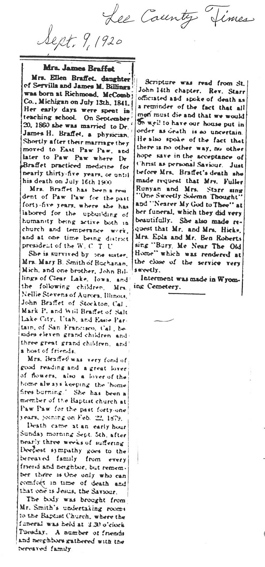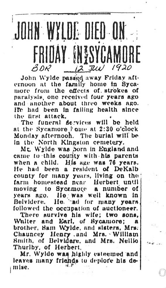 Buried in Wyoming Cemetery, IL