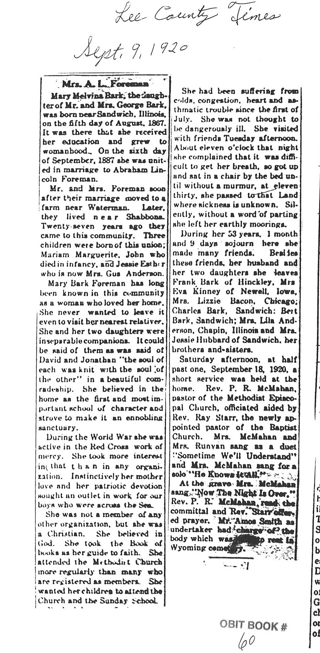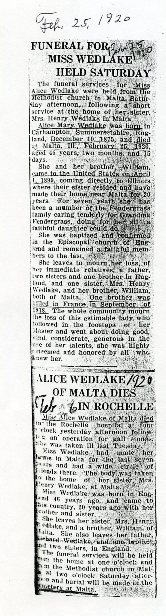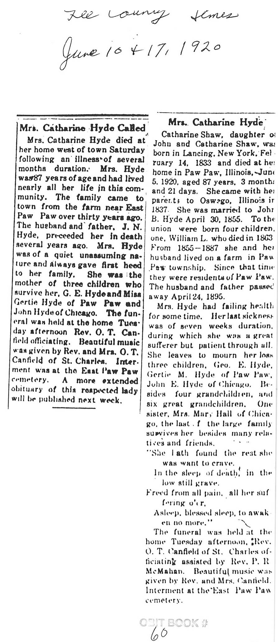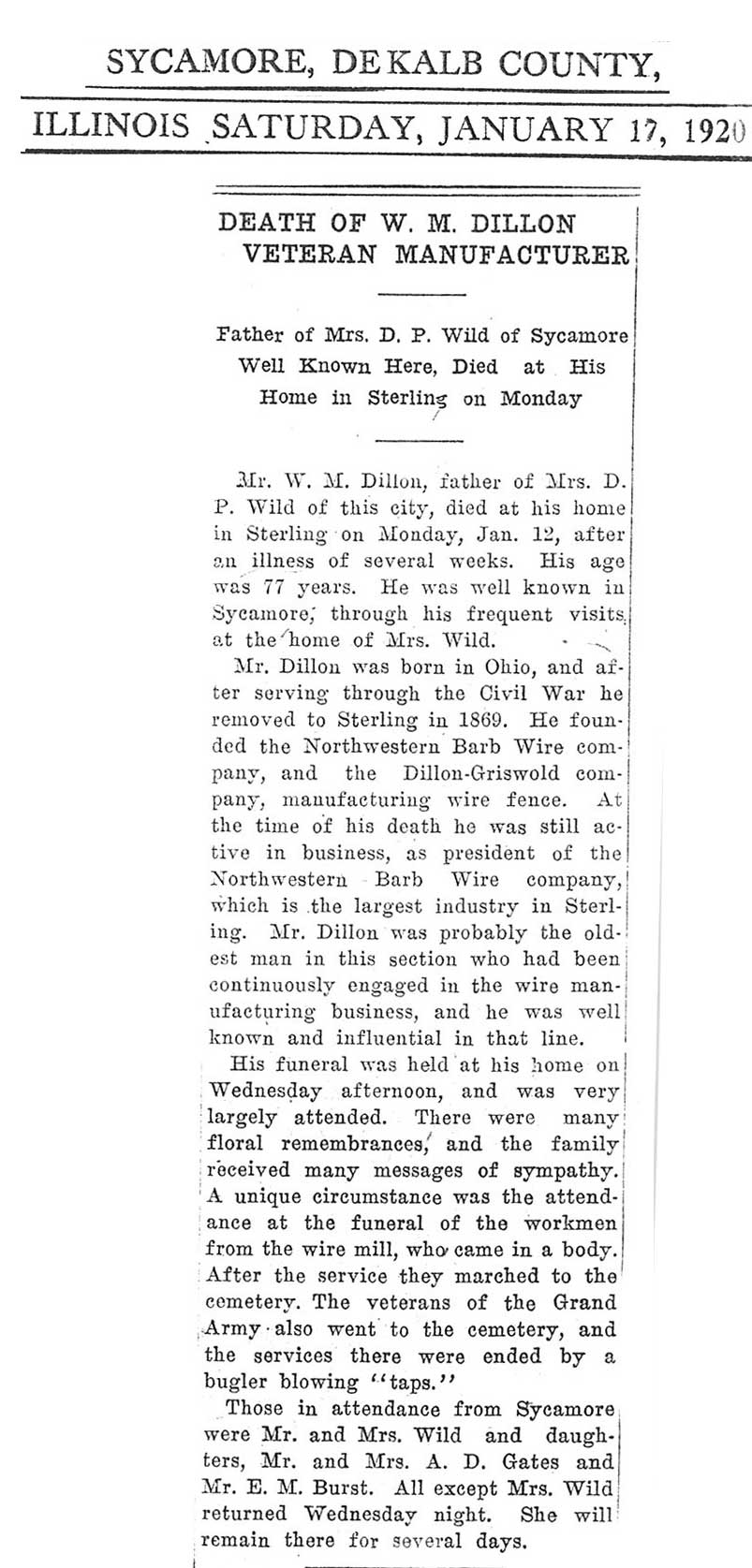 Buried in Wyoming Cemetery, IL