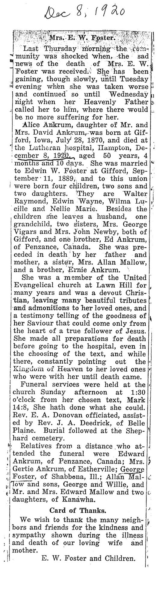 Maiden name - Ankrum