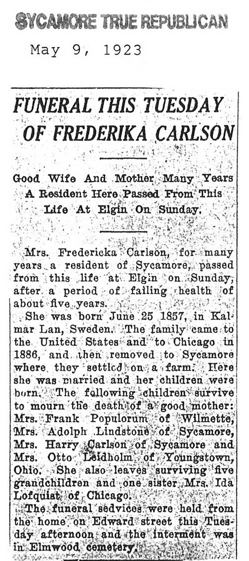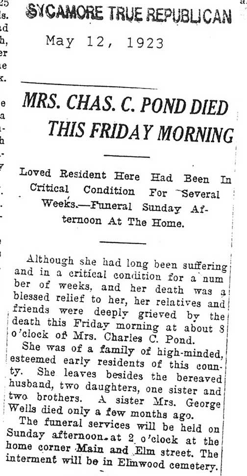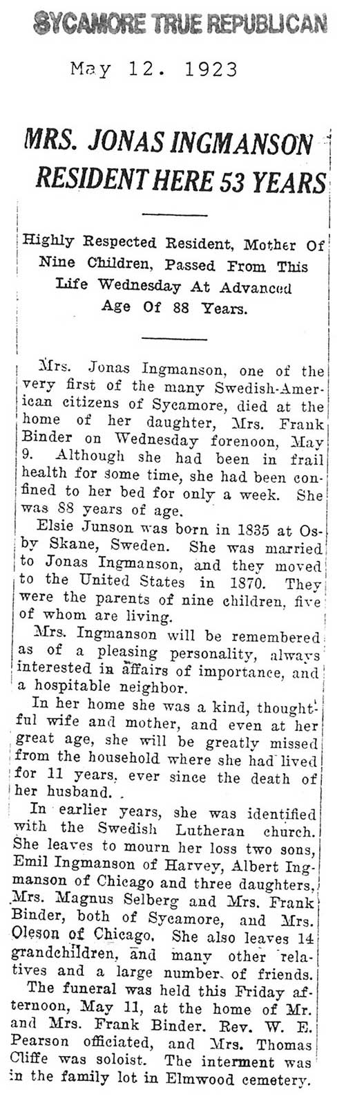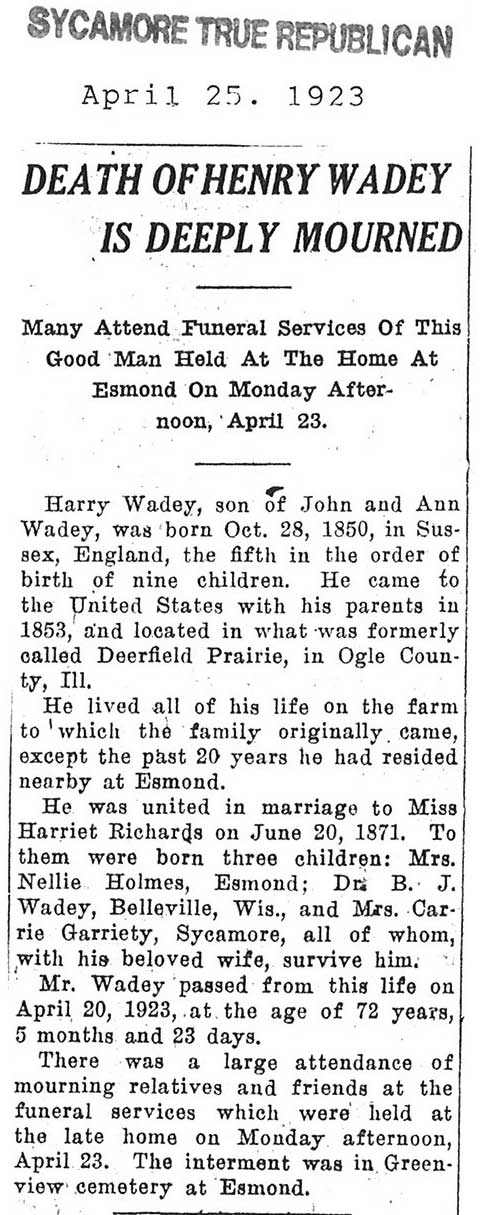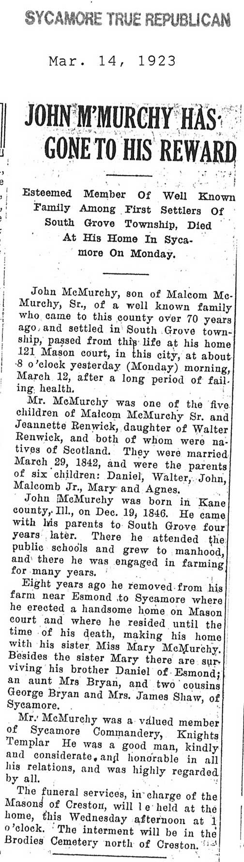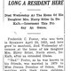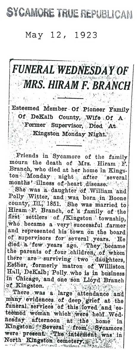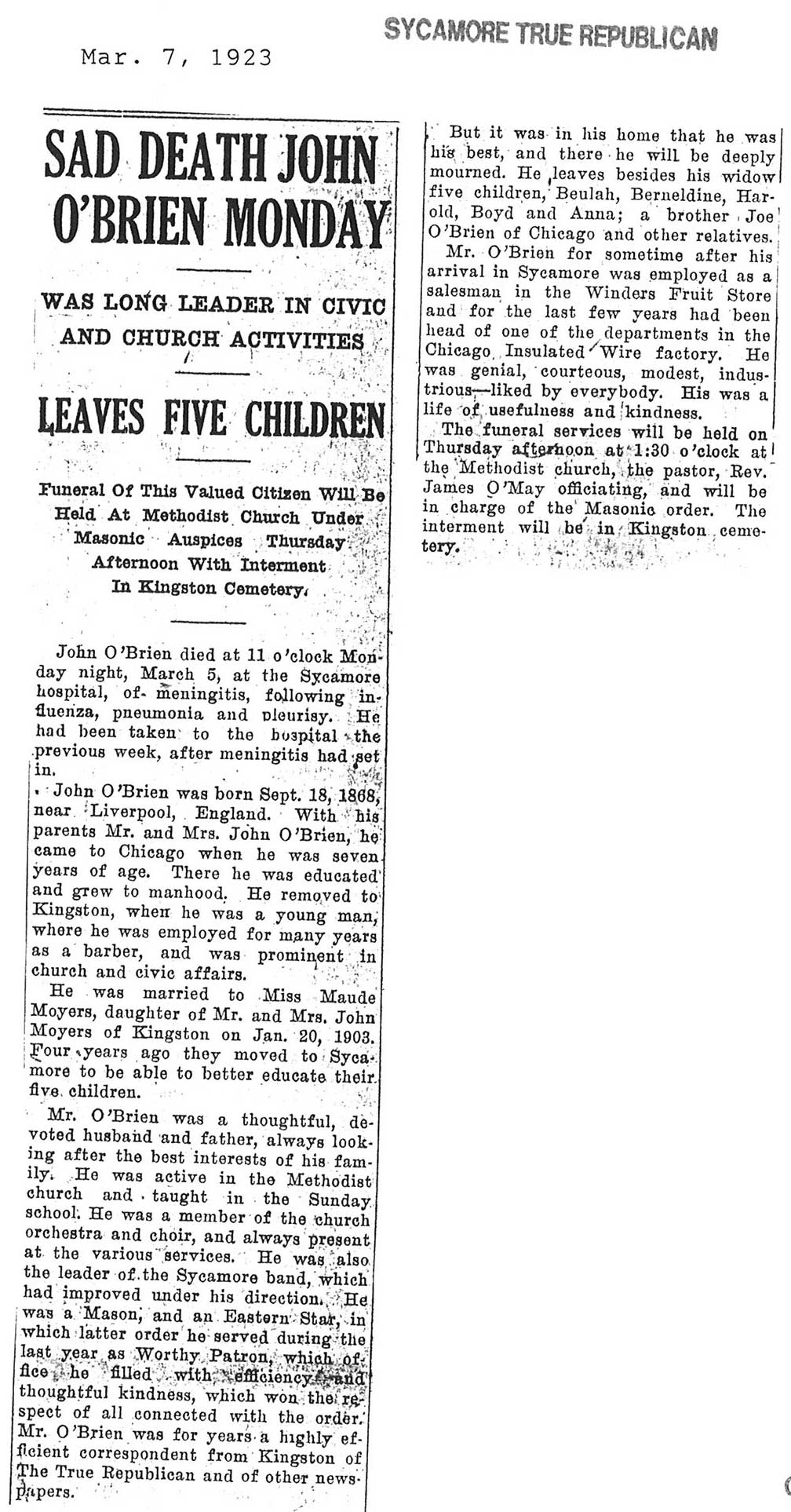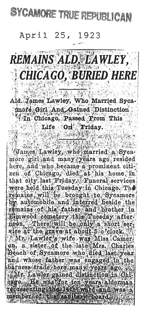 Note: obit has death year as 1923 cemetery listing has year as 1929