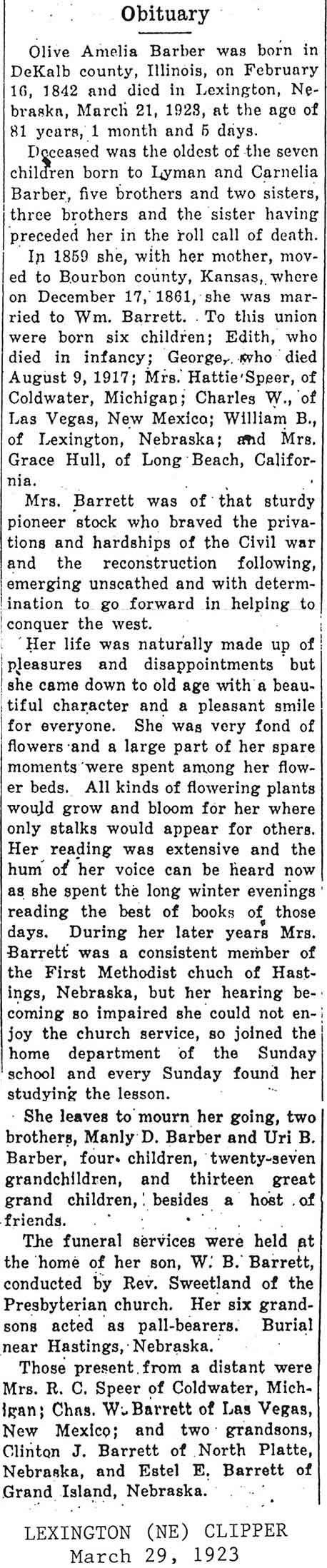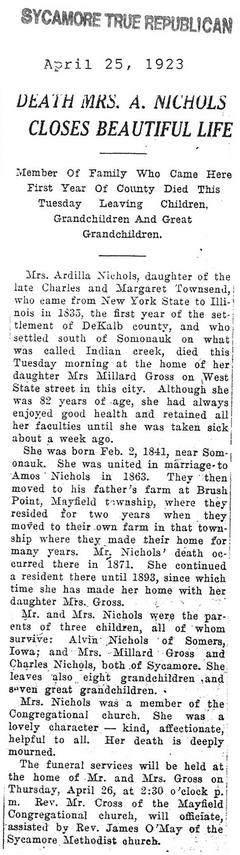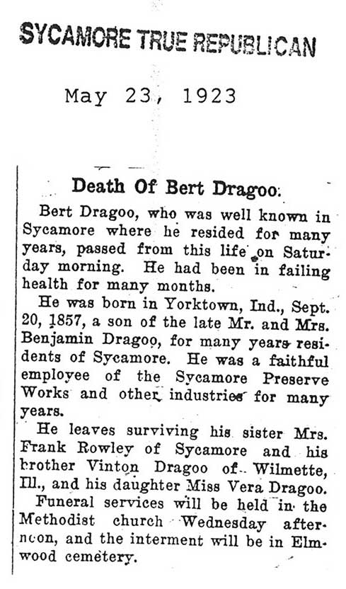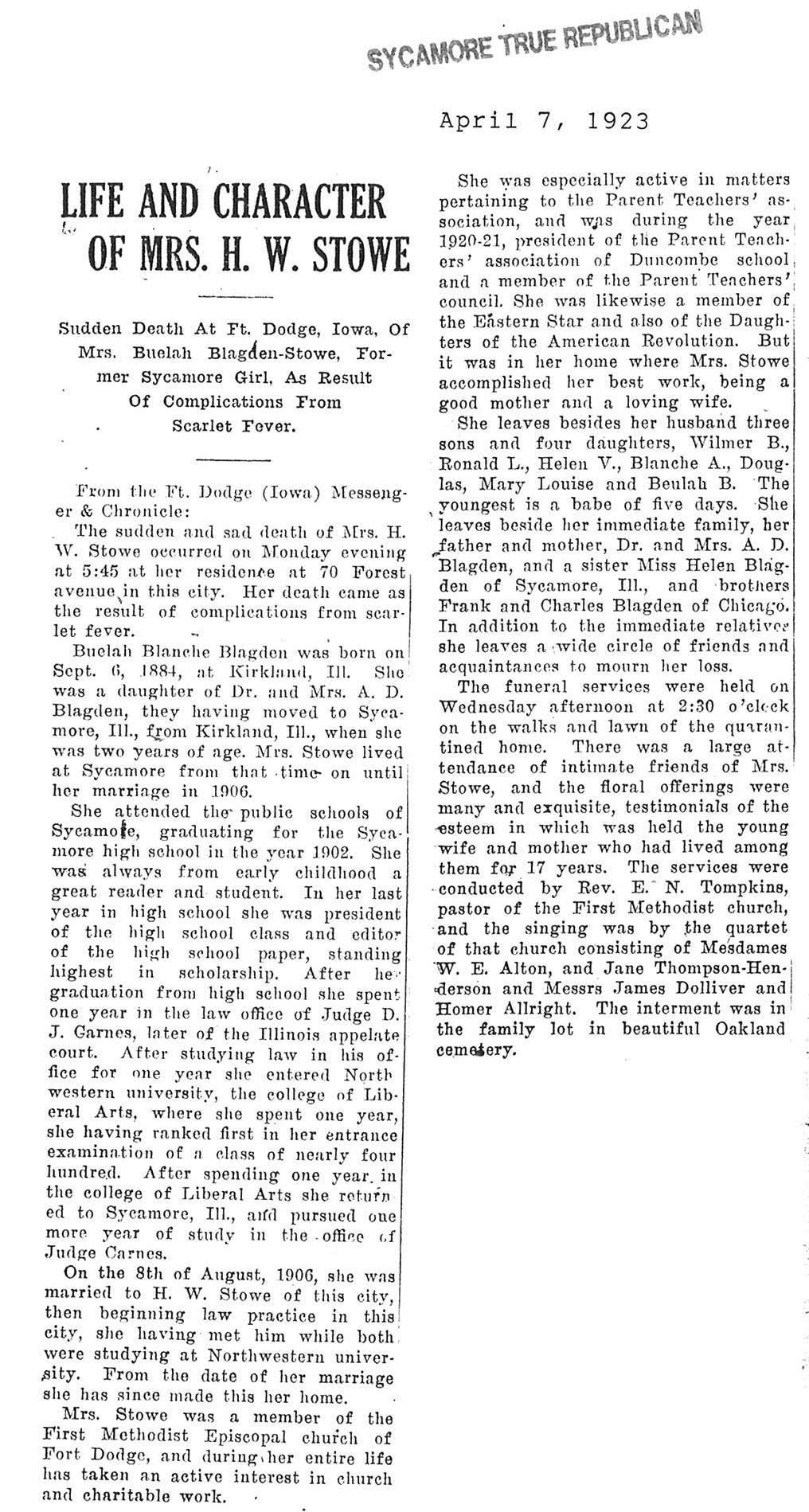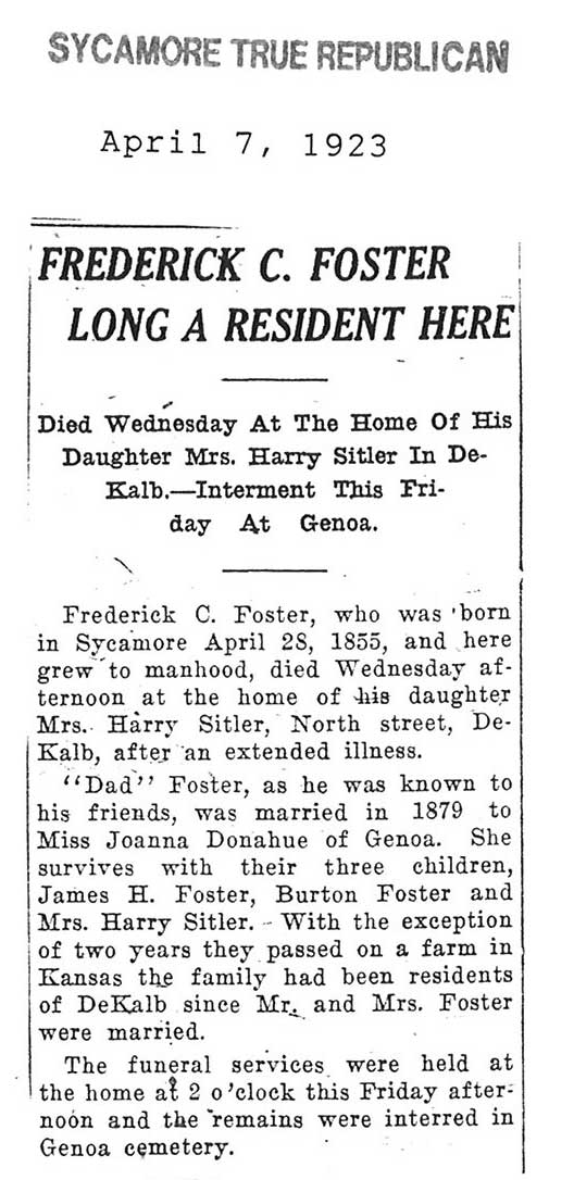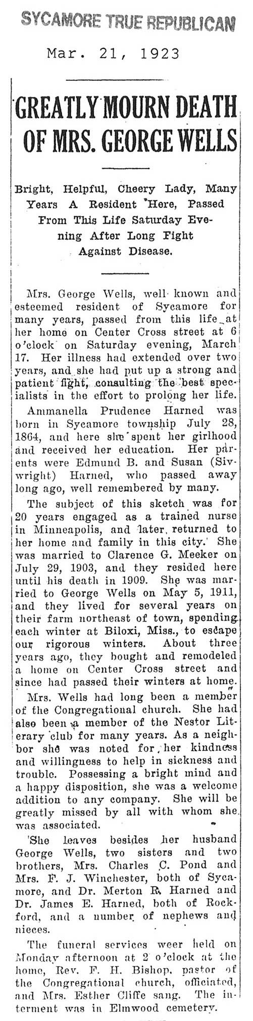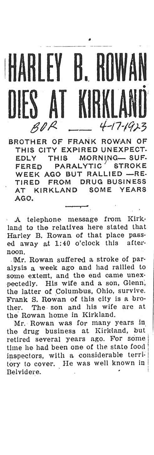 Note: obit has death year as 1923 cemetery listing has year as 1929