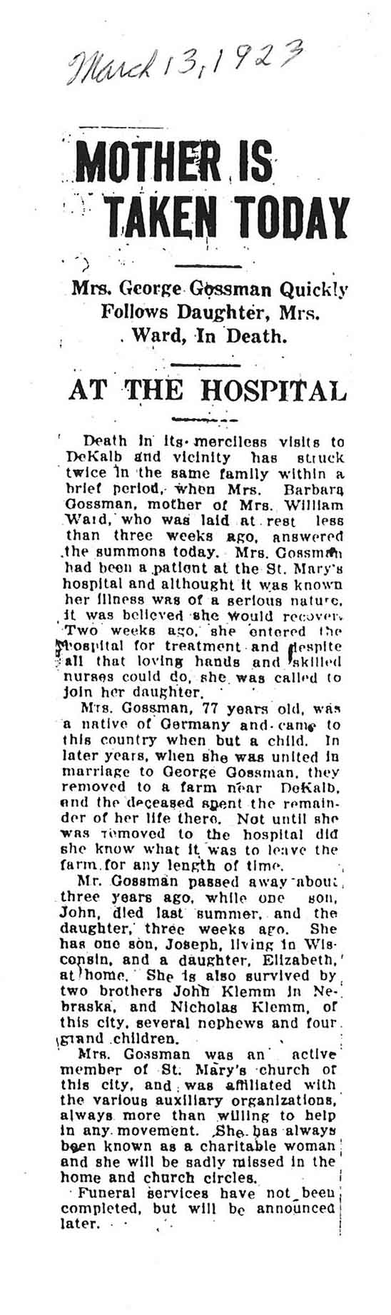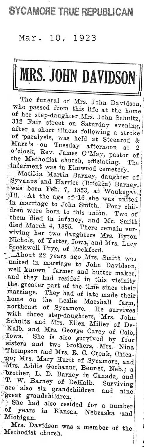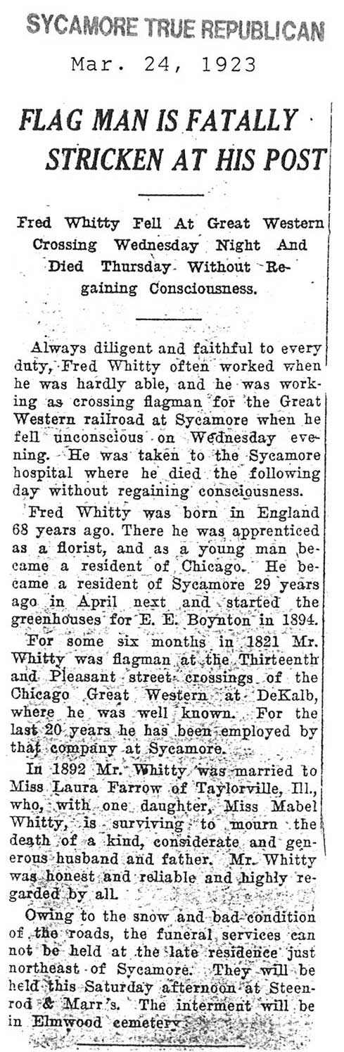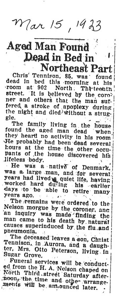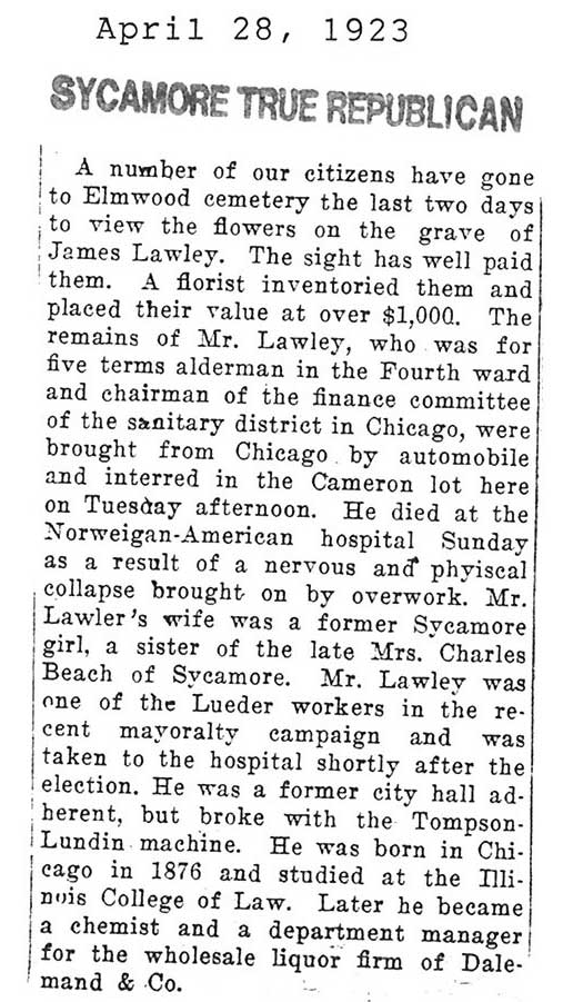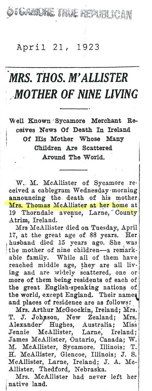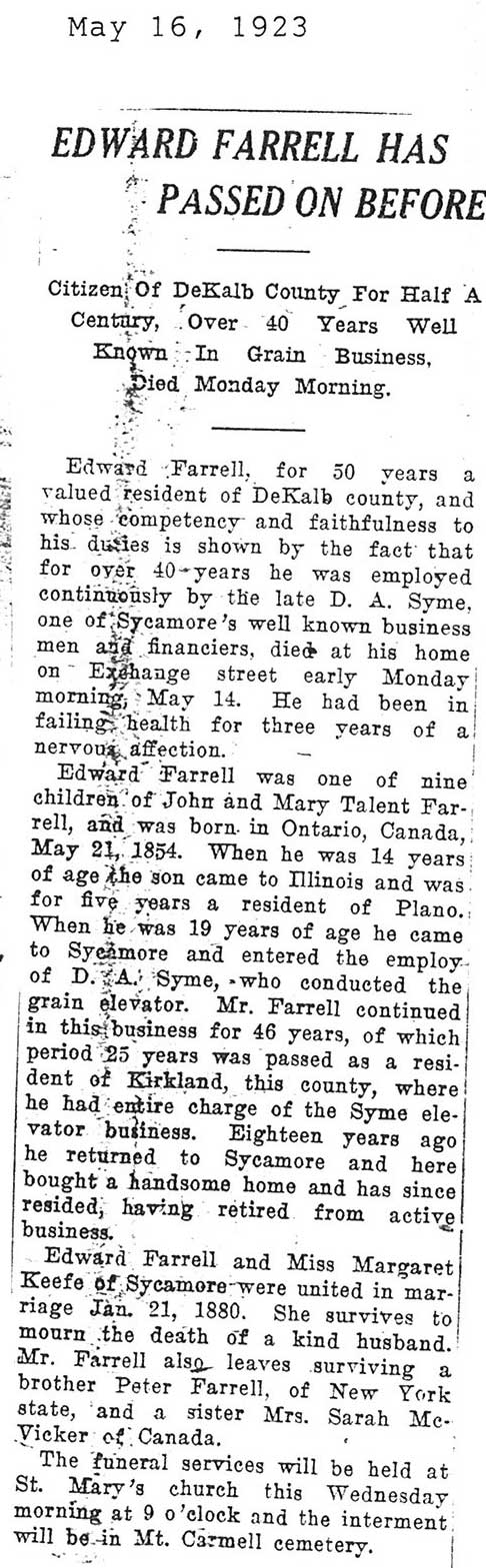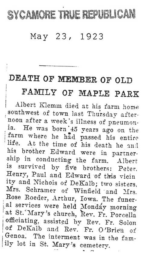 Note: obit has death year as 1923 cemetery listing has year as 1929