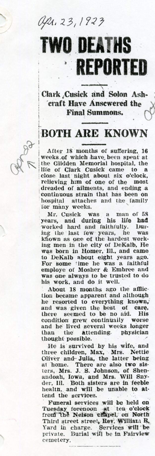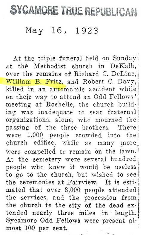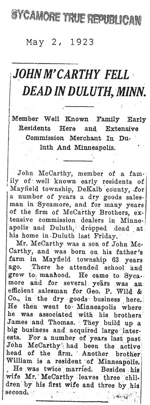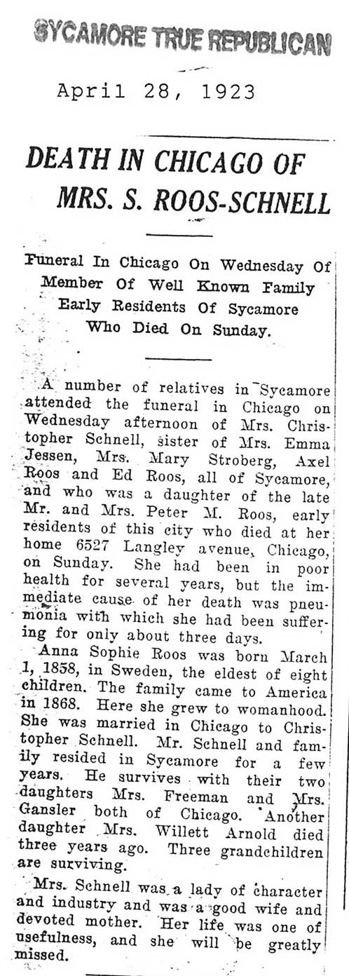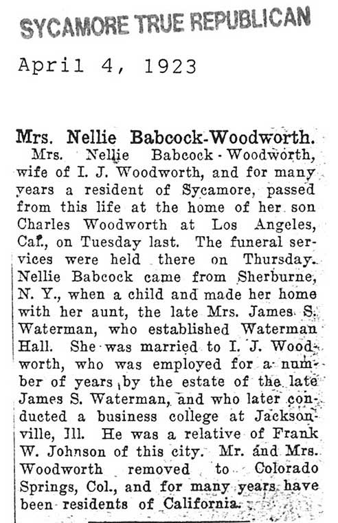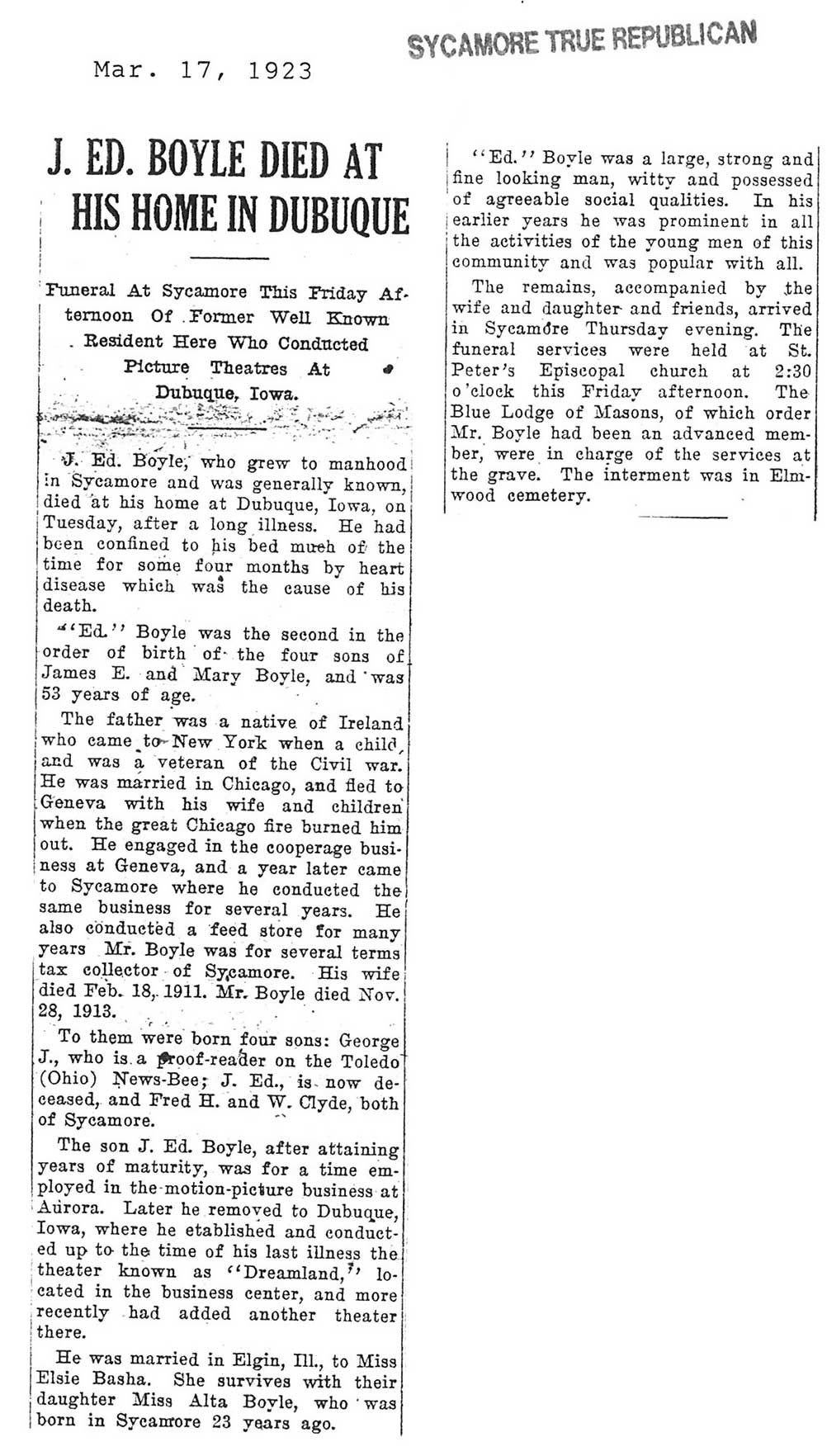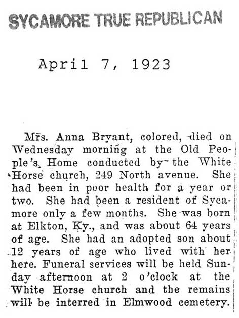 Note: obit has death year as 1923 cemetery listing has year as 1929