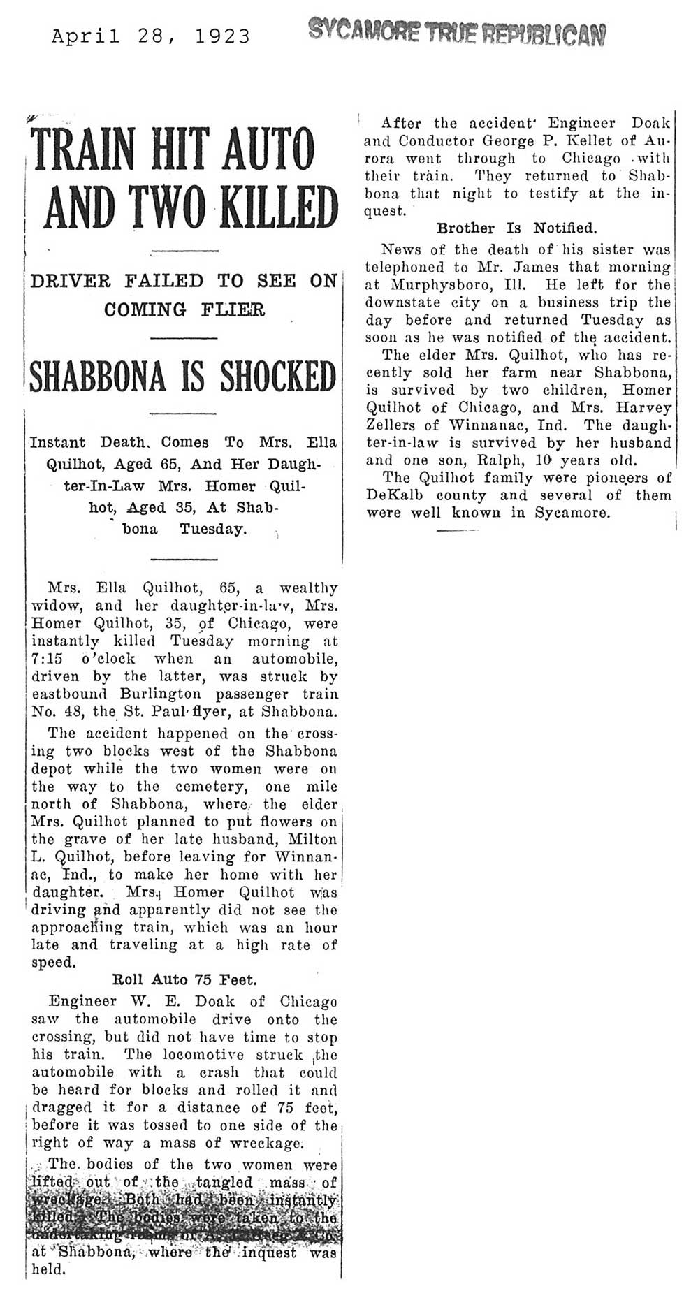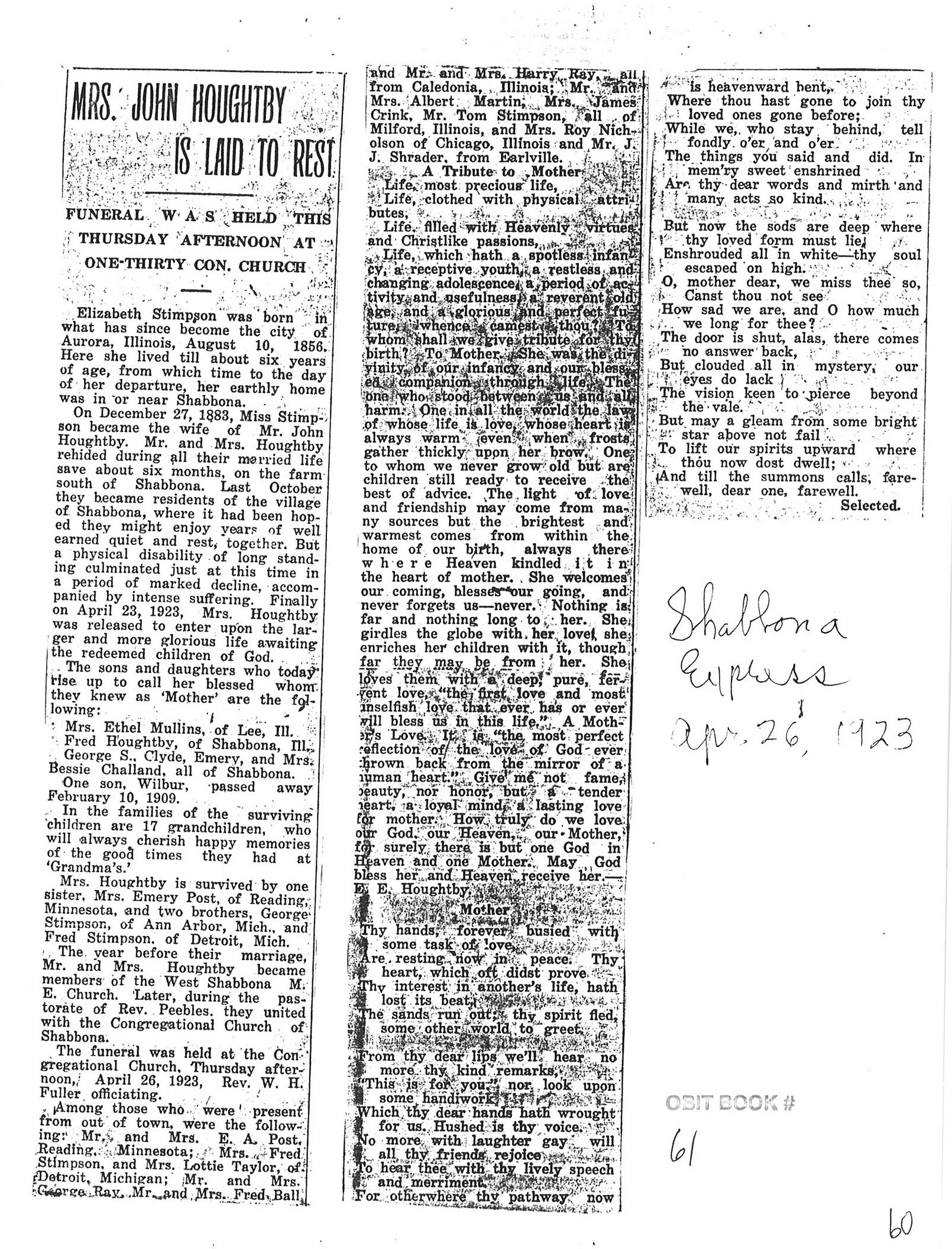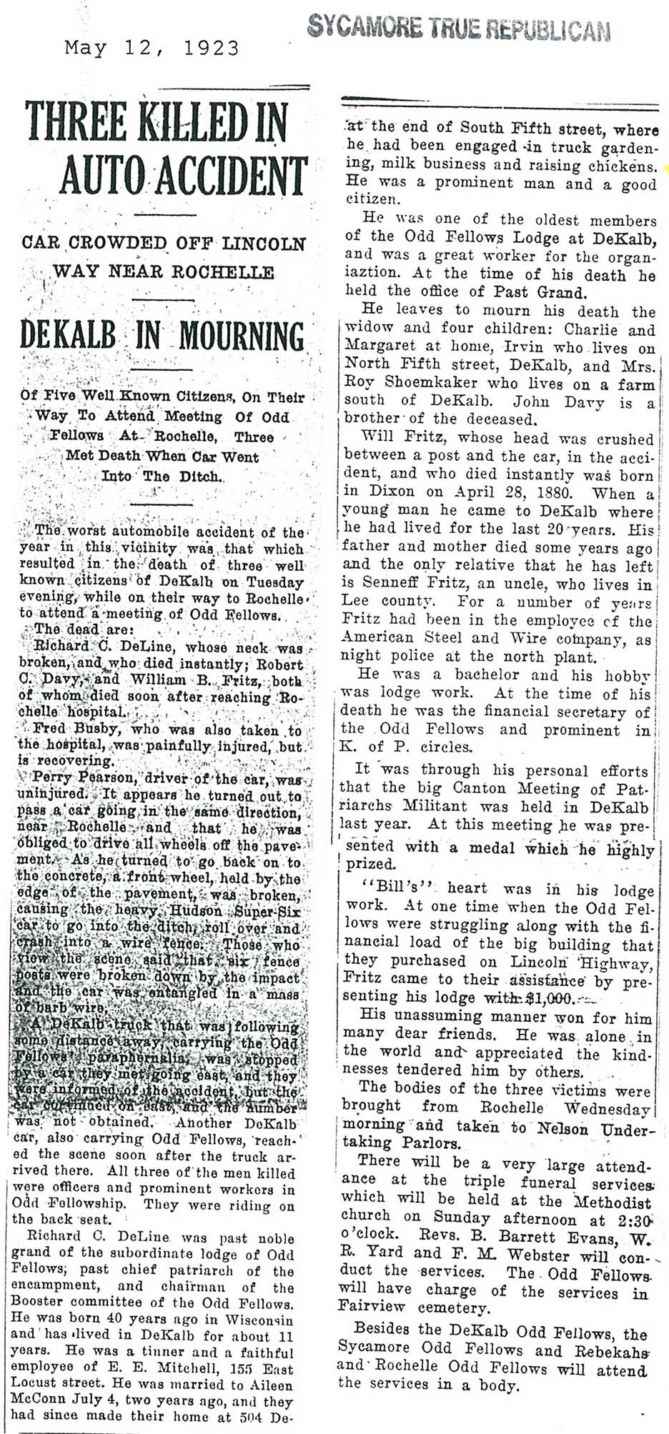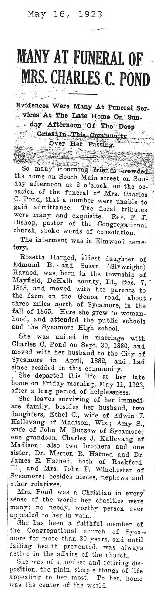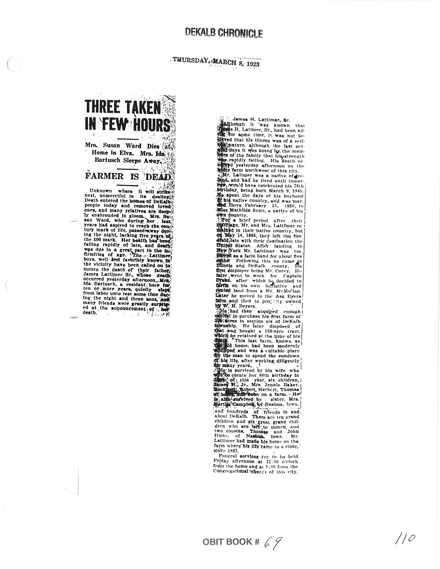 Note: obit has death year as 1923 cemetery listing has year as 1929