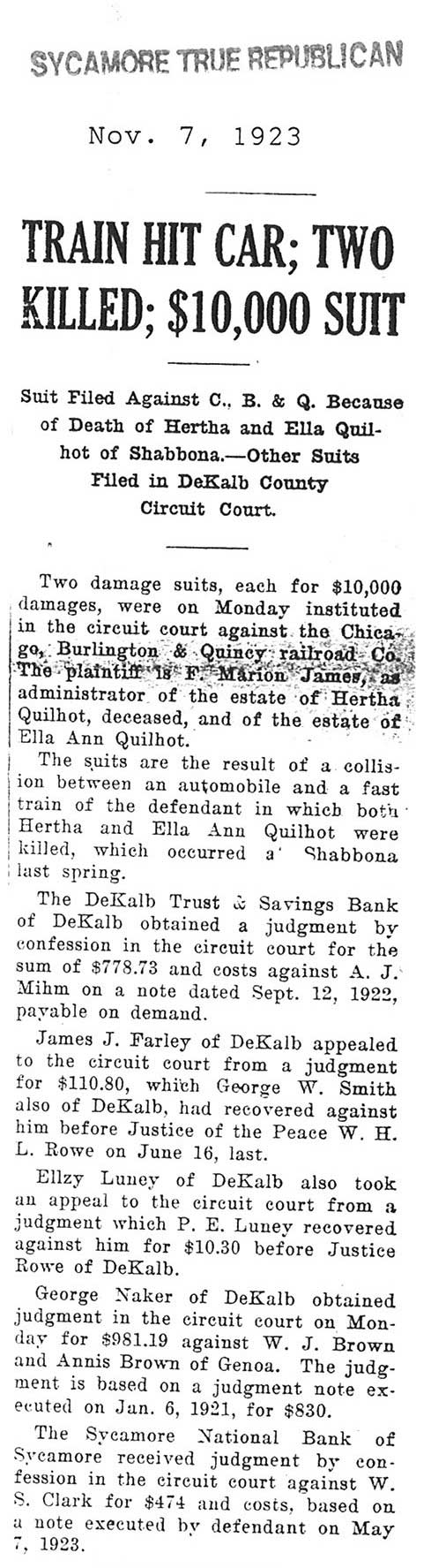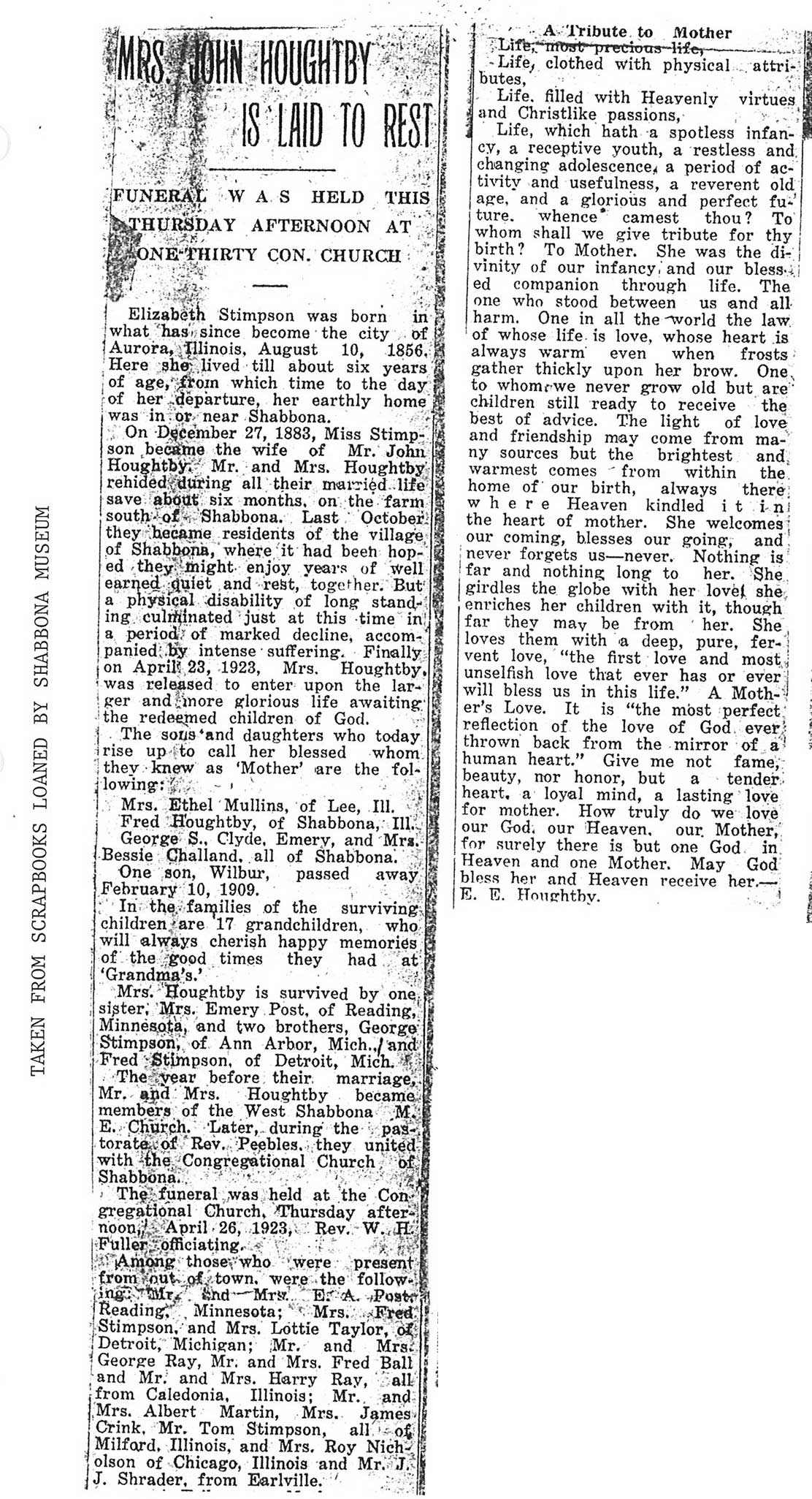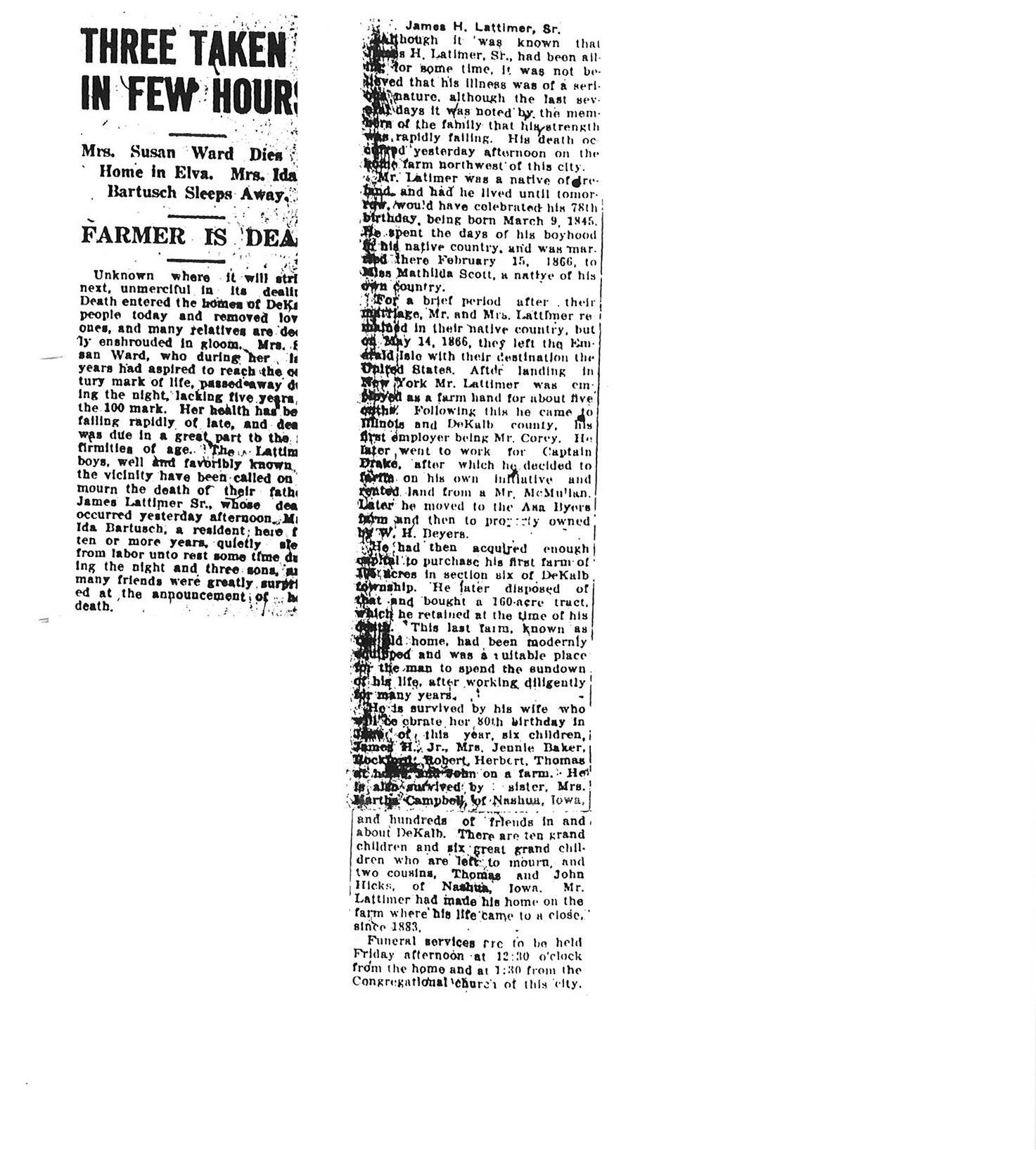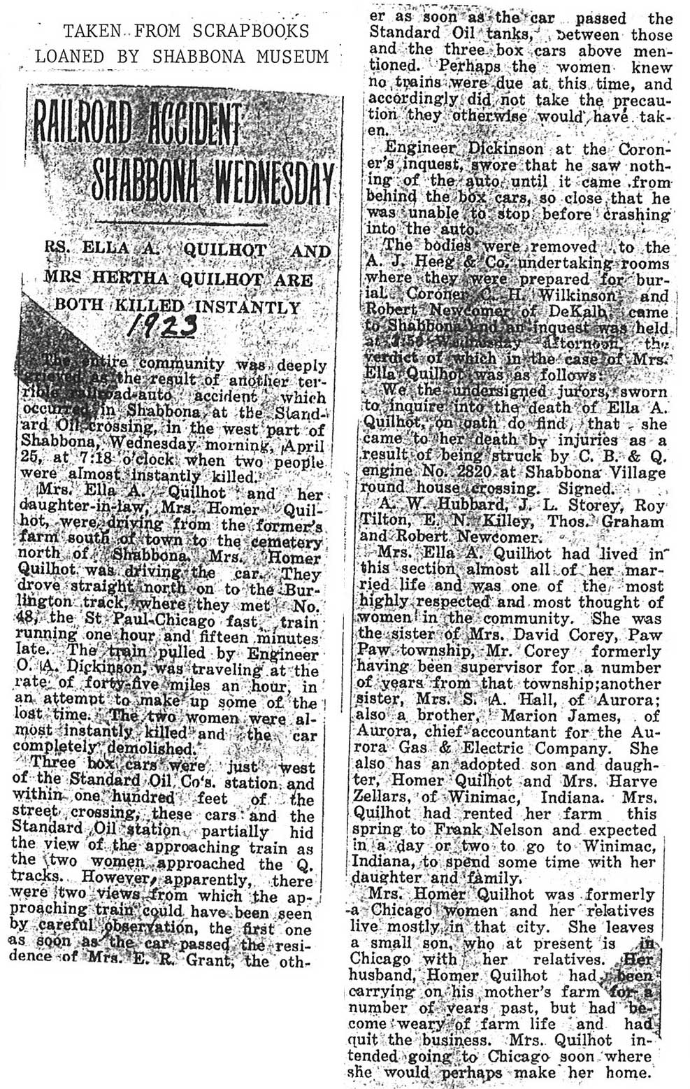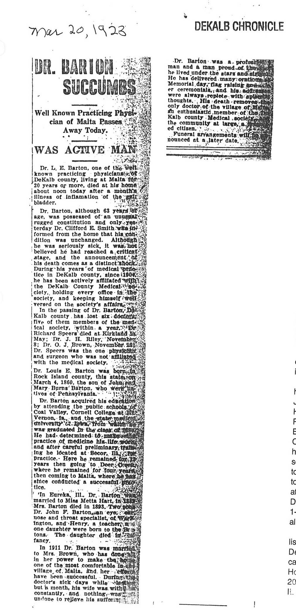 Note: obit has death year as 1923 cemetery listing has year as 1929