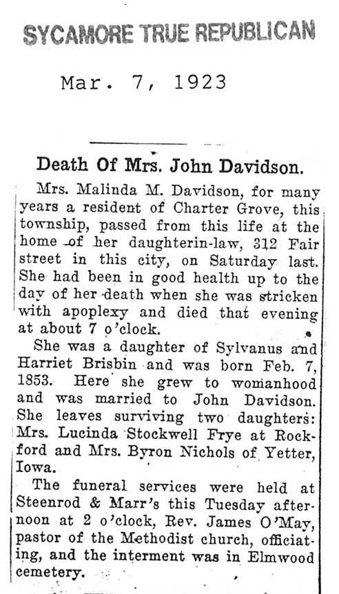 one obit says Malinda
