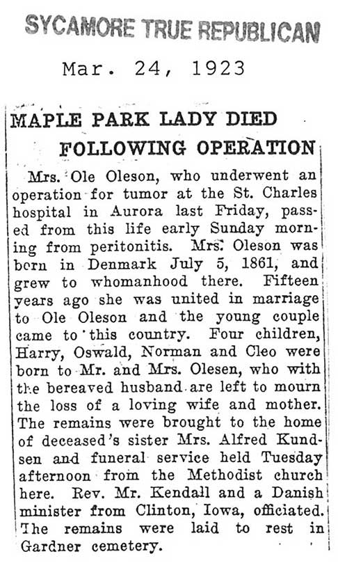 Buried in Gardner Cemetery - Maple Park, IL