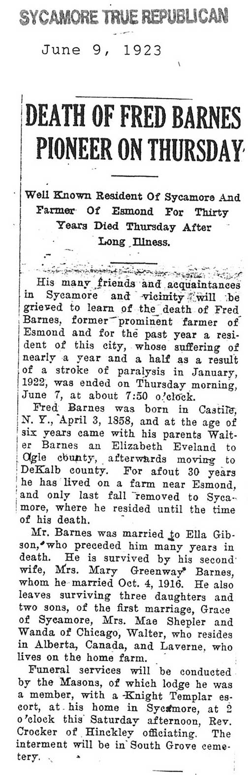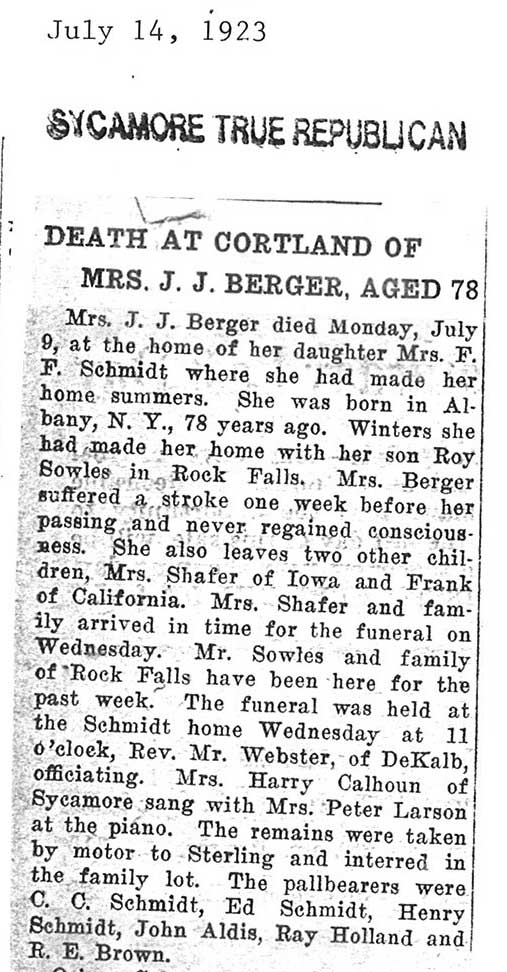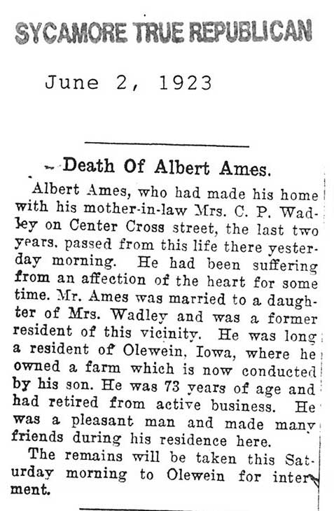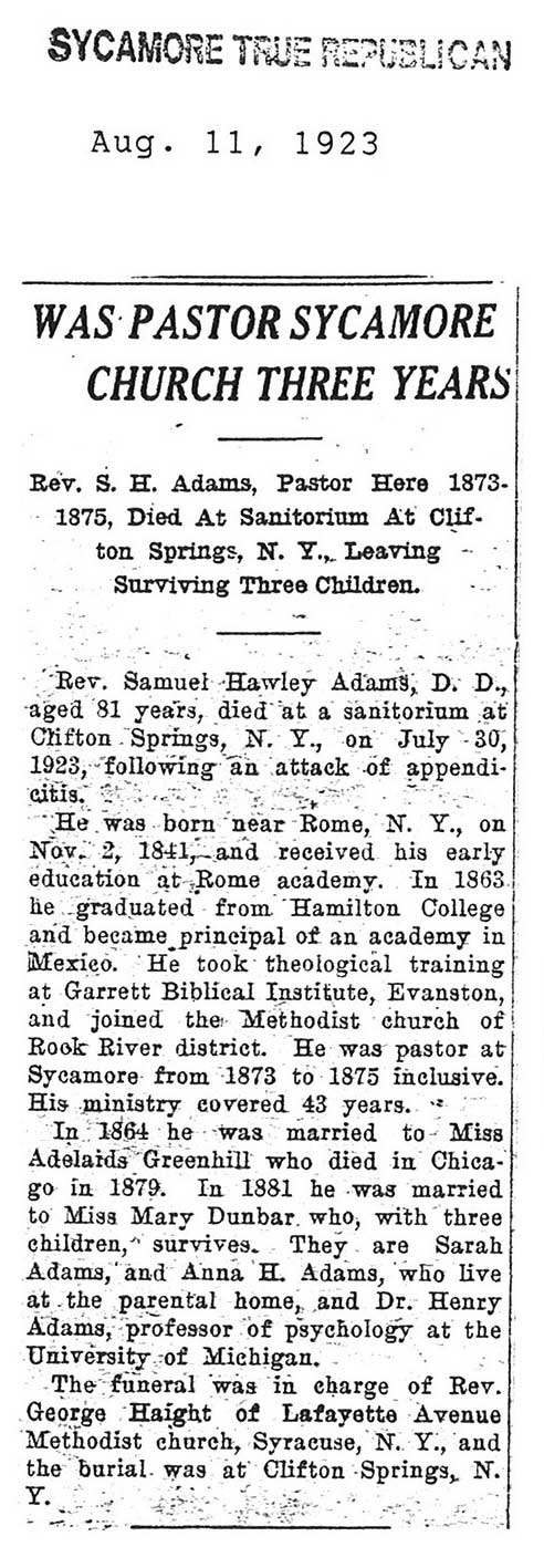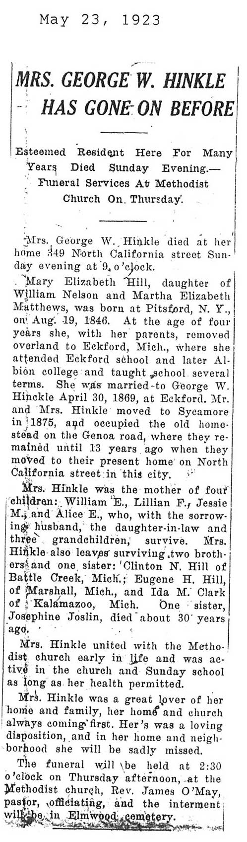 Died in New York and services took place in Almond, New York