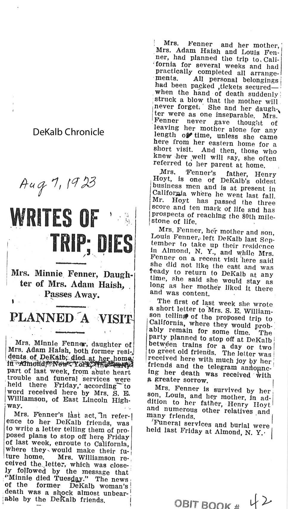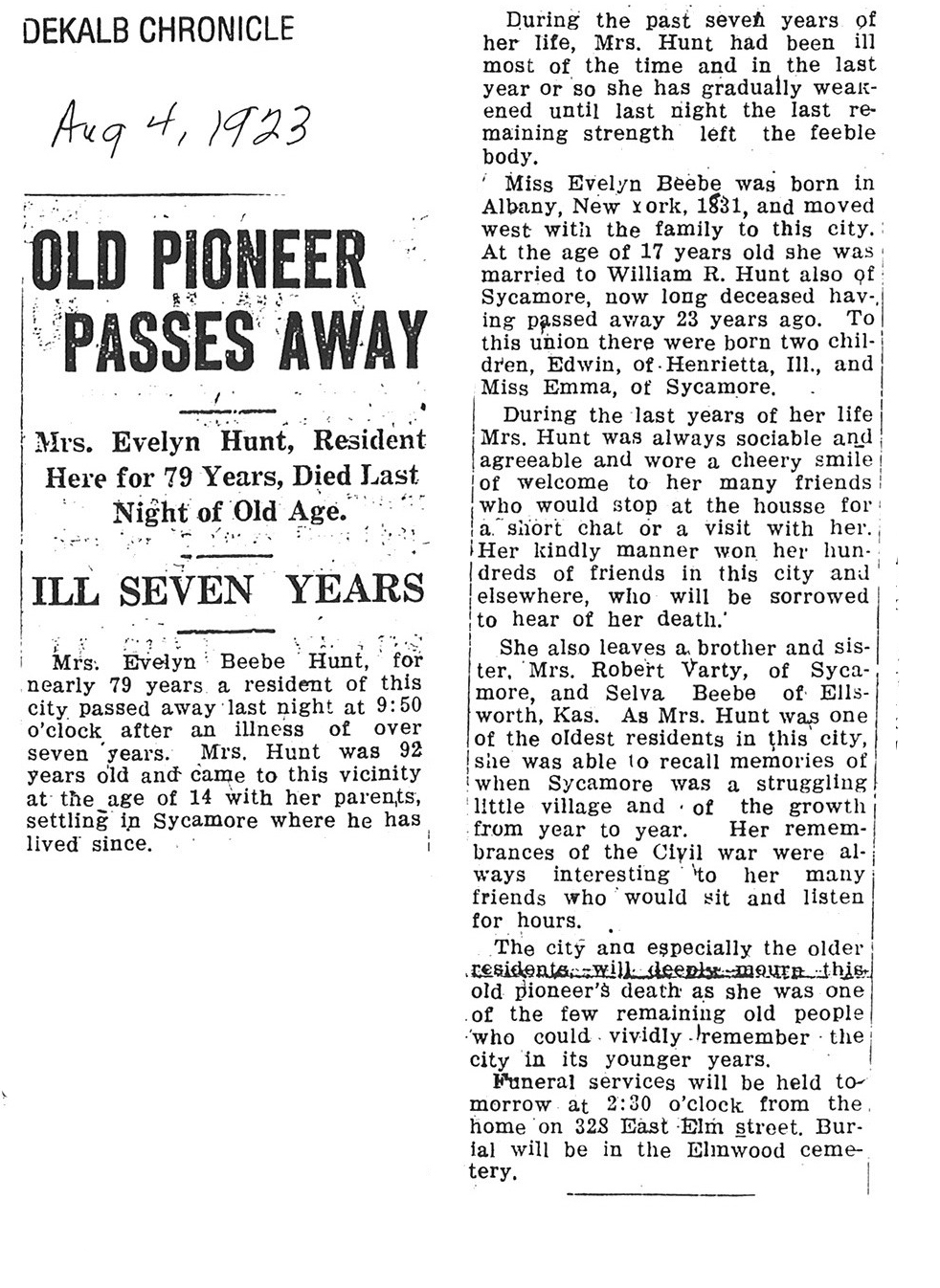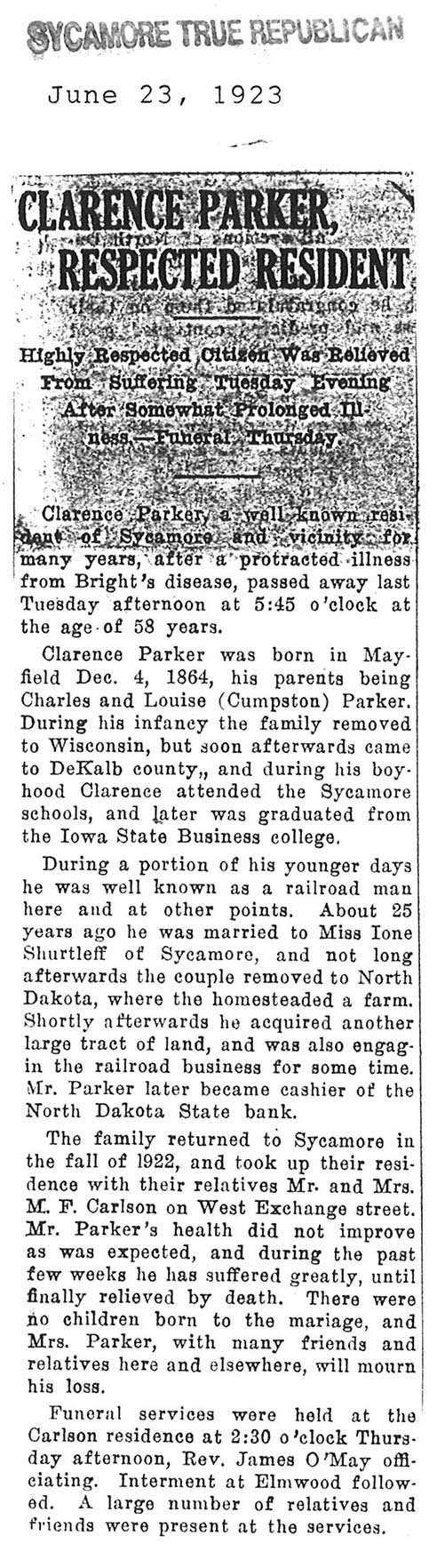 Died in New York and services took place in Almond, New York