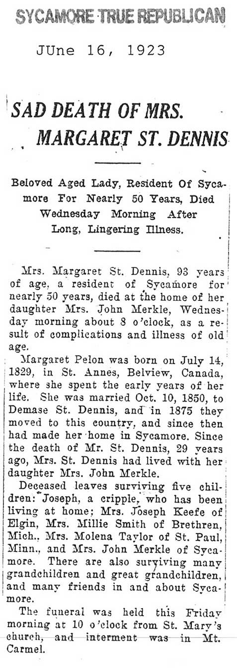 Buried in St. Vincent Cemetery - LaSalle, IL