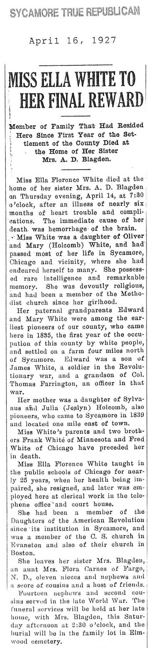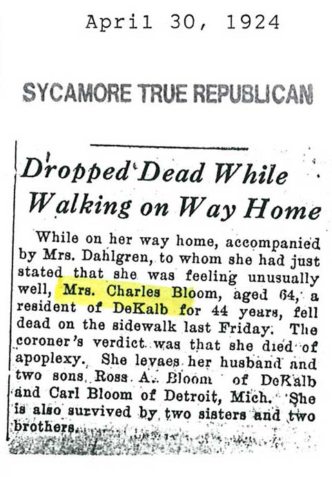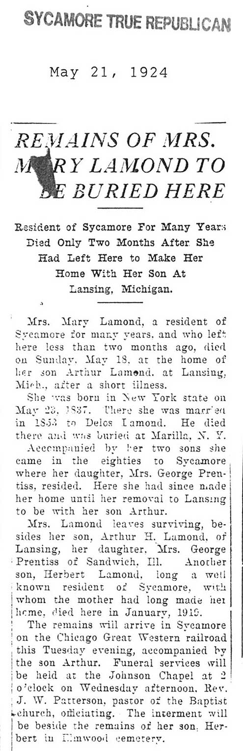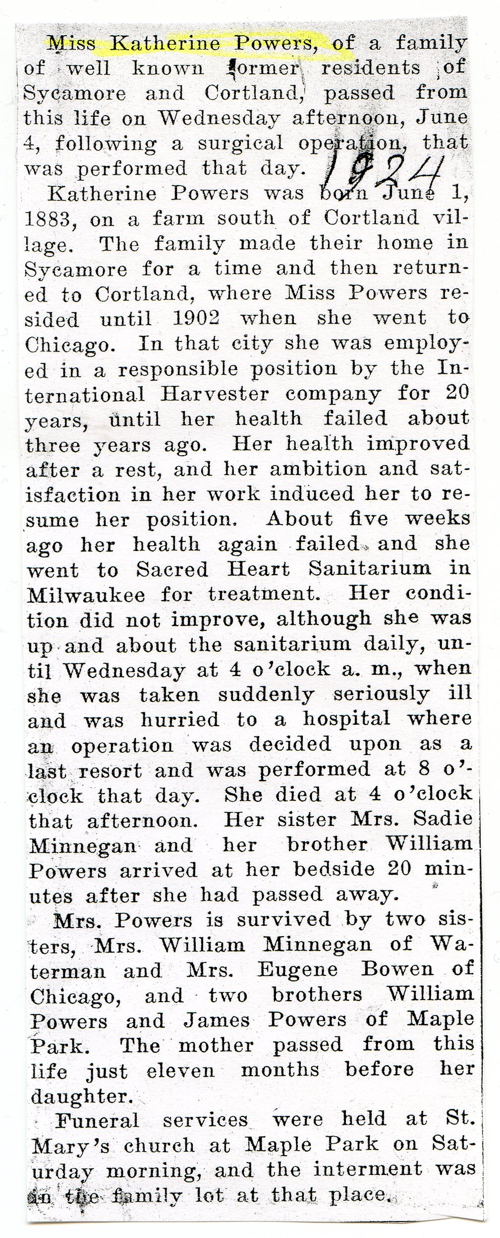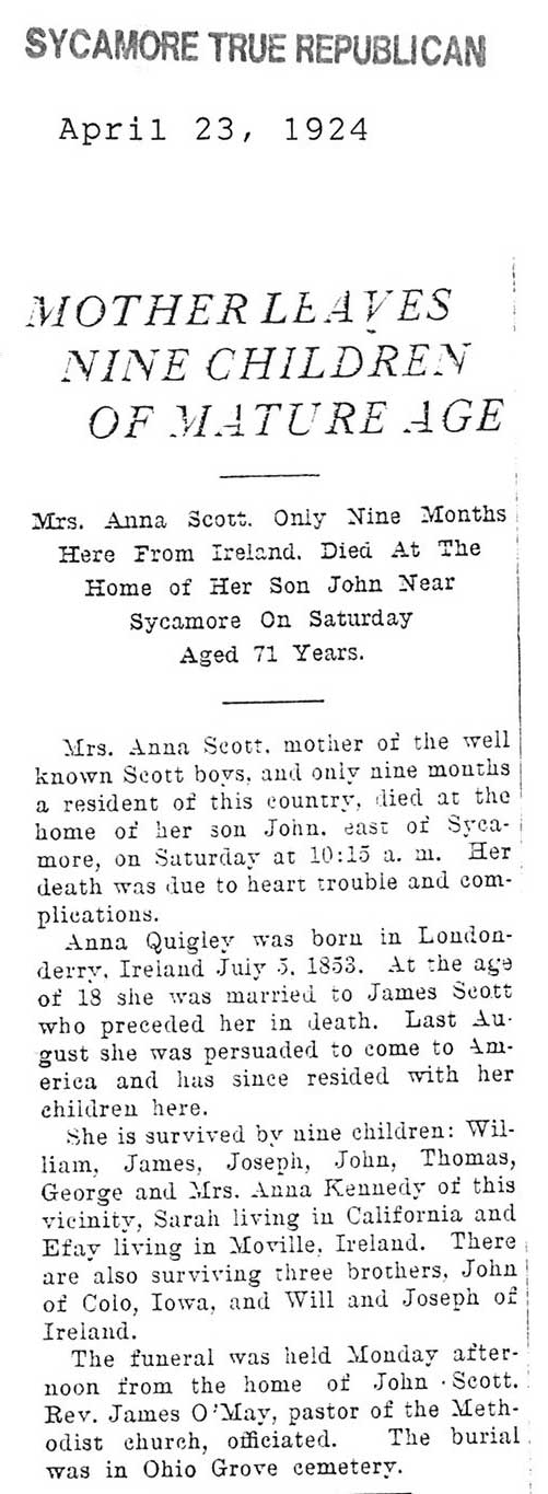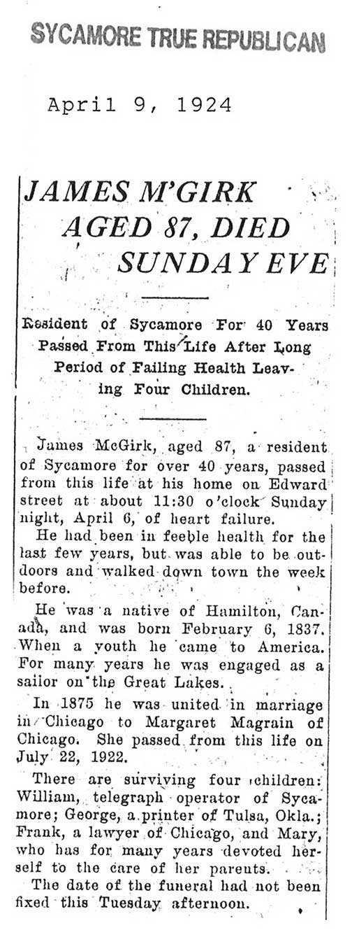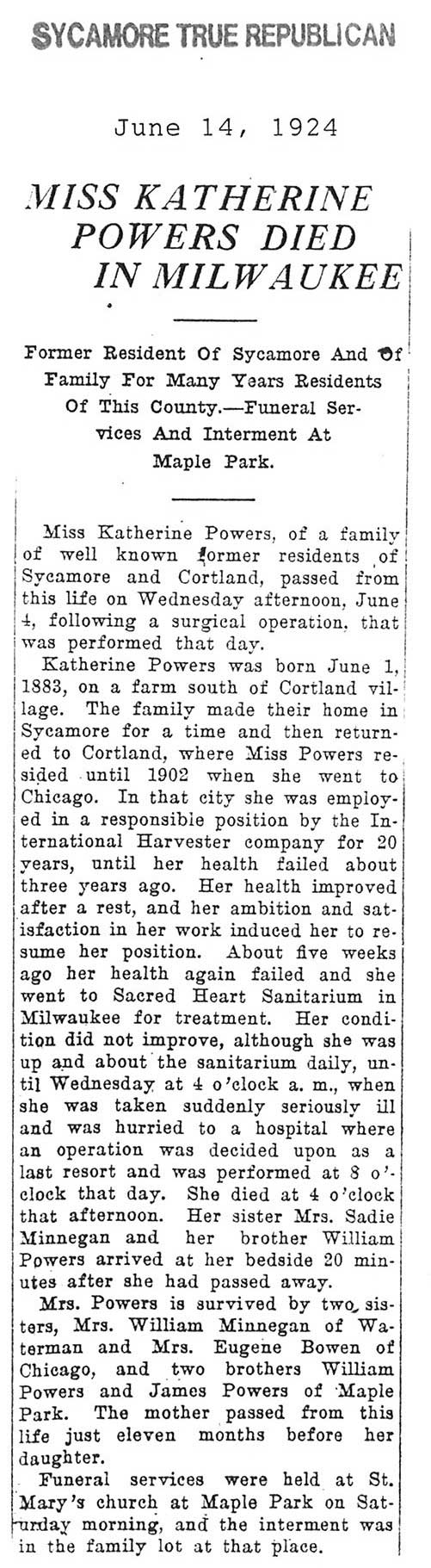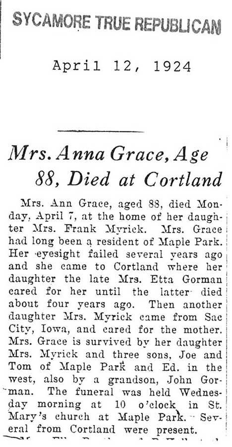 Buried in St. Mary's Cemetery - Maple Park, IL
