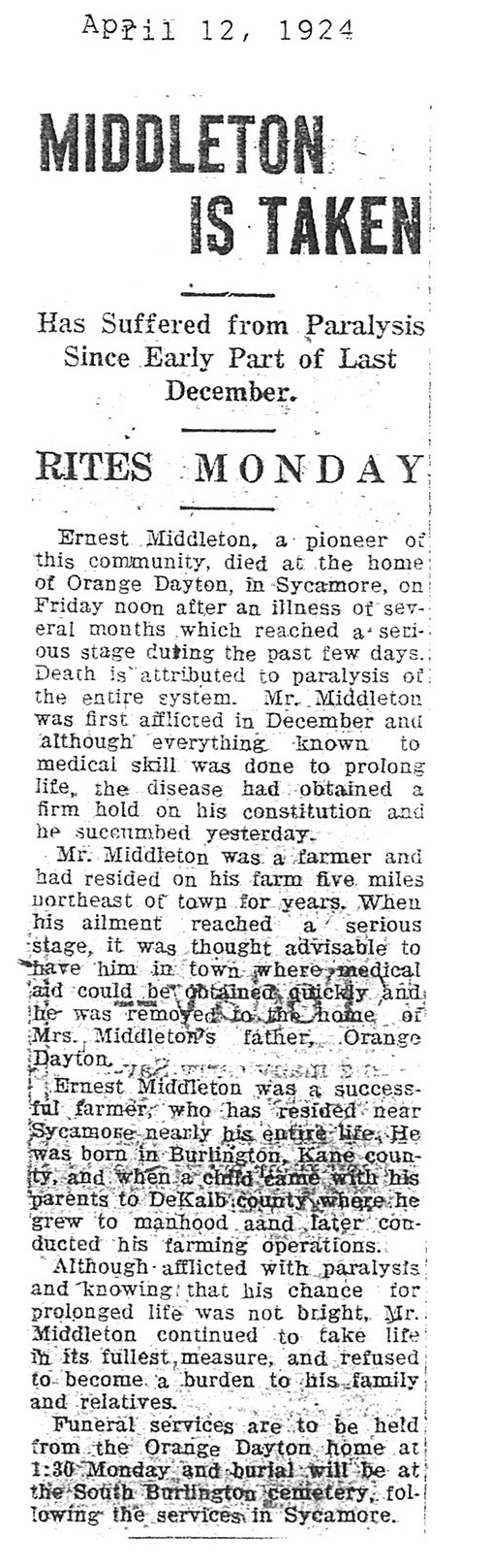 Buried in South Burlington Cemetery - Burlington, IL