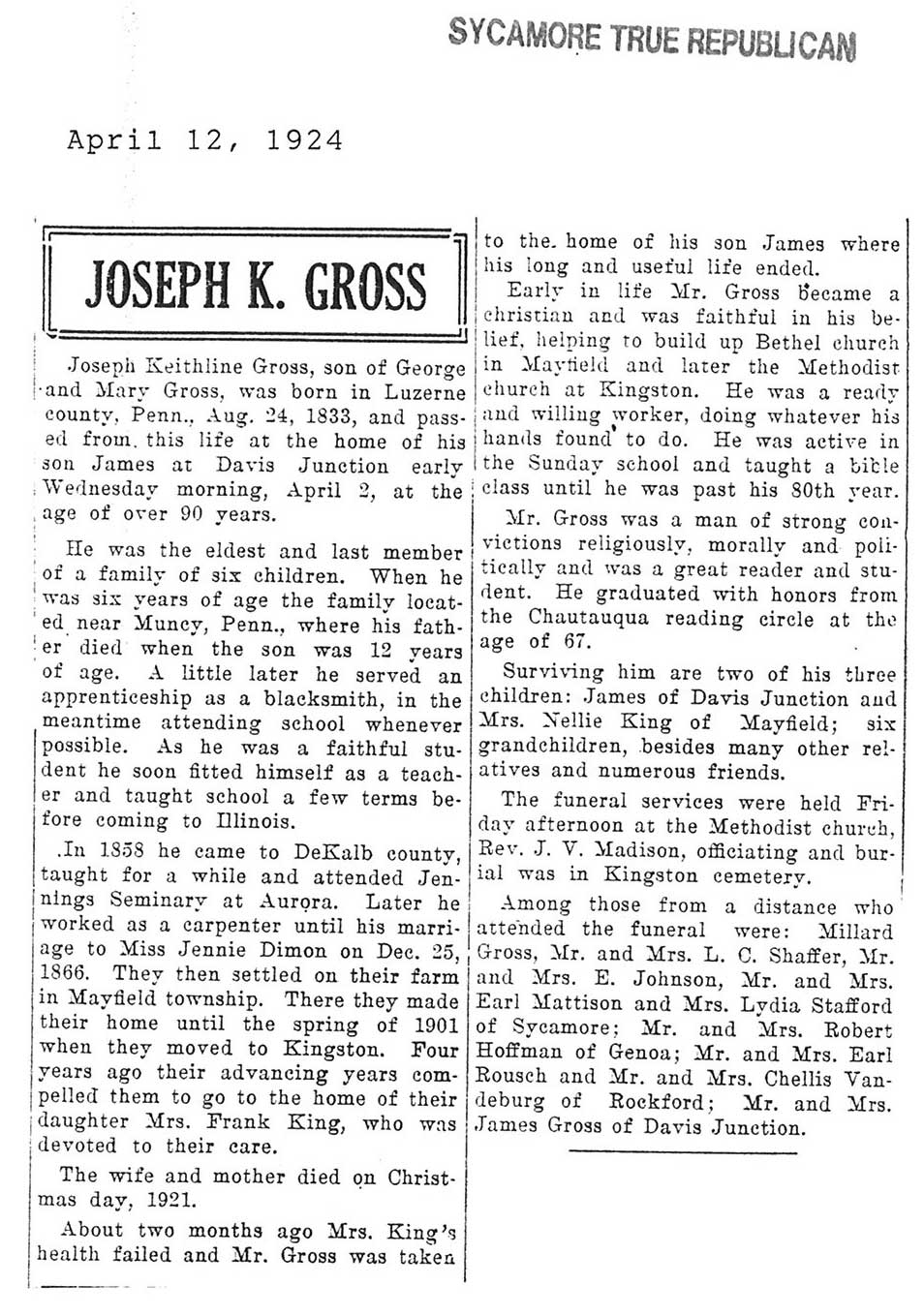 Deceased May 3, 1924