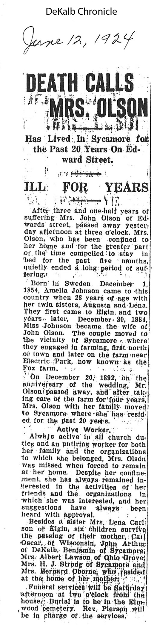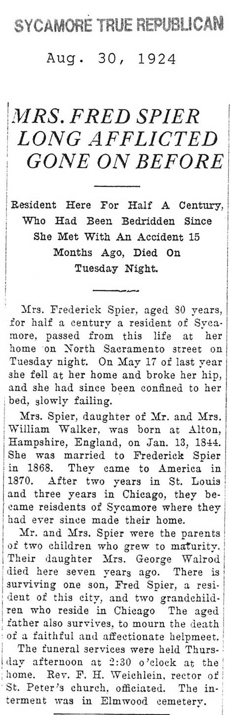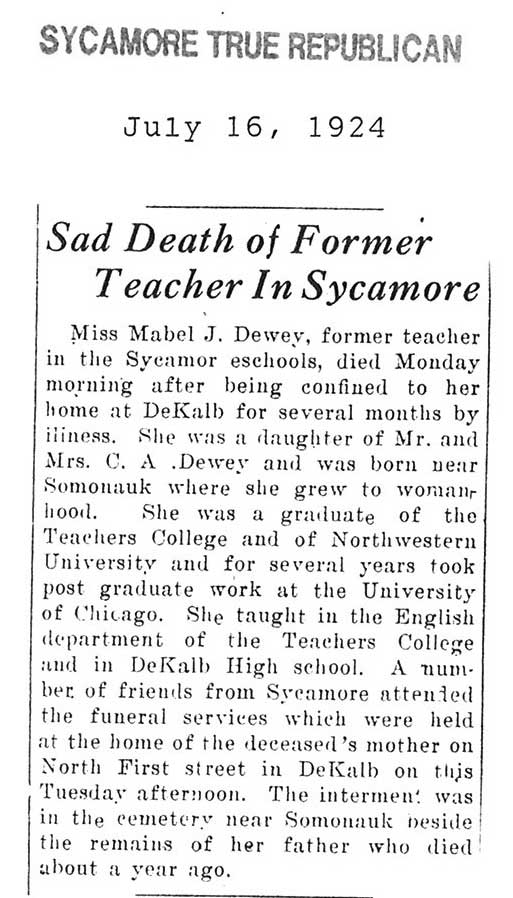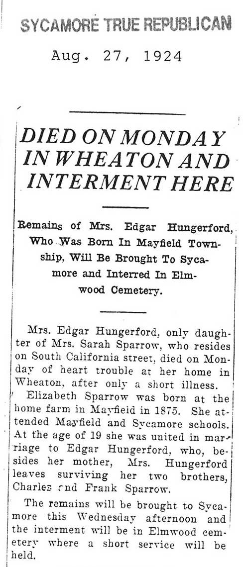 Buried in Bronzewood Cemetery - Hinsdale, IL