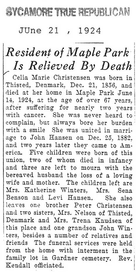 Buried in Gardner Cemetery - Maple Park, IL