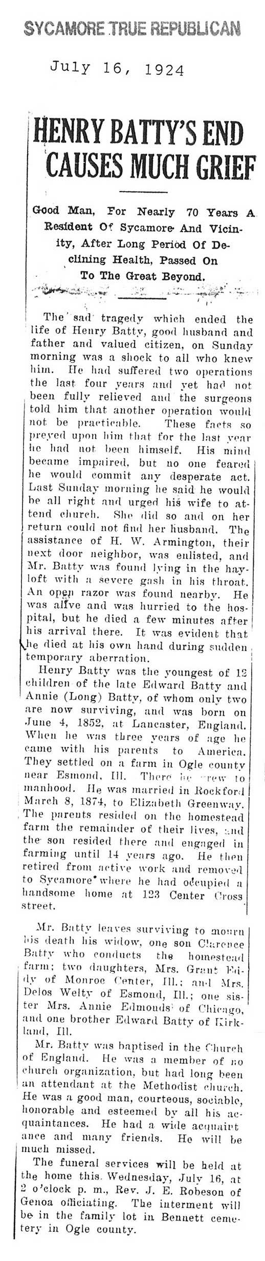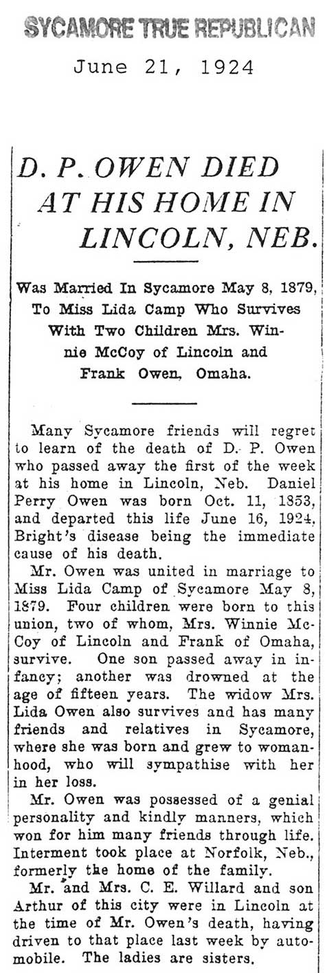 Buried in Bennett Cemetery - Ogle County, IL
