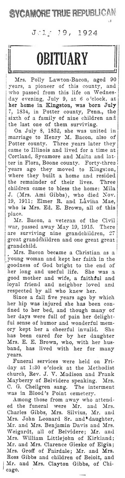 Buried in Blood's Point Cemetery
